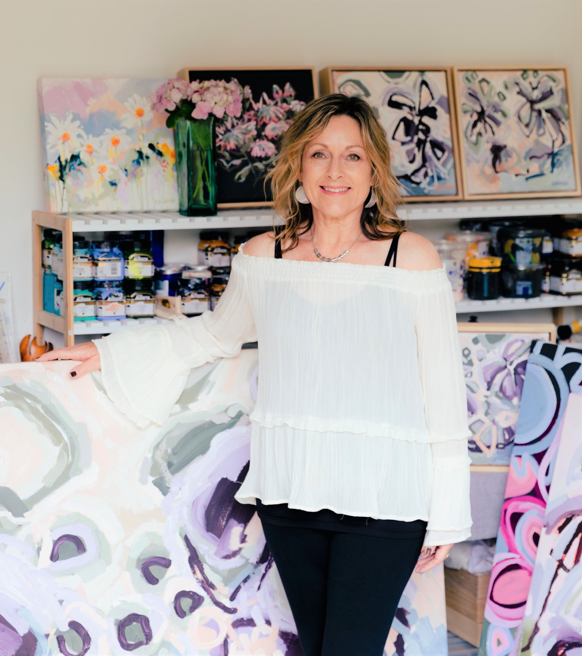 I am obsessed with colour and nature! Outside in the natural environment is where I spend my time sketching the organic forms that surround me. I take them back to my studio where I abstract the beauty and vibrancy of the experience into my paintings. What excites me is creating compositions using a luminous mix of rich colours and texture bringing the outdoors inside feeling happiness from connecting with nature.