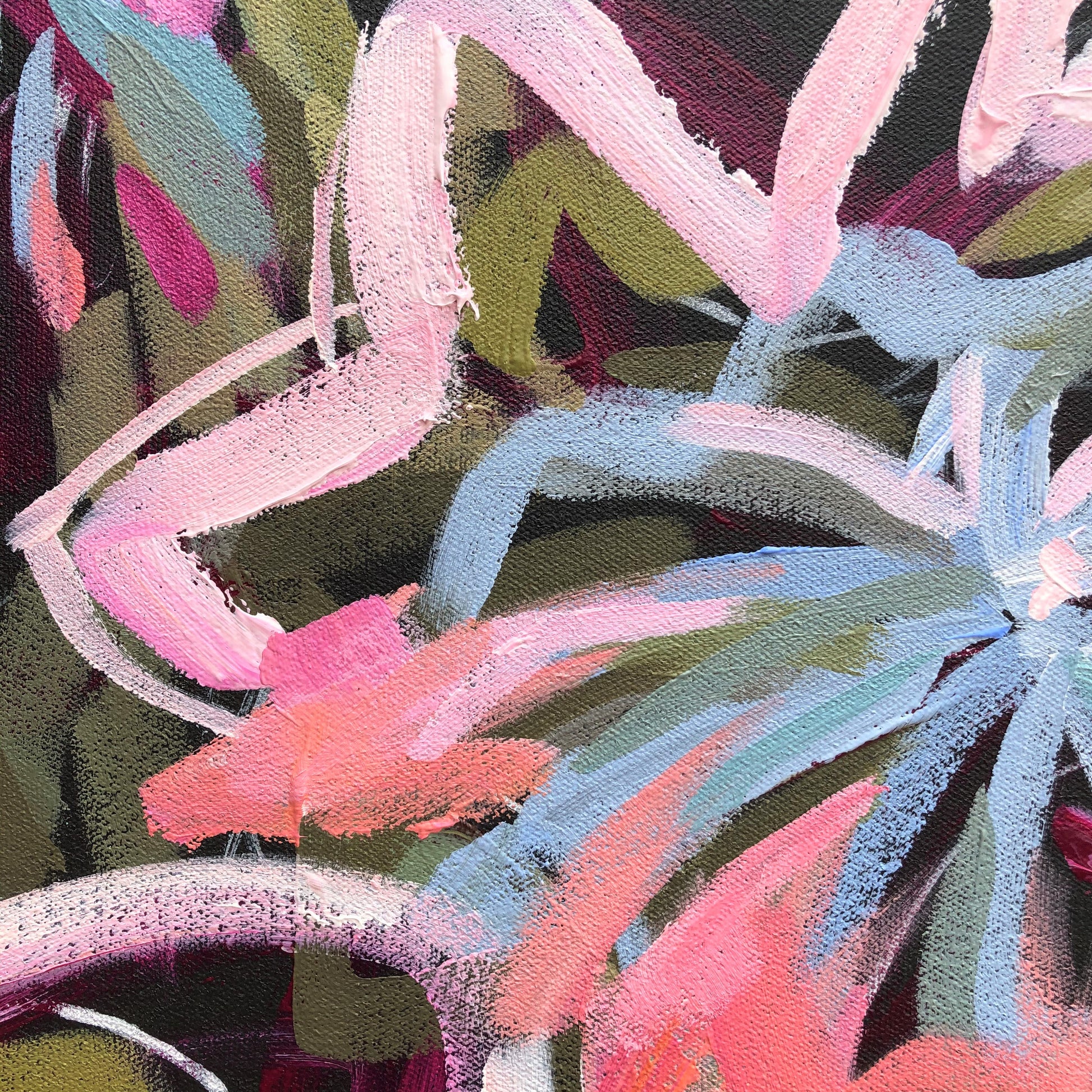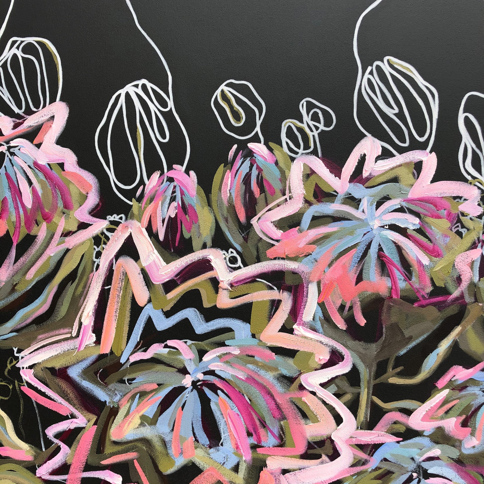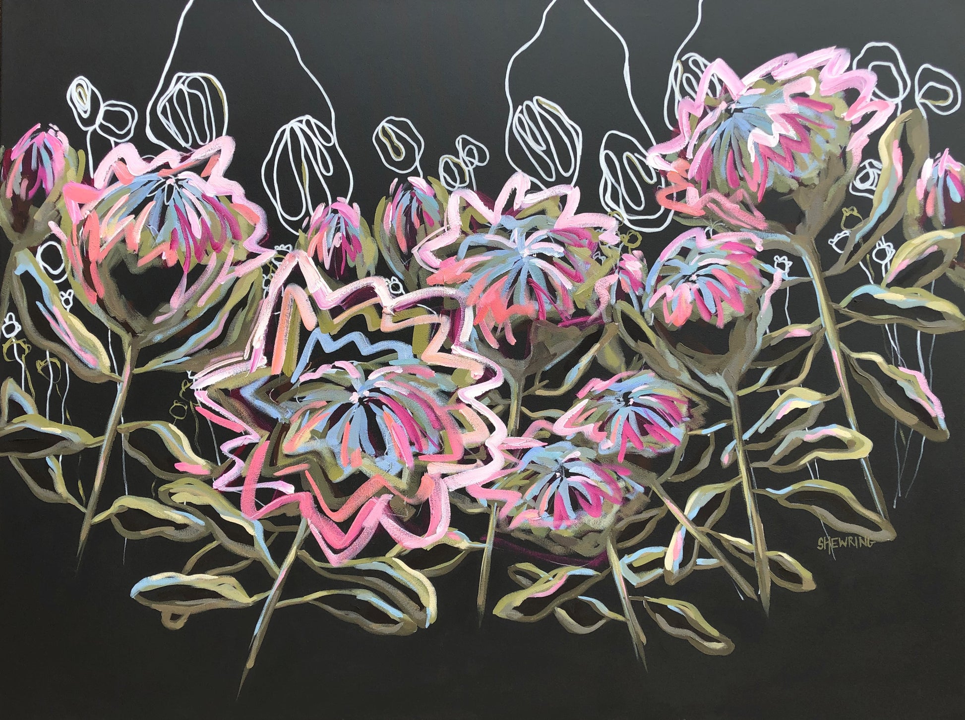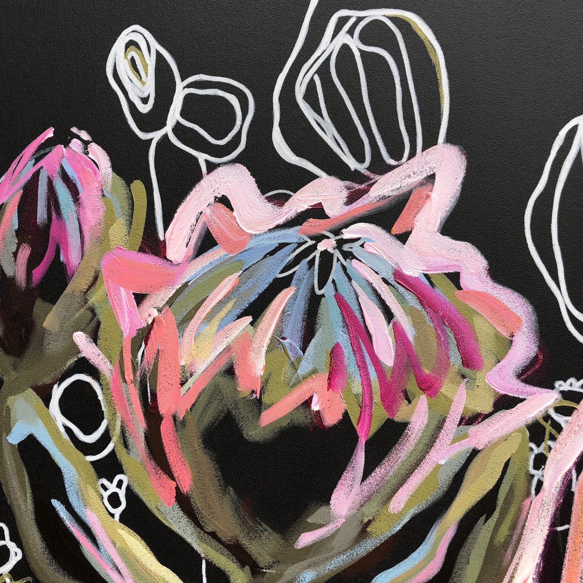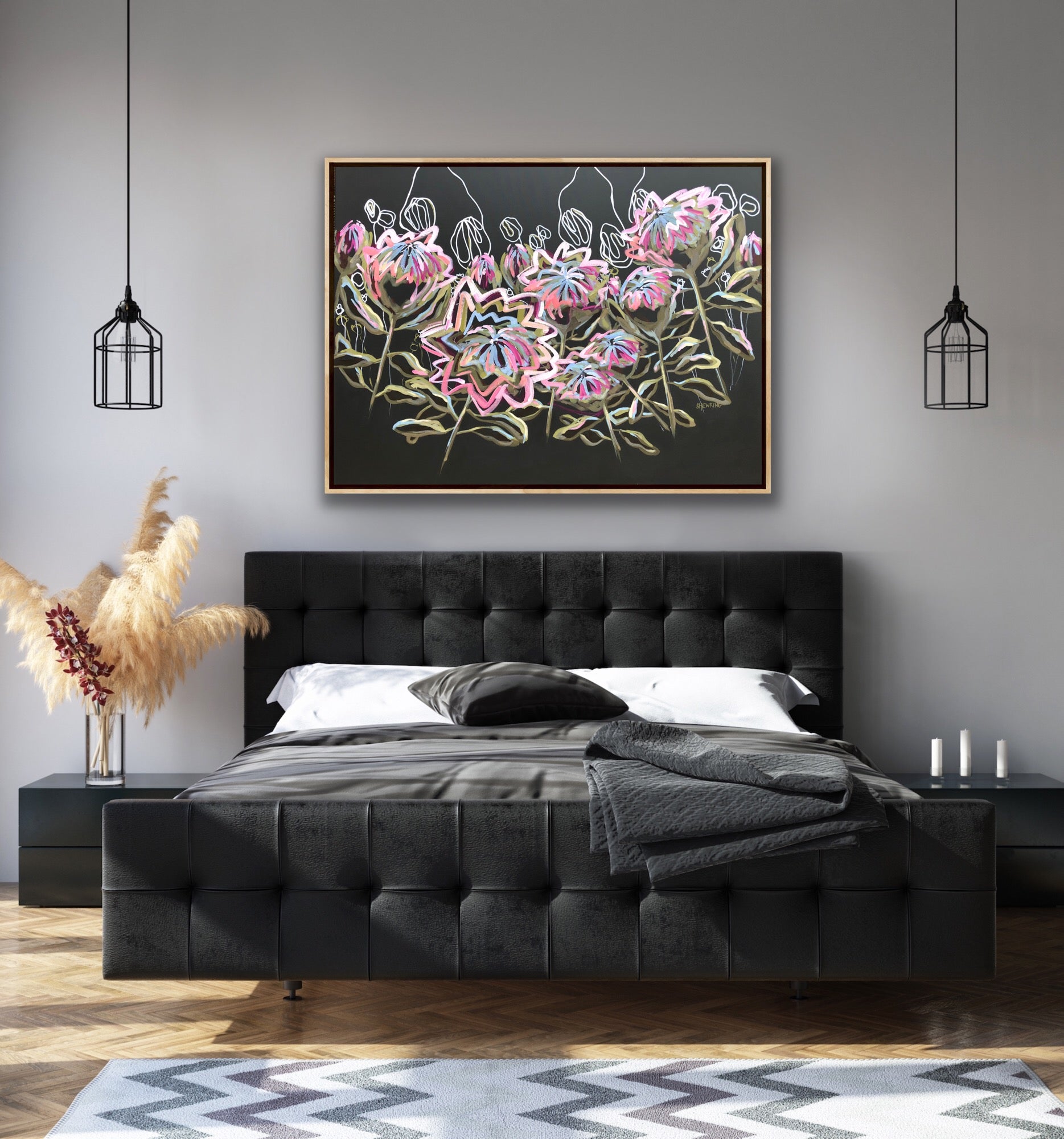 I am obsessed with colour and nature! Outside in the natural environment is where I spend my time sketching the organic forms that surround me. I take them back to my studio where I abstract the beauty and vibrancy of the experience into my paintings. What excites me is creating compositions using a luminous mix of rich colours and texture bringing the outdoors inside feeling happiness from connecting with nature.