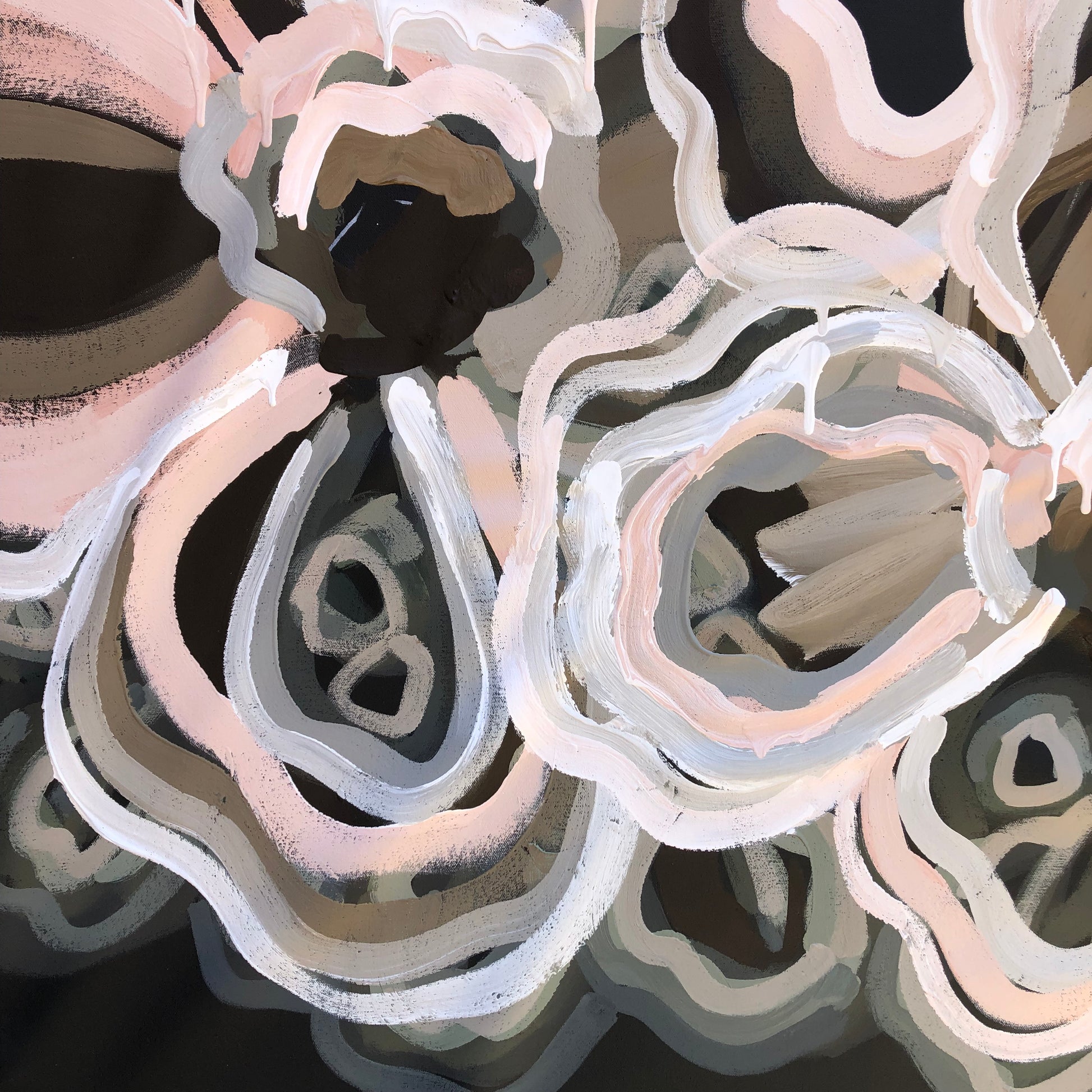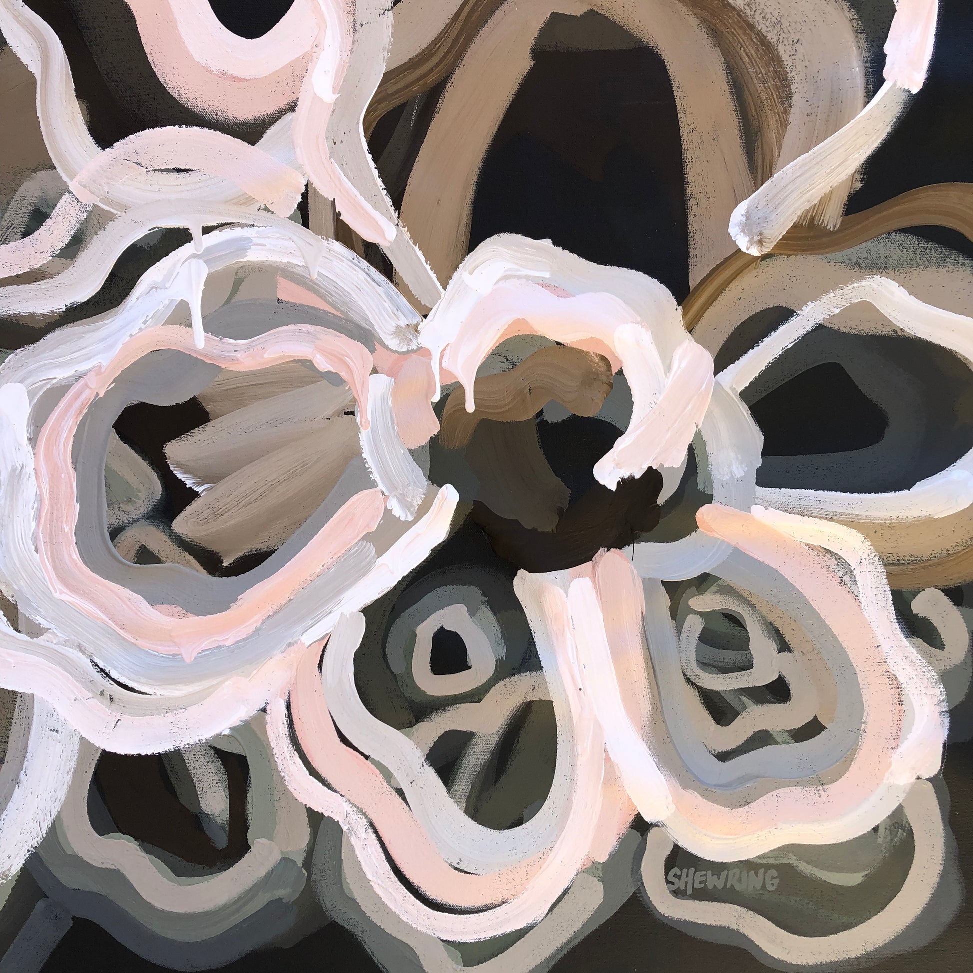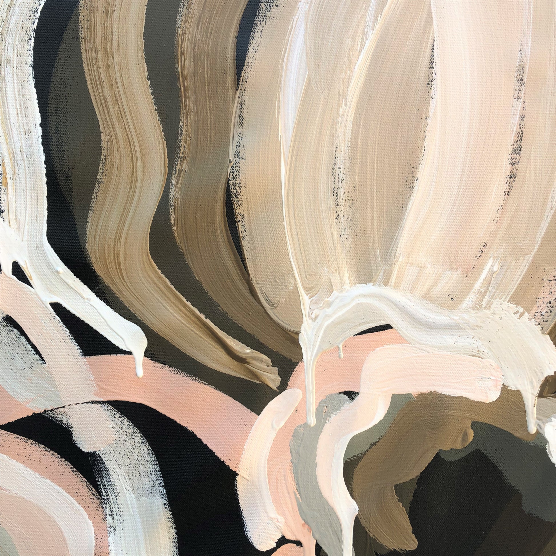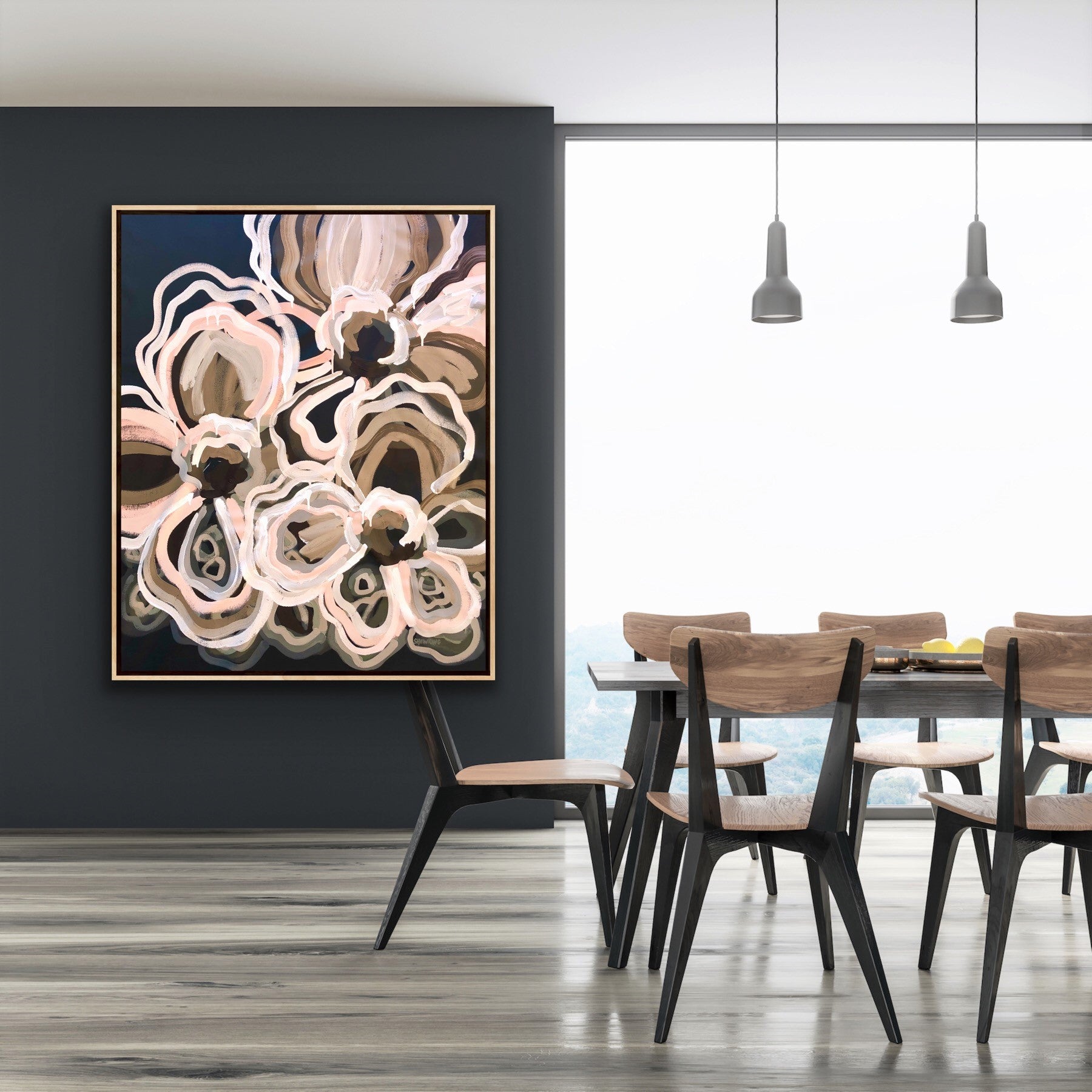 Latte Time was inspired by the warm earth tones of the Australian landscape. I painted the flowers in an abstract expressive style in coffee tones with bursts of soft pink and warm greys. This painting would suit a range of different decors.