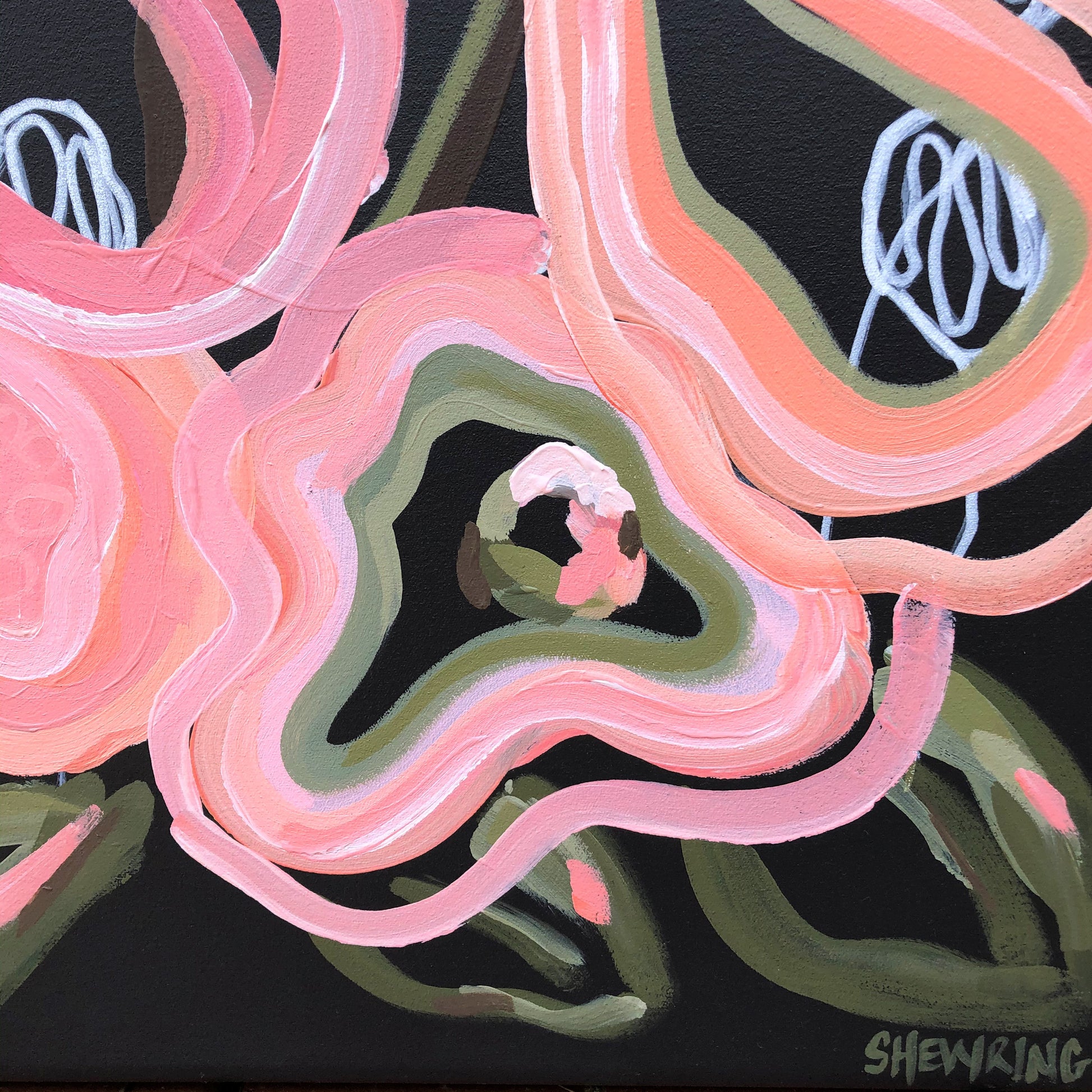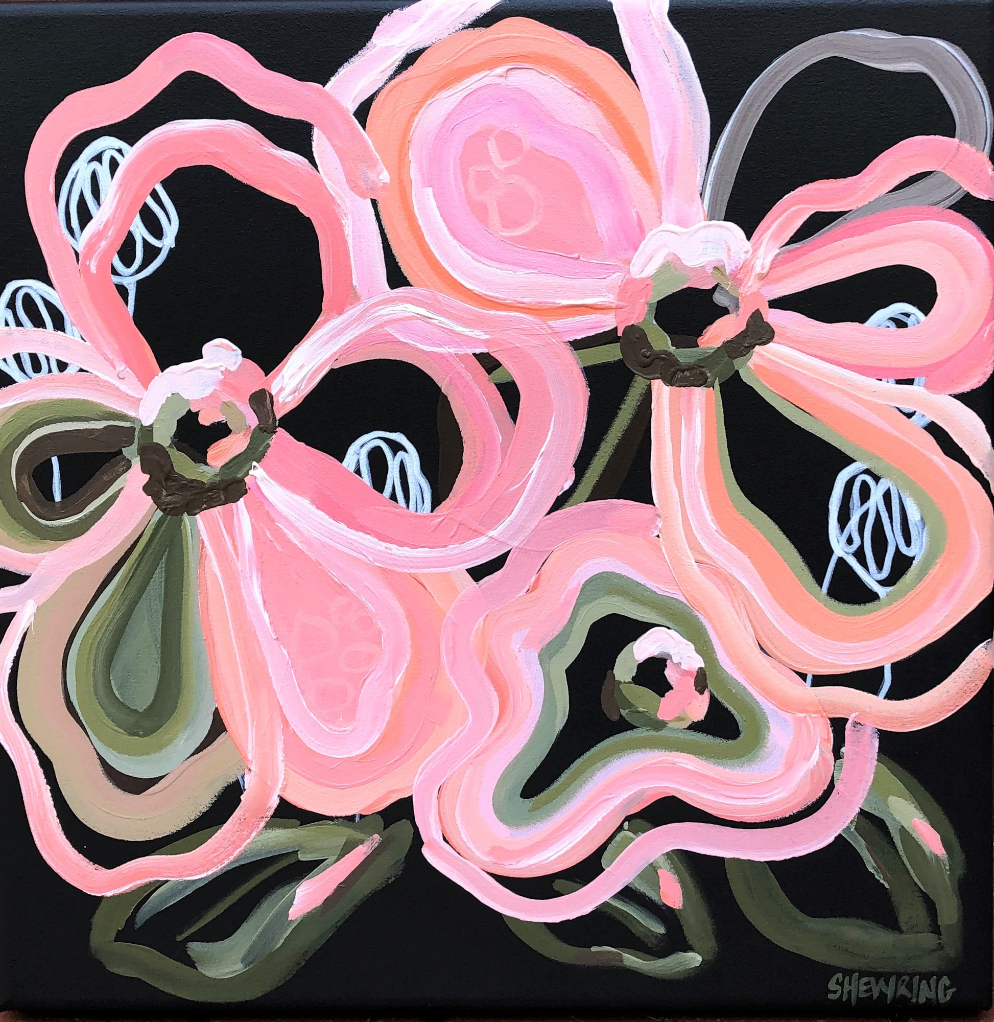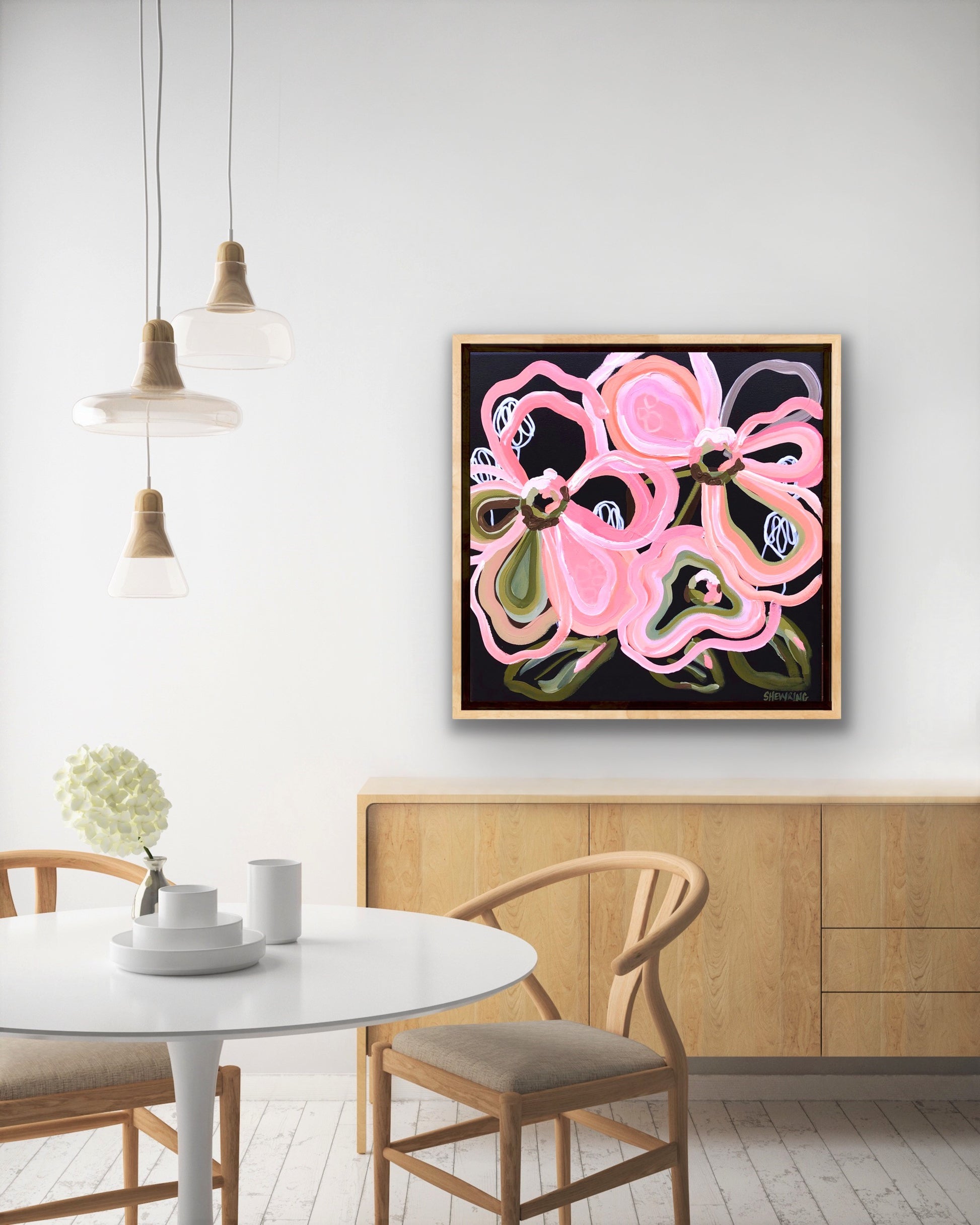 These flowers are painted in an expressive style in soft pinks and apricots and warm olive and earth colours that would suit a range of different decors.