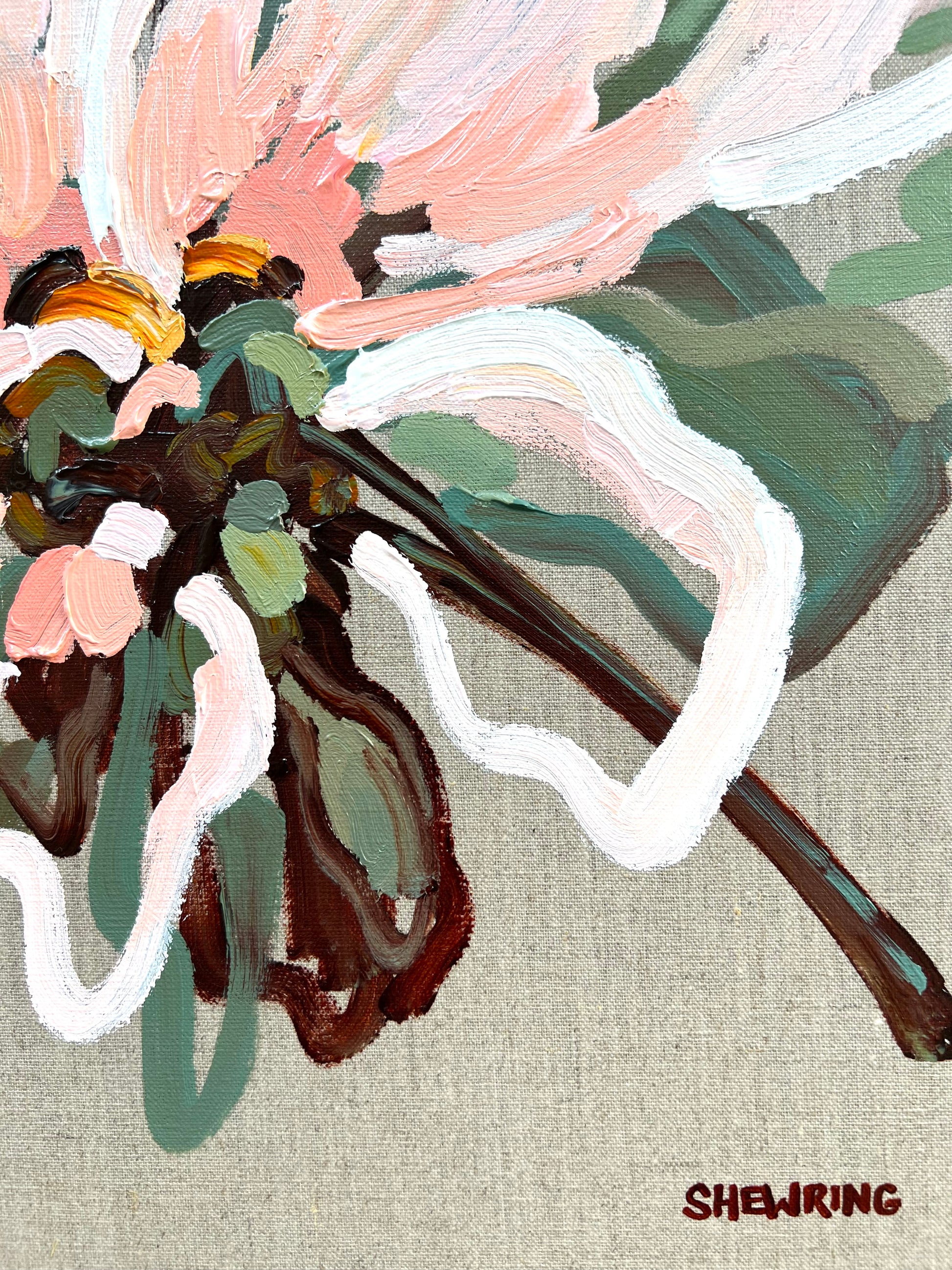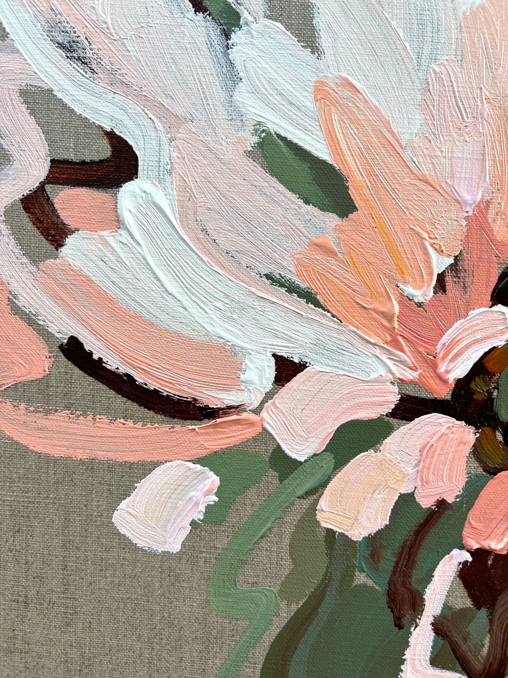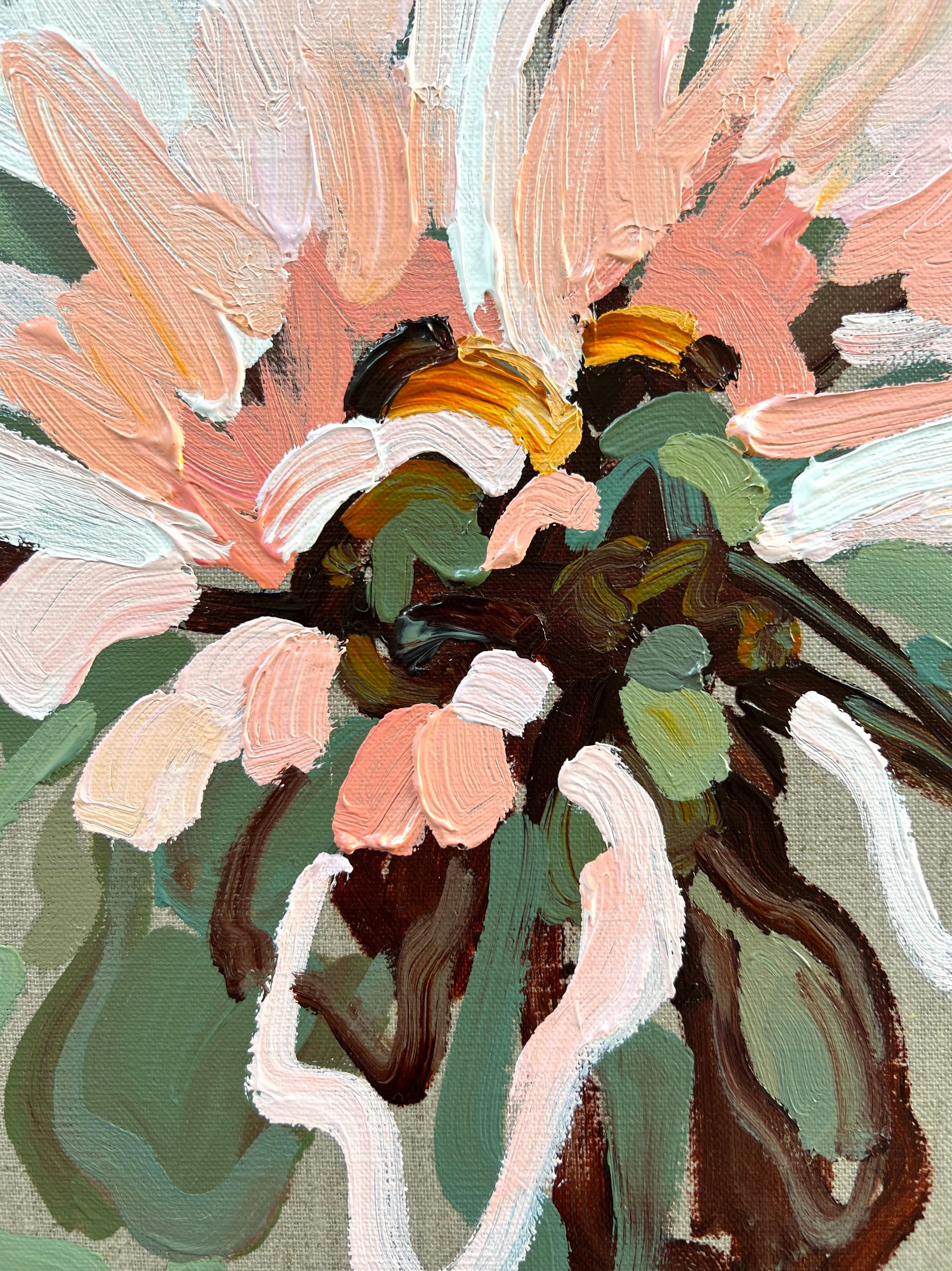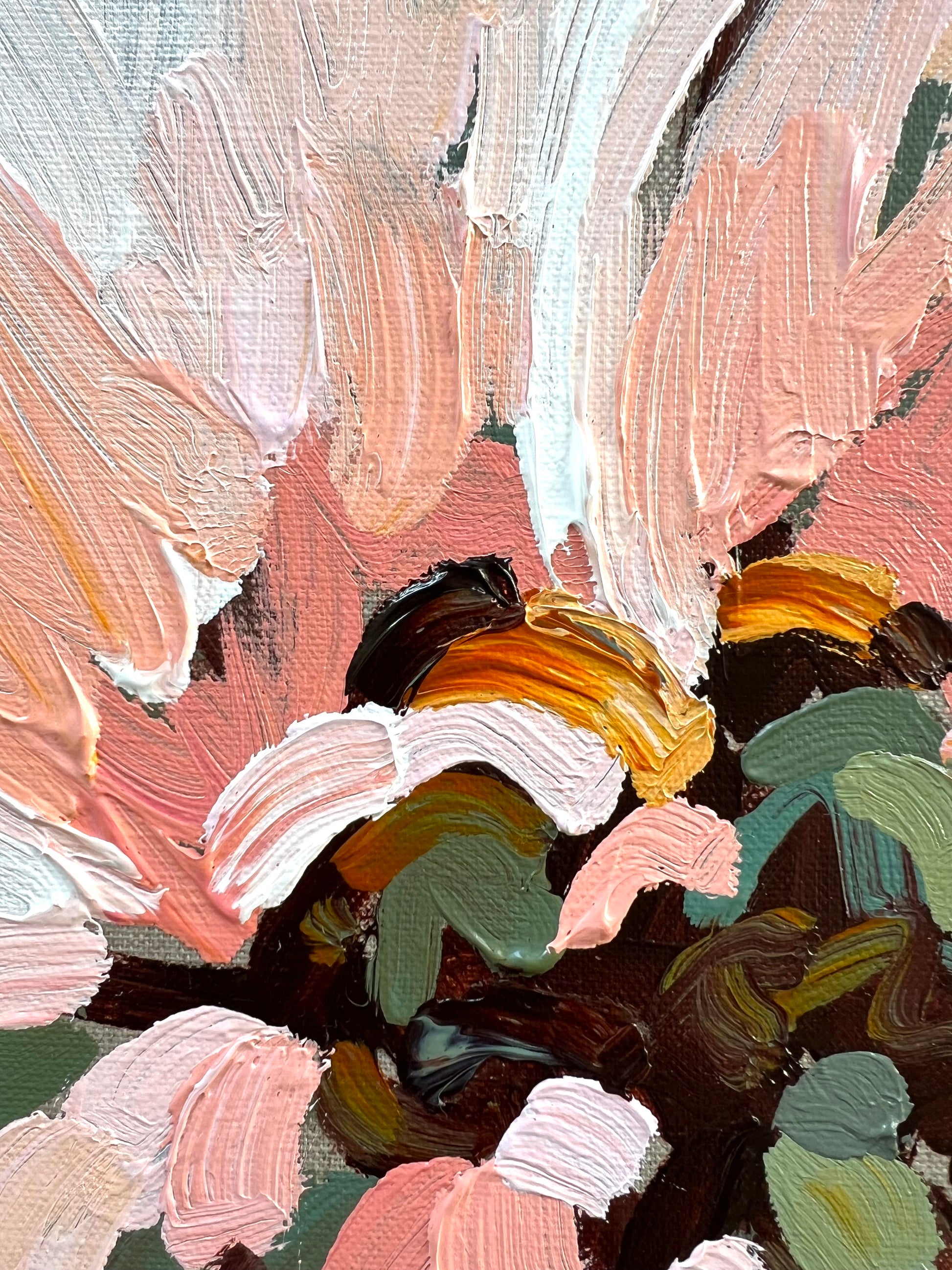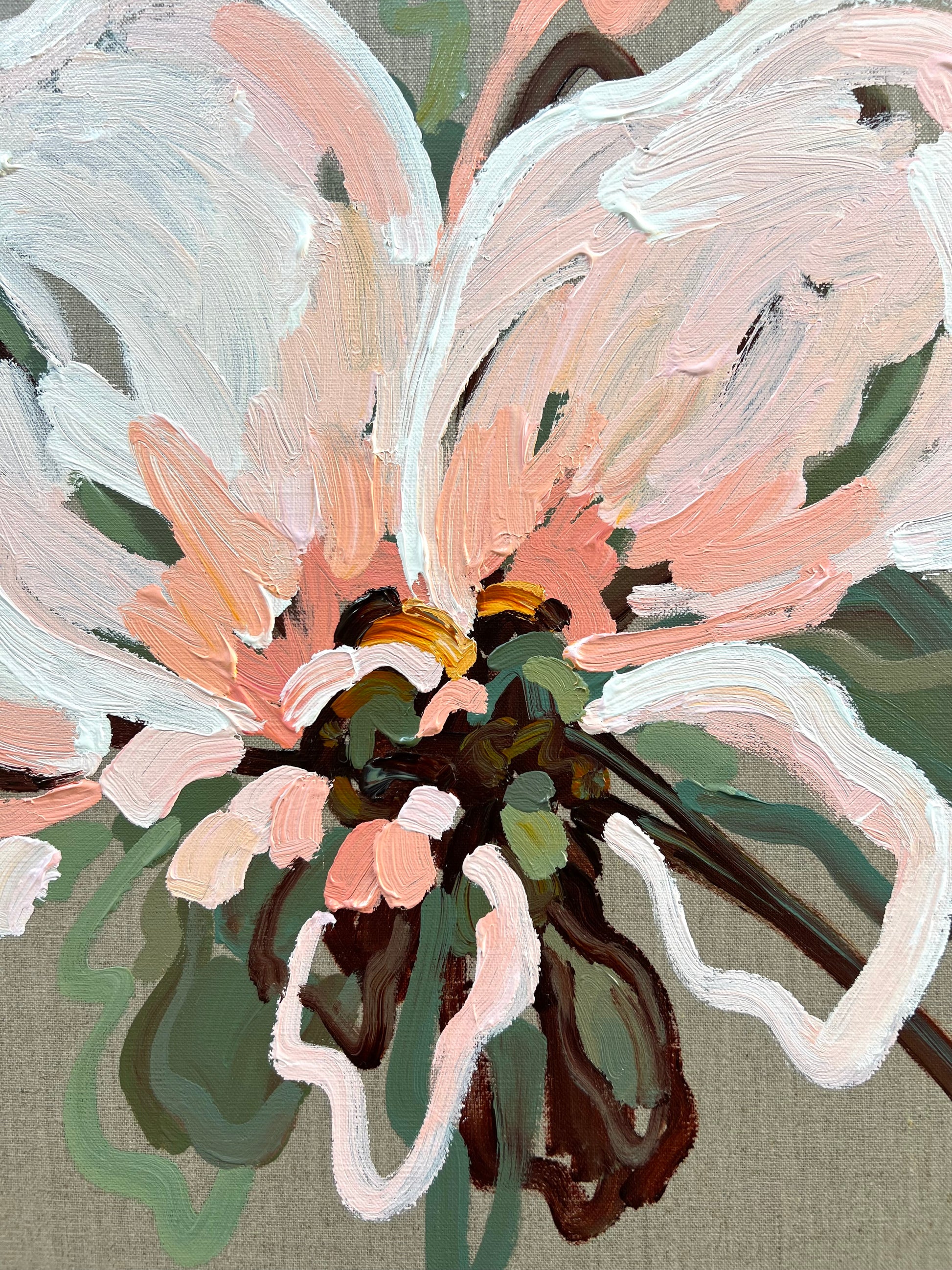 Love Actually is a beautifully textured flower abstract on linen canvas. This painting has expressive individual brushstrokes that bring it to life!