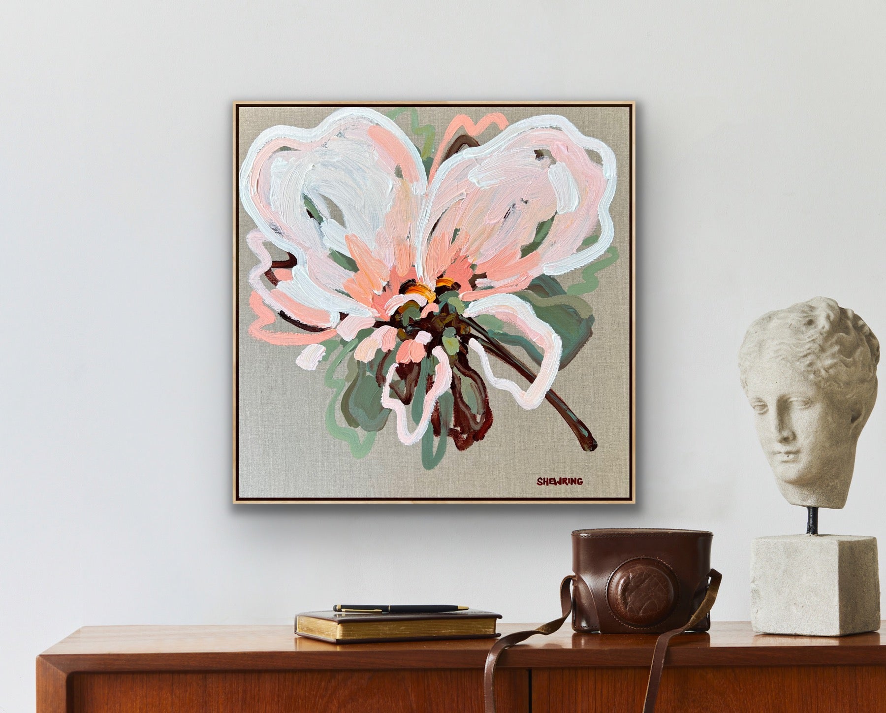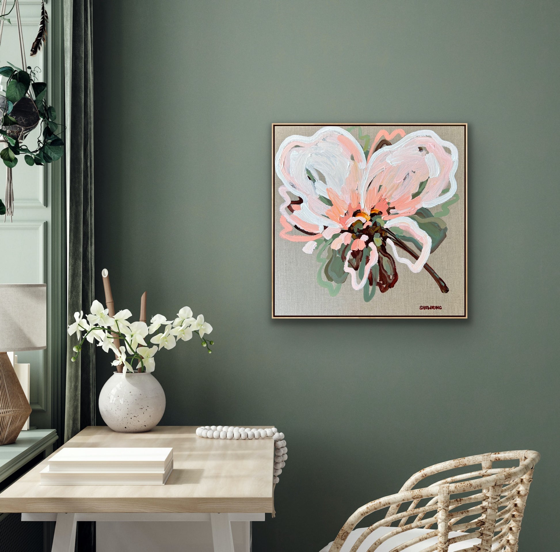 - Painted onto artist professional quality stretched linen canvas with a float frame and wire on the back so it is ready to hang.