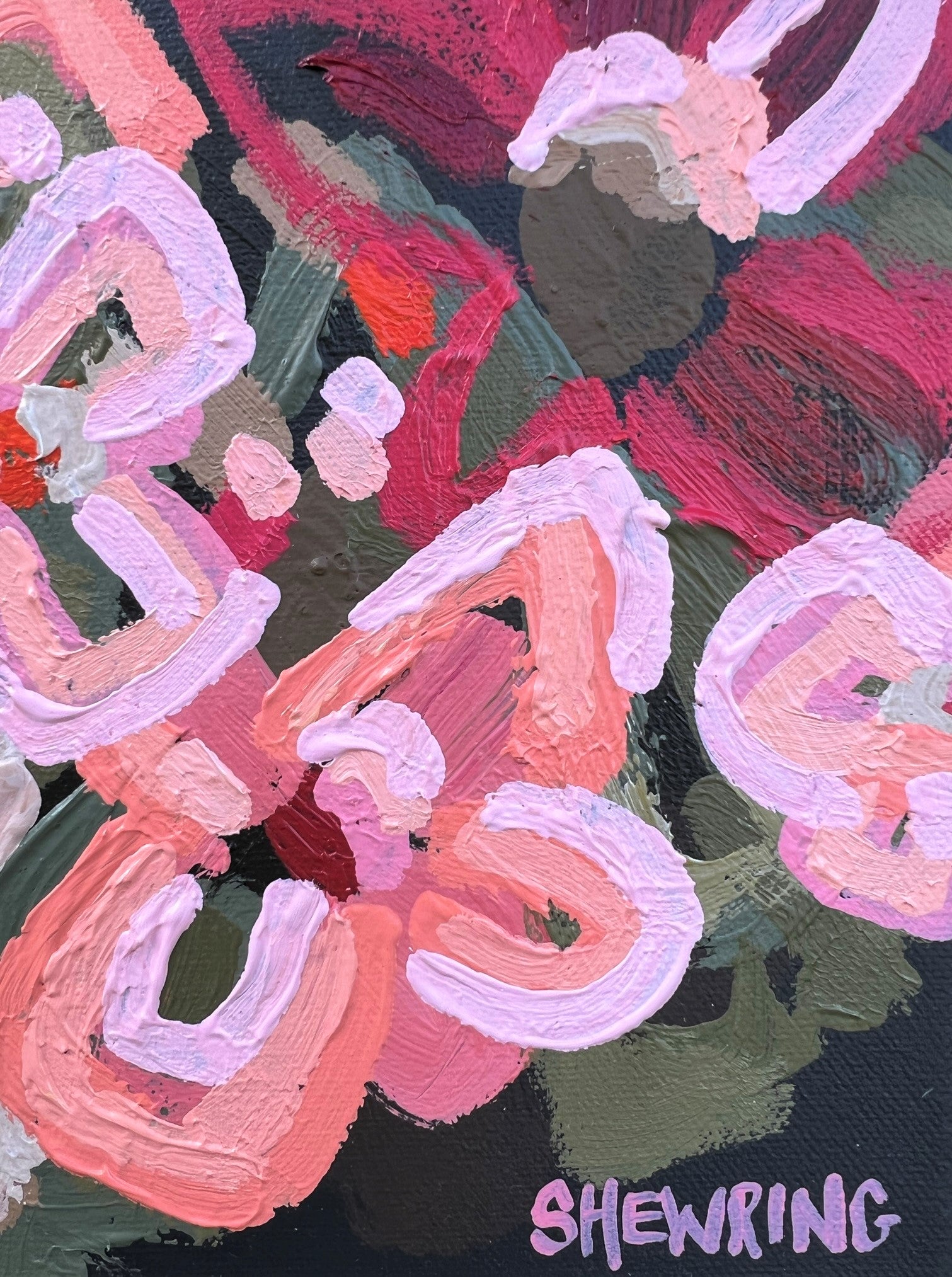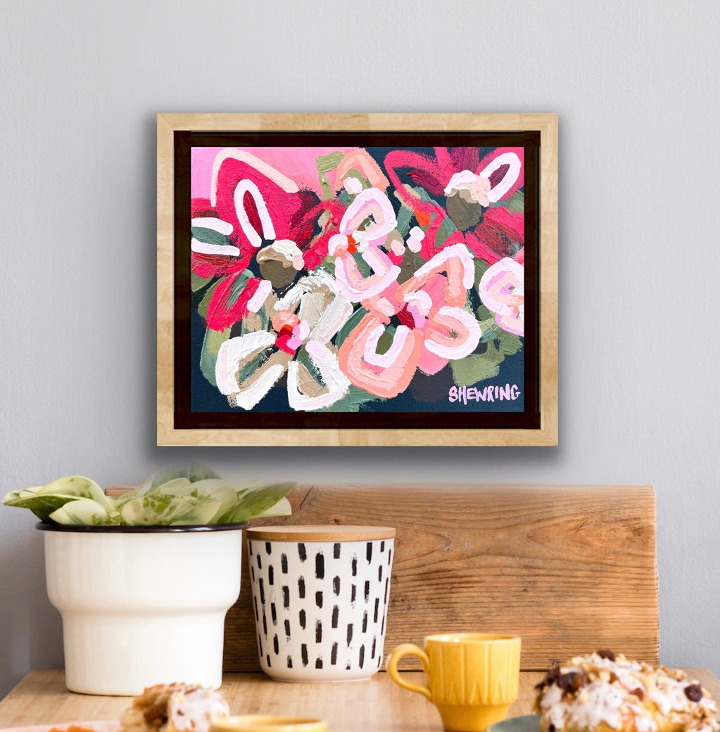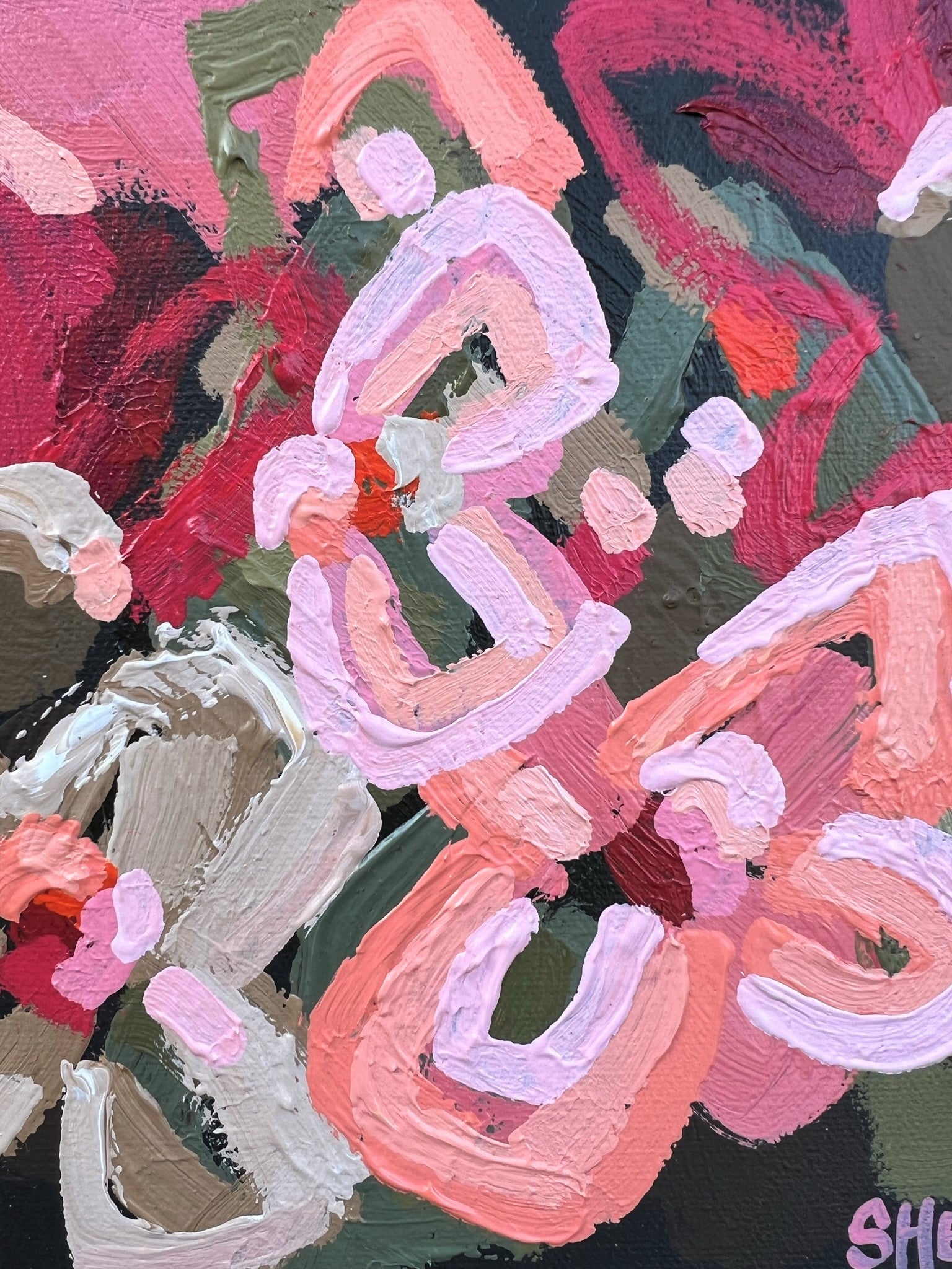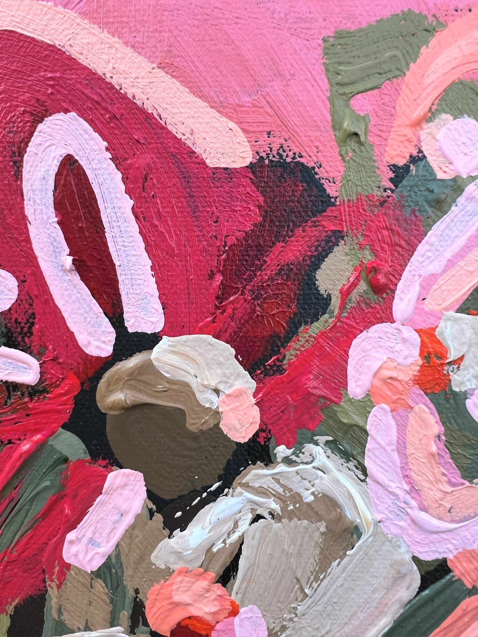 These flowers are painted with texture in an expressive style in vibrant pinks, delicious apricots, peaches, melons, sage and olive green and a touch of soft earthy tones that would suit a range of different decors
