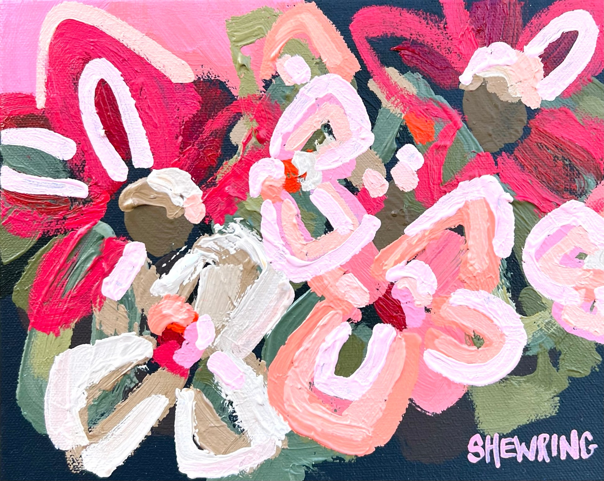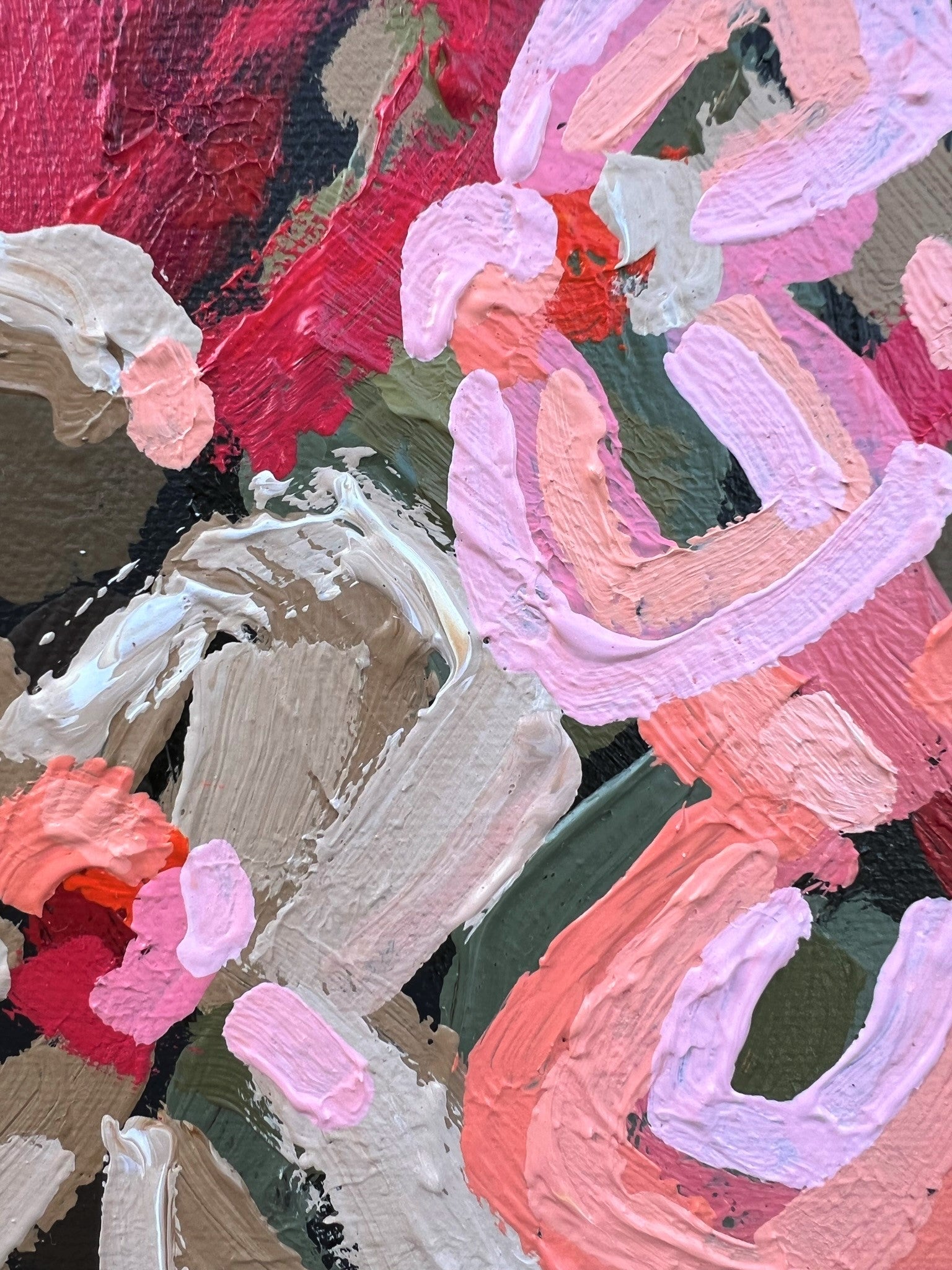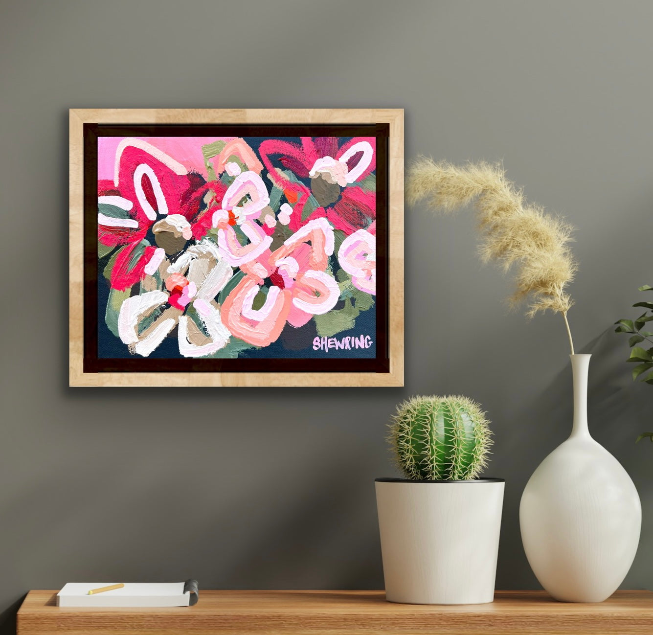 These flowers are painted with texture in an expressive style in vibrant pinks, delicious apricots, peaches, melons, sage and olive green and a touch of soft earthy tones that would suit a range of different decors