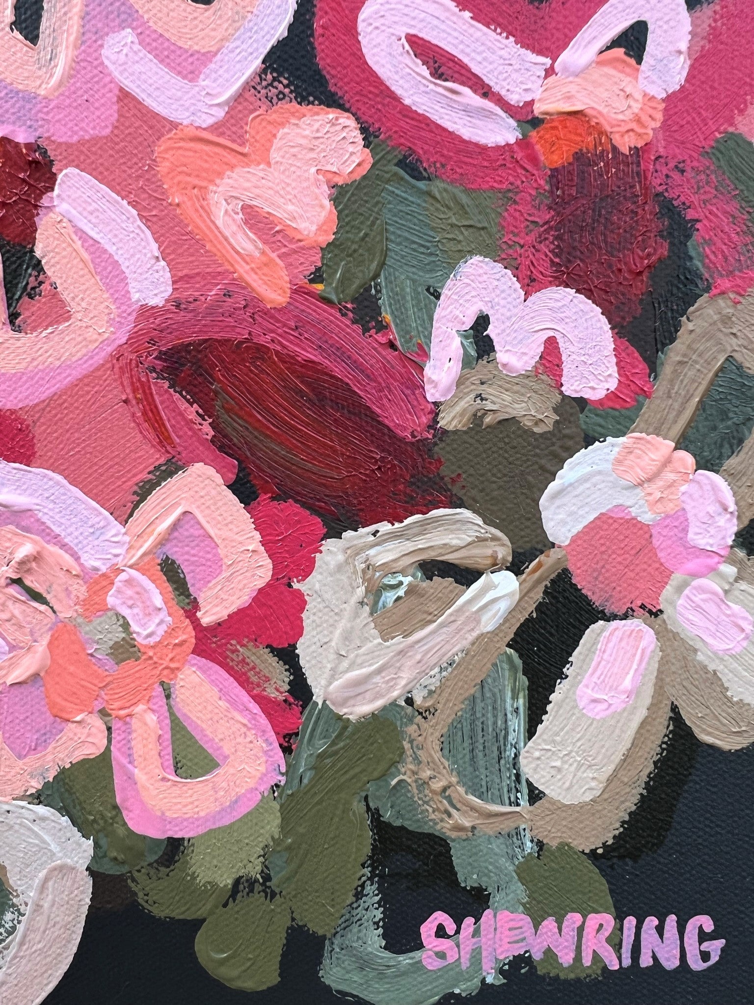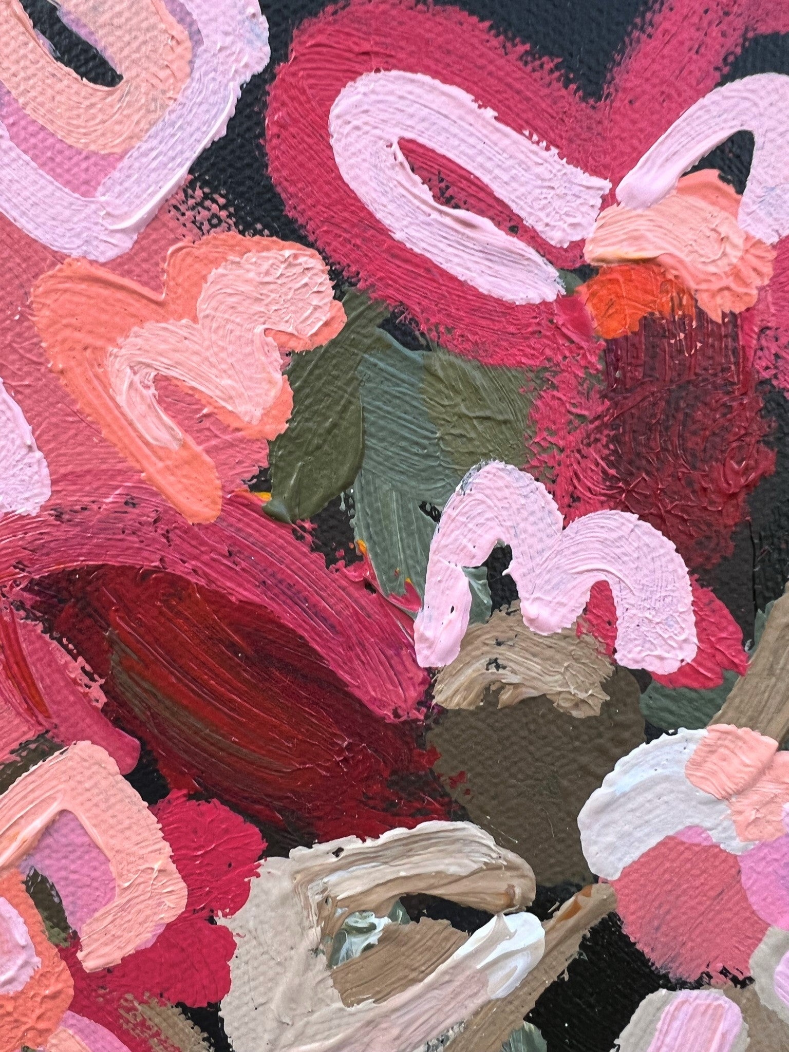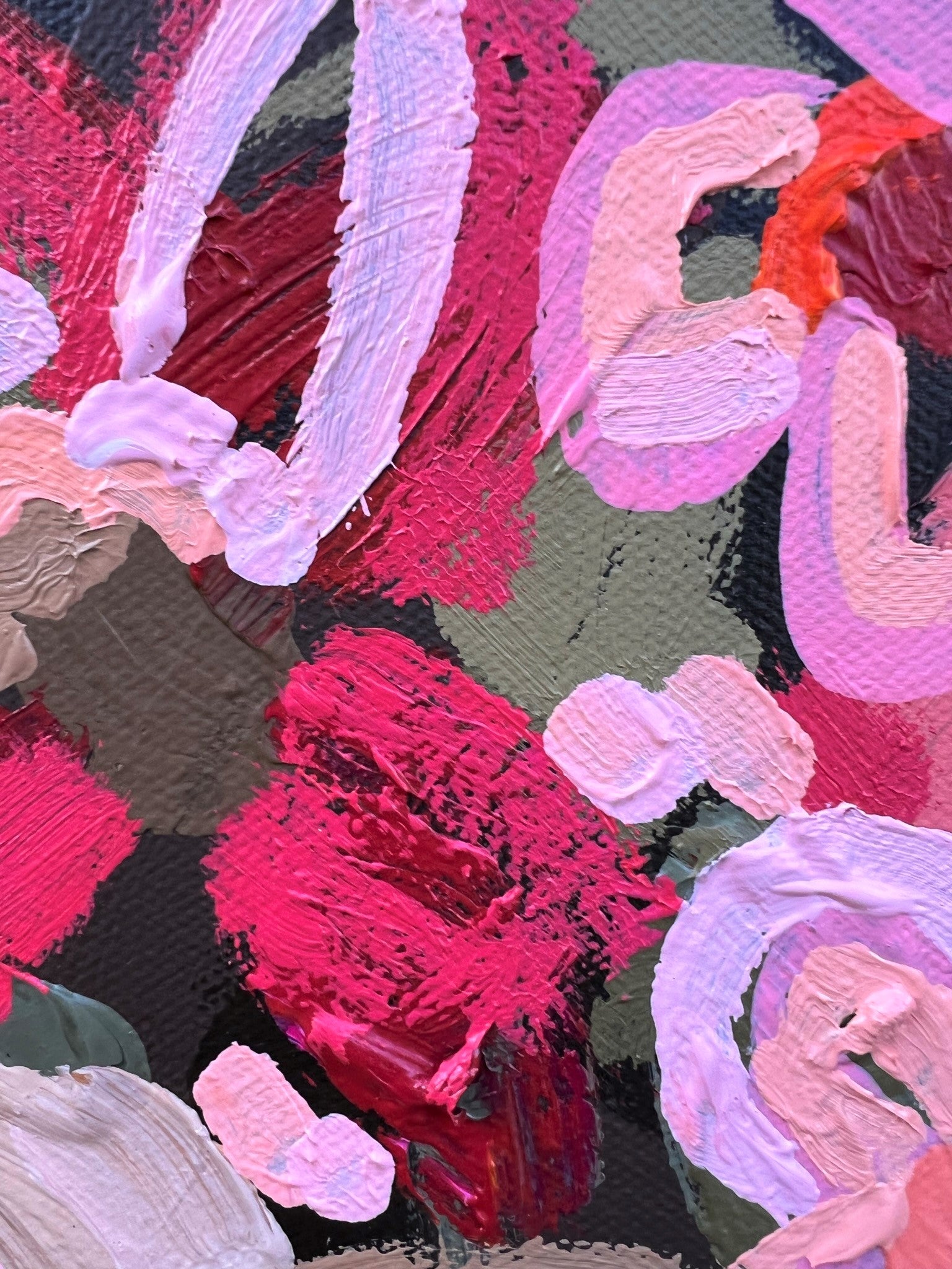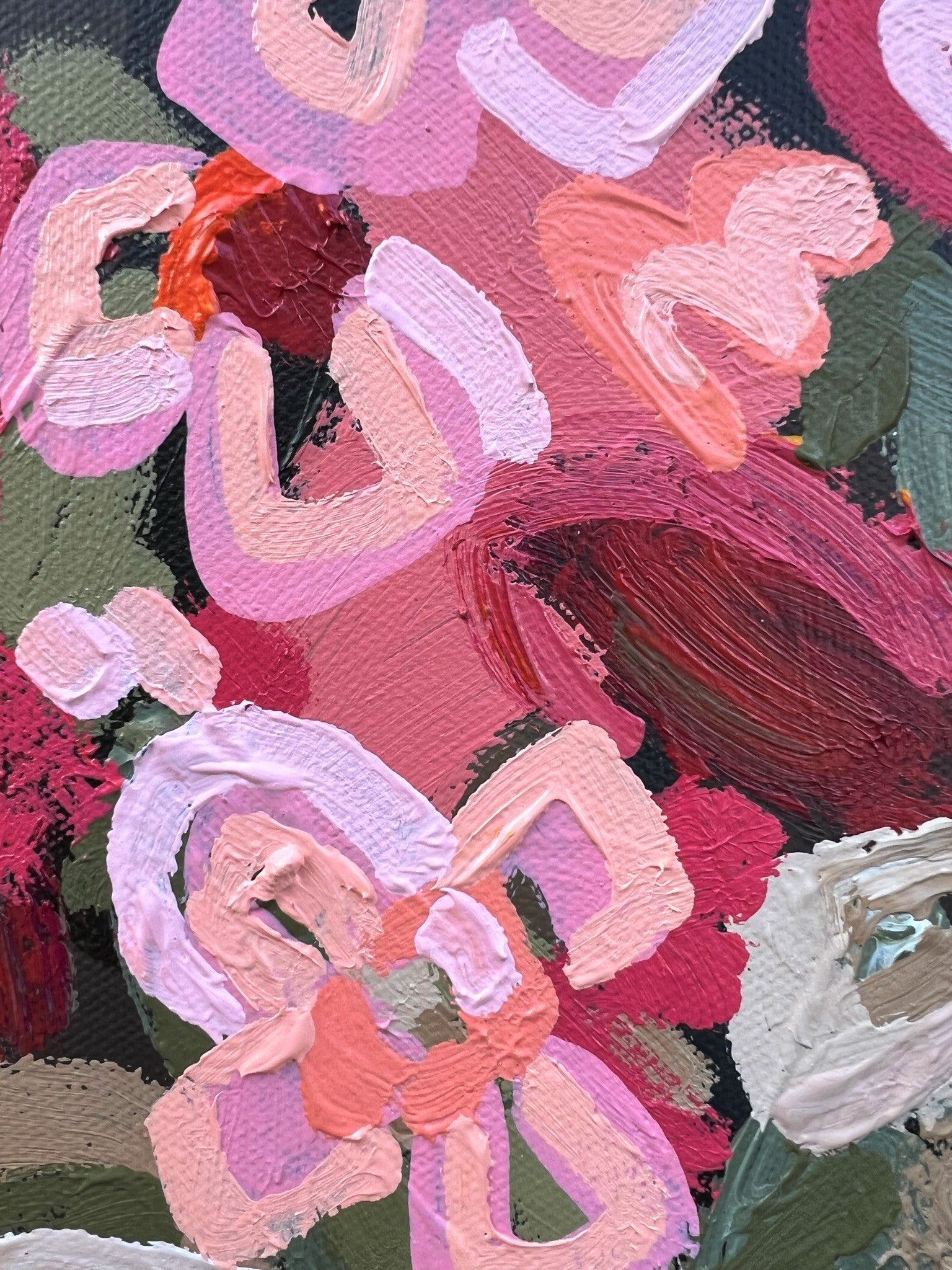 These flowers are painted with texture in an expressive style in vibrant pinks, delicious apricots, peaches, melons, sage and olive green and a touch of soft earthy tones that would suit a range of different decors