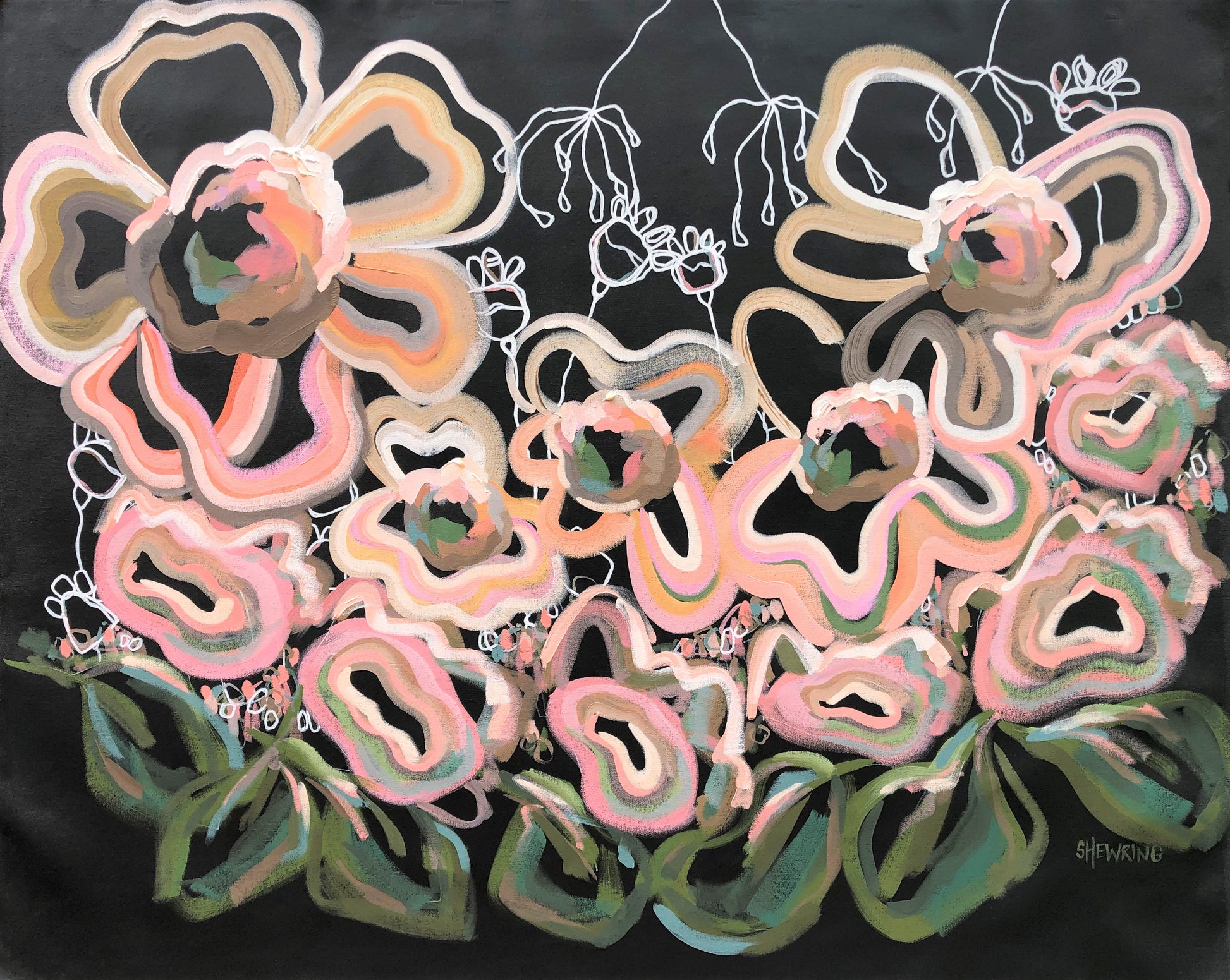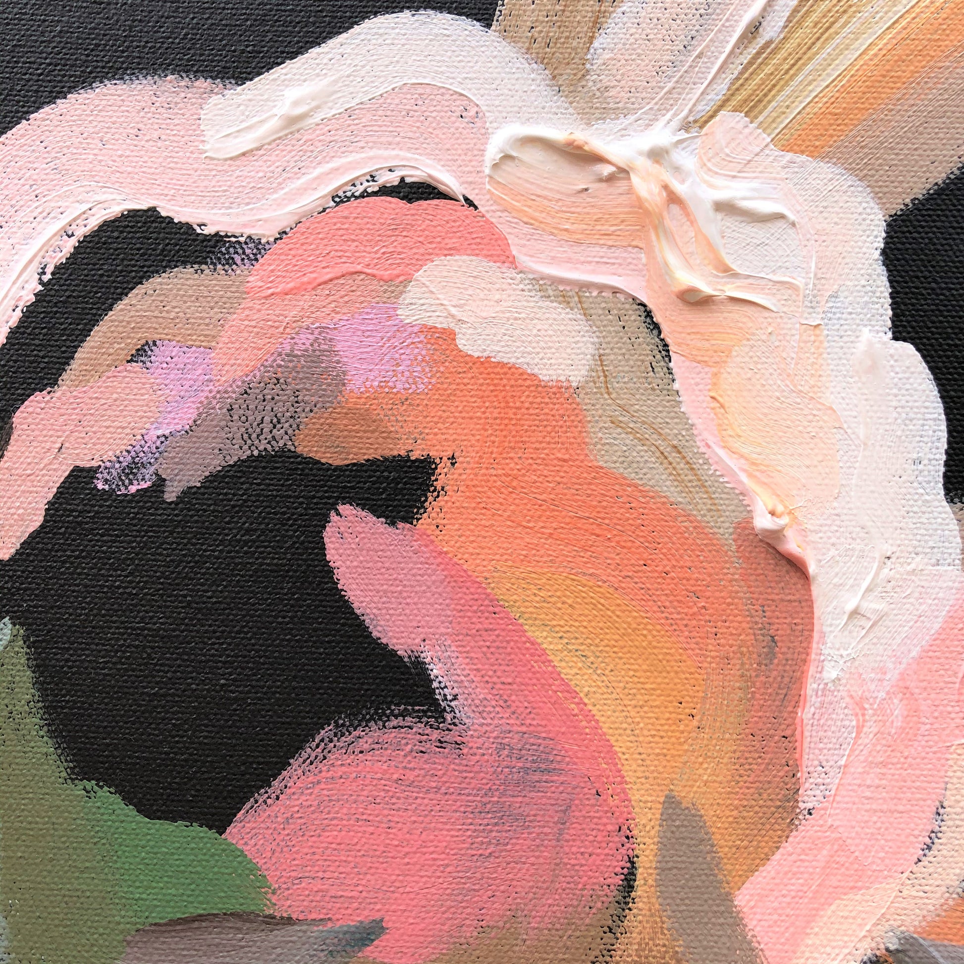 In this painting I place their beauty over a dramatic deep charcoal coloured background.