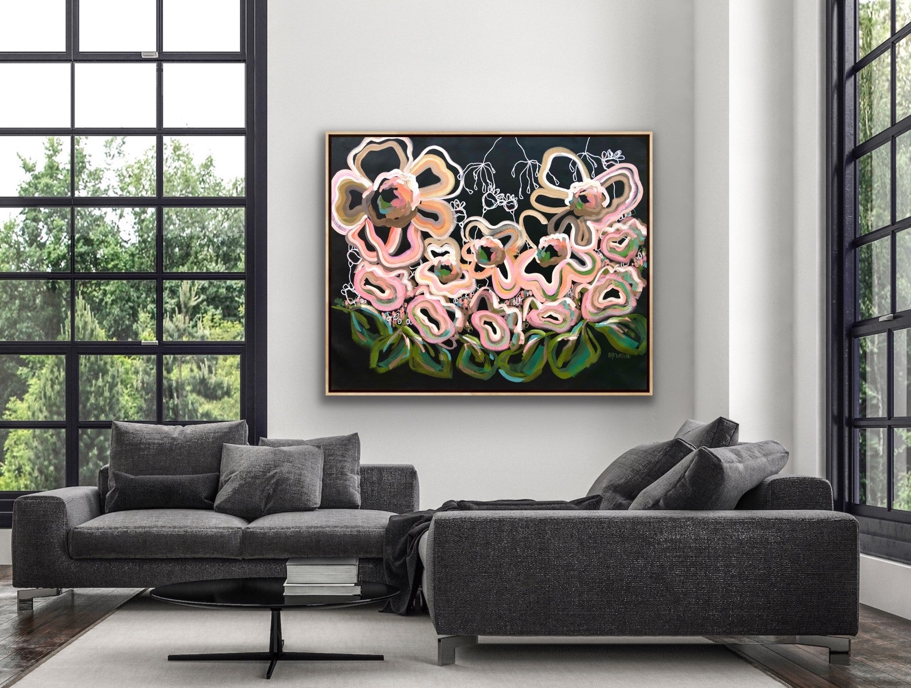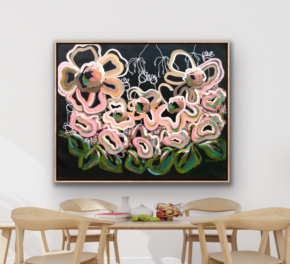- This artwork would look great framed in an oak timber or black floating frame as shown in the photo (frame is not supplied)