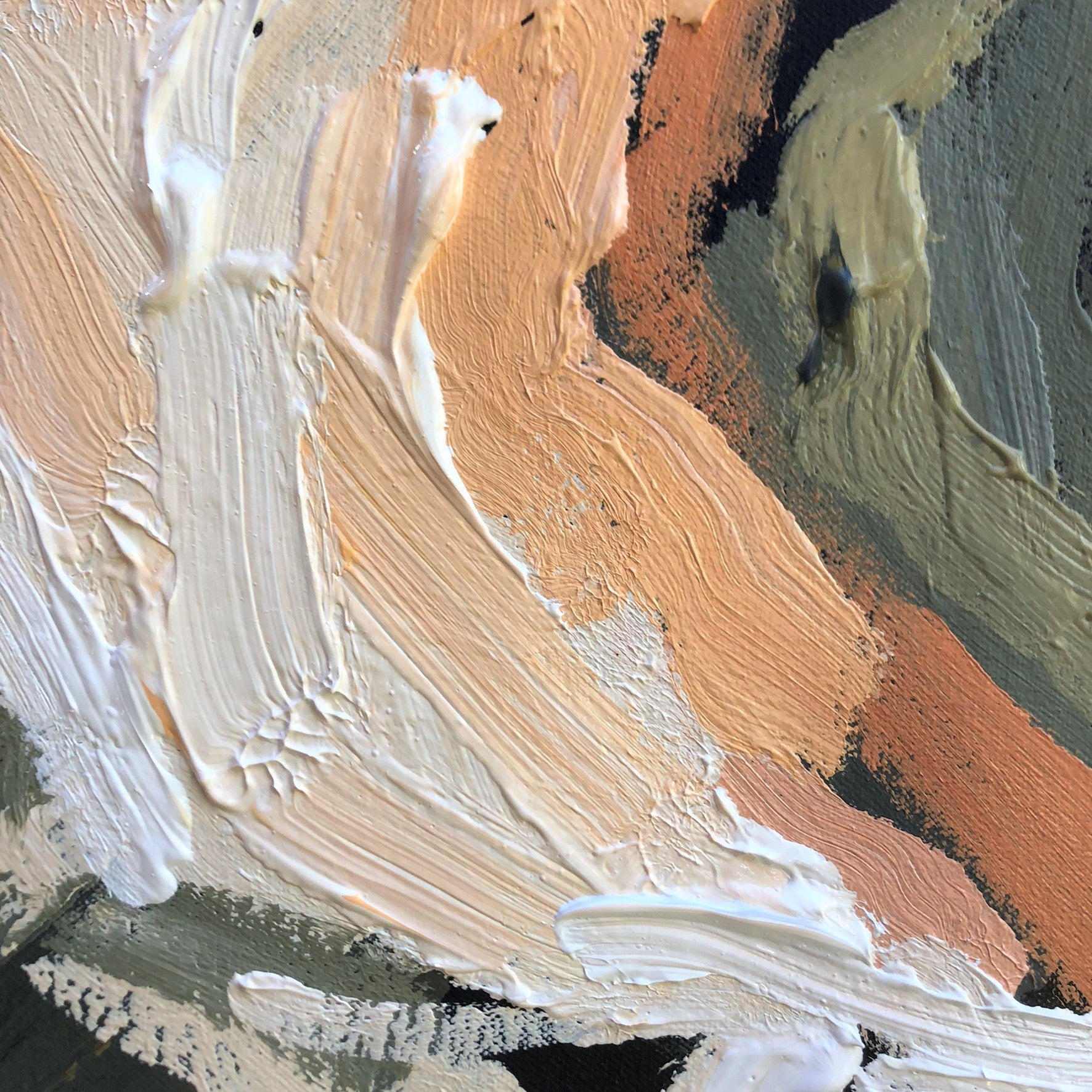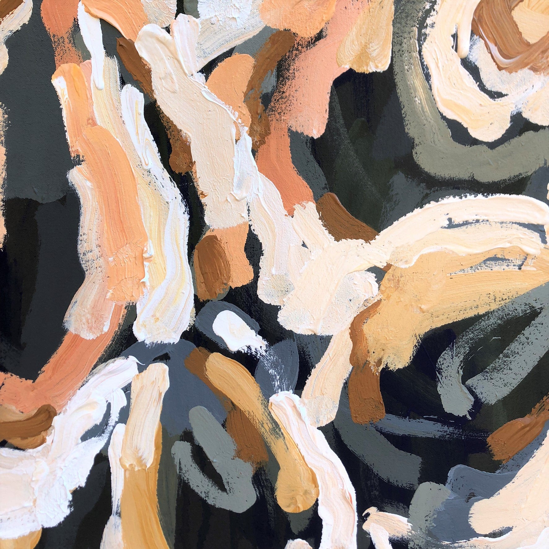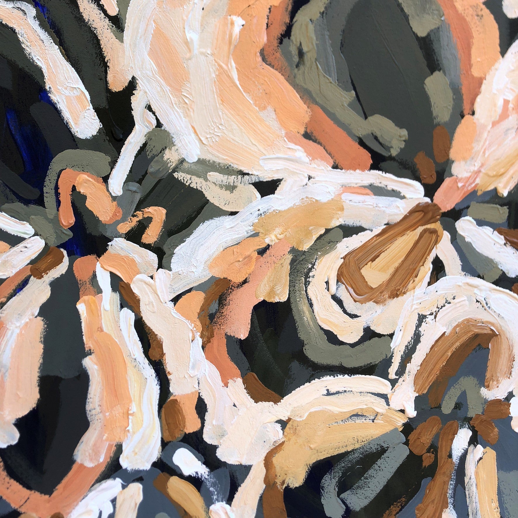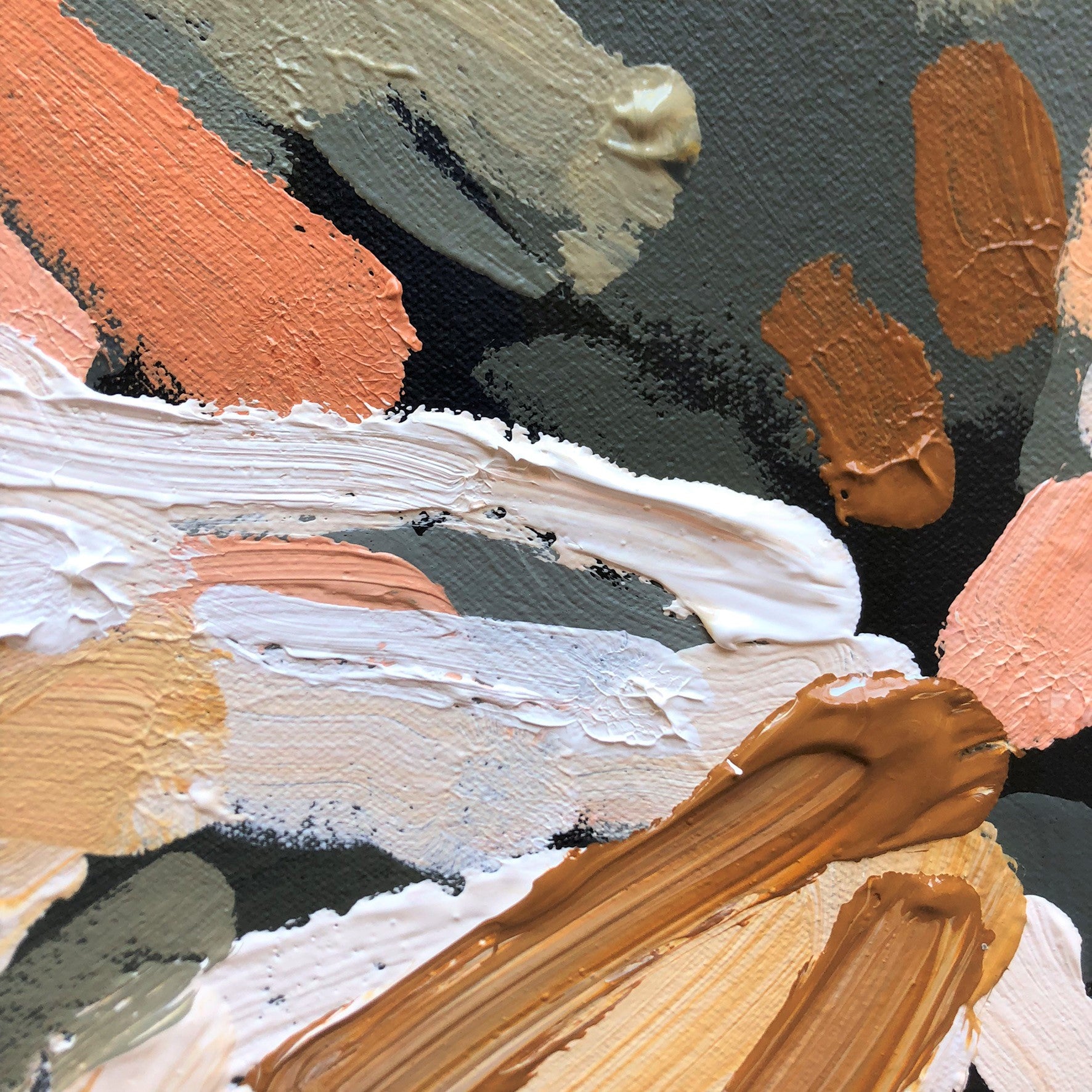 Love Of My Life packs a big bright punch of bold colour! Powerful abstract with bright creams, earthy tones, sage greens and blue highlights. This painting has expressive individual brushstrokes that bring it to life!