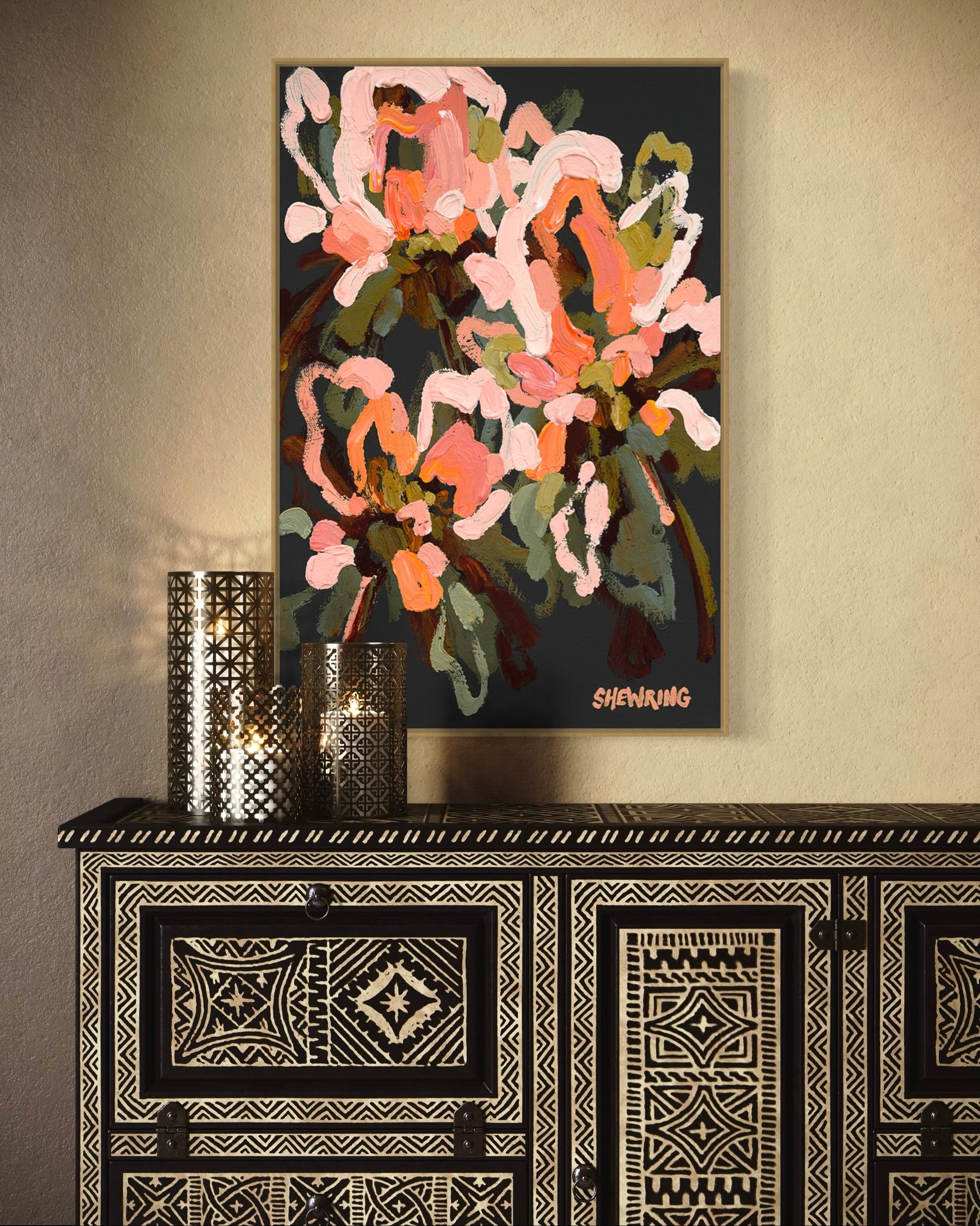 Jen's work was chosen and displayed in 4 houses on the hit TV series 'THE BLOCK' and she has been labelled as one of the top 10 Australian artists to watch. Her artwork was published in Grand Designs Magazine.