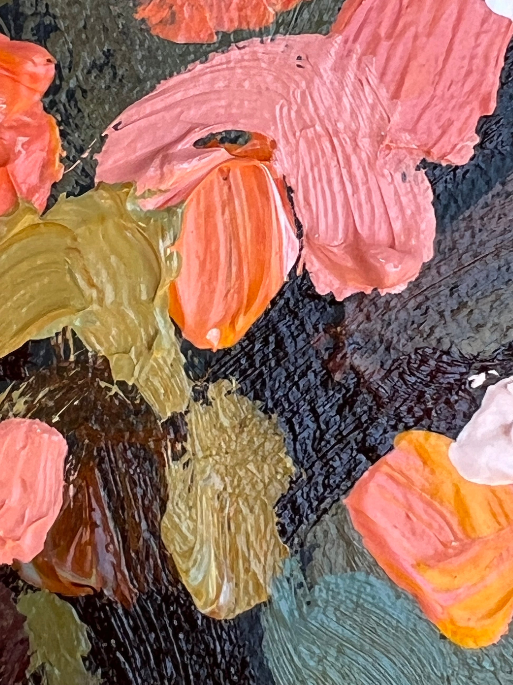 This art print onto canvas is full of life, movement and colour with joyous flowers.