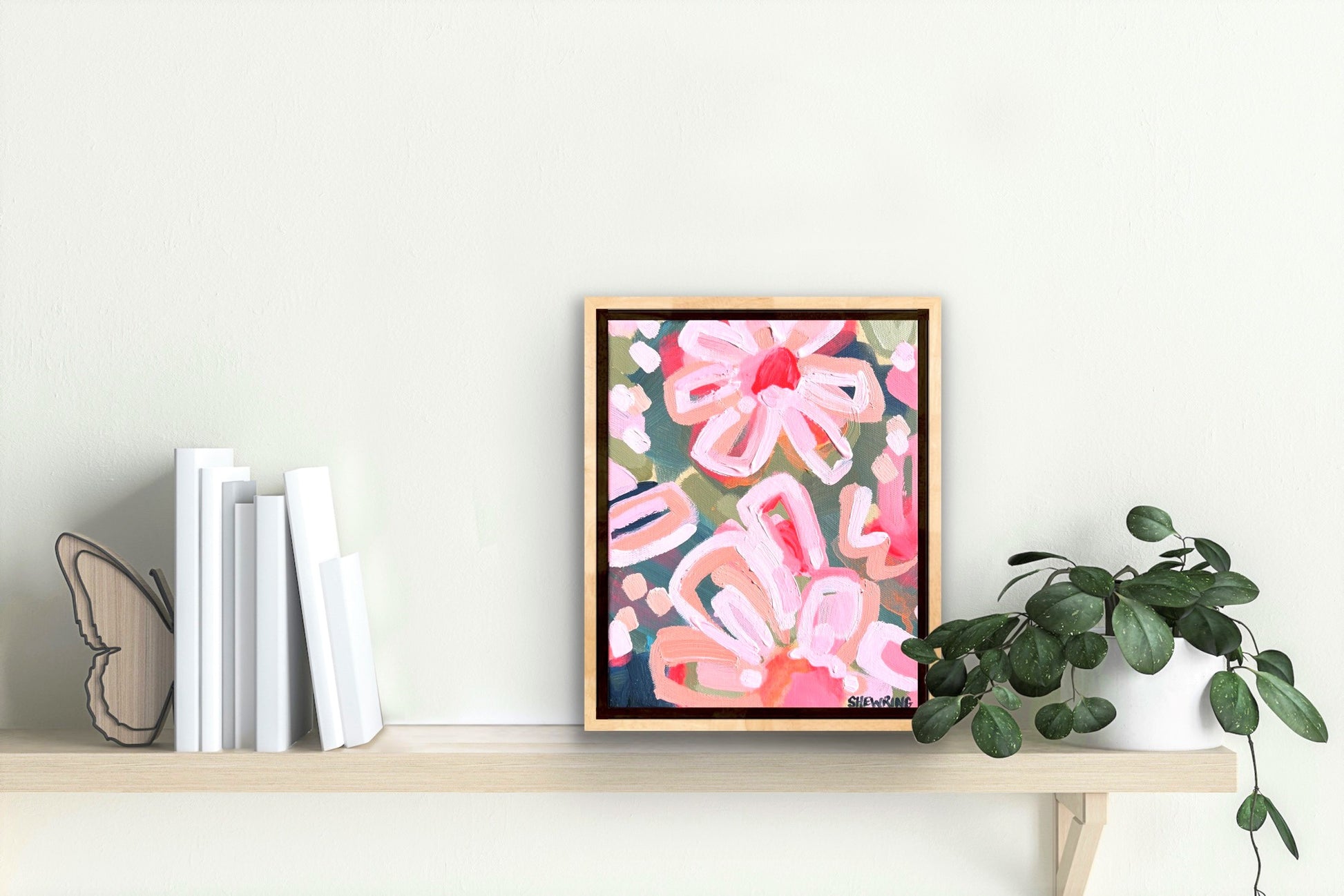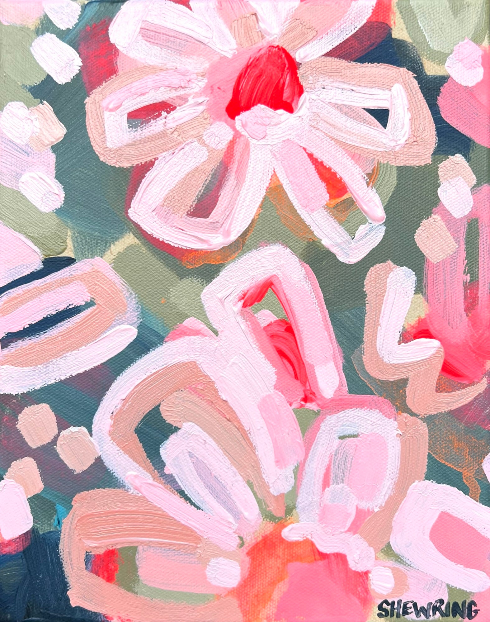 Love You #5 is a bright and bold flower abstract inspired by the delicious colours of melons, strawberries and raspberries complimented with shades of gorgeous greens and blues. This painting has the passionate colours of love!