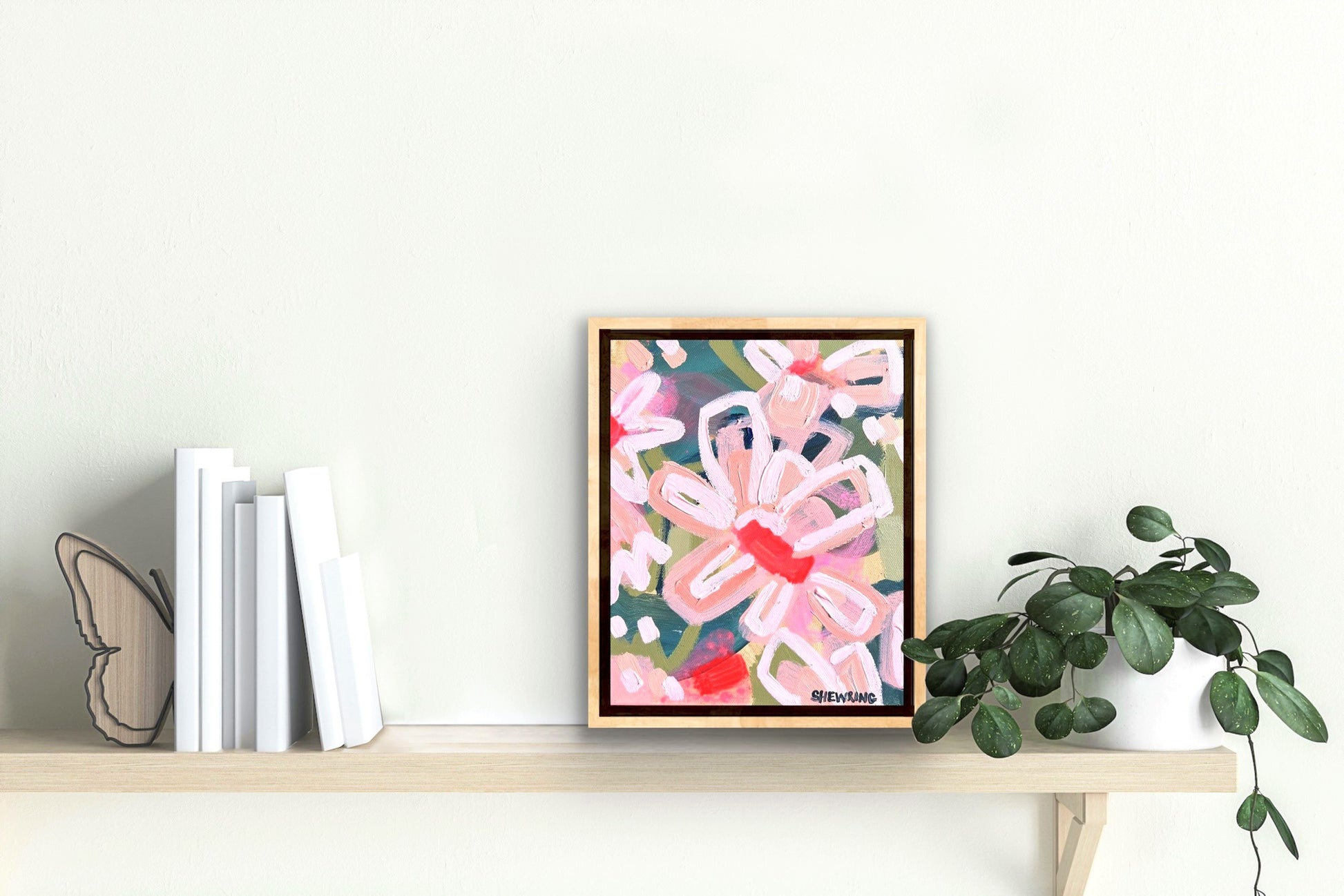Love You #6 is a bright and bold flower abstract inspired by the delicious colours of melons, strawberries and raspberries complimented with shades of gorgeous greens and blues. This painting has the passionate colours of love!