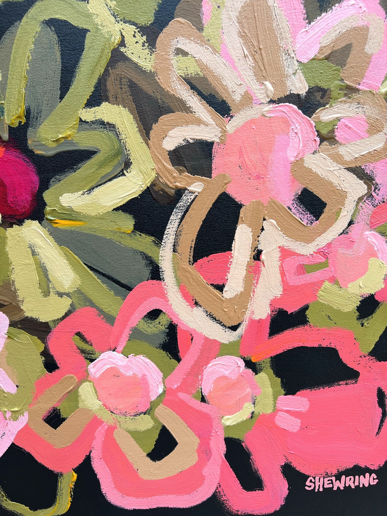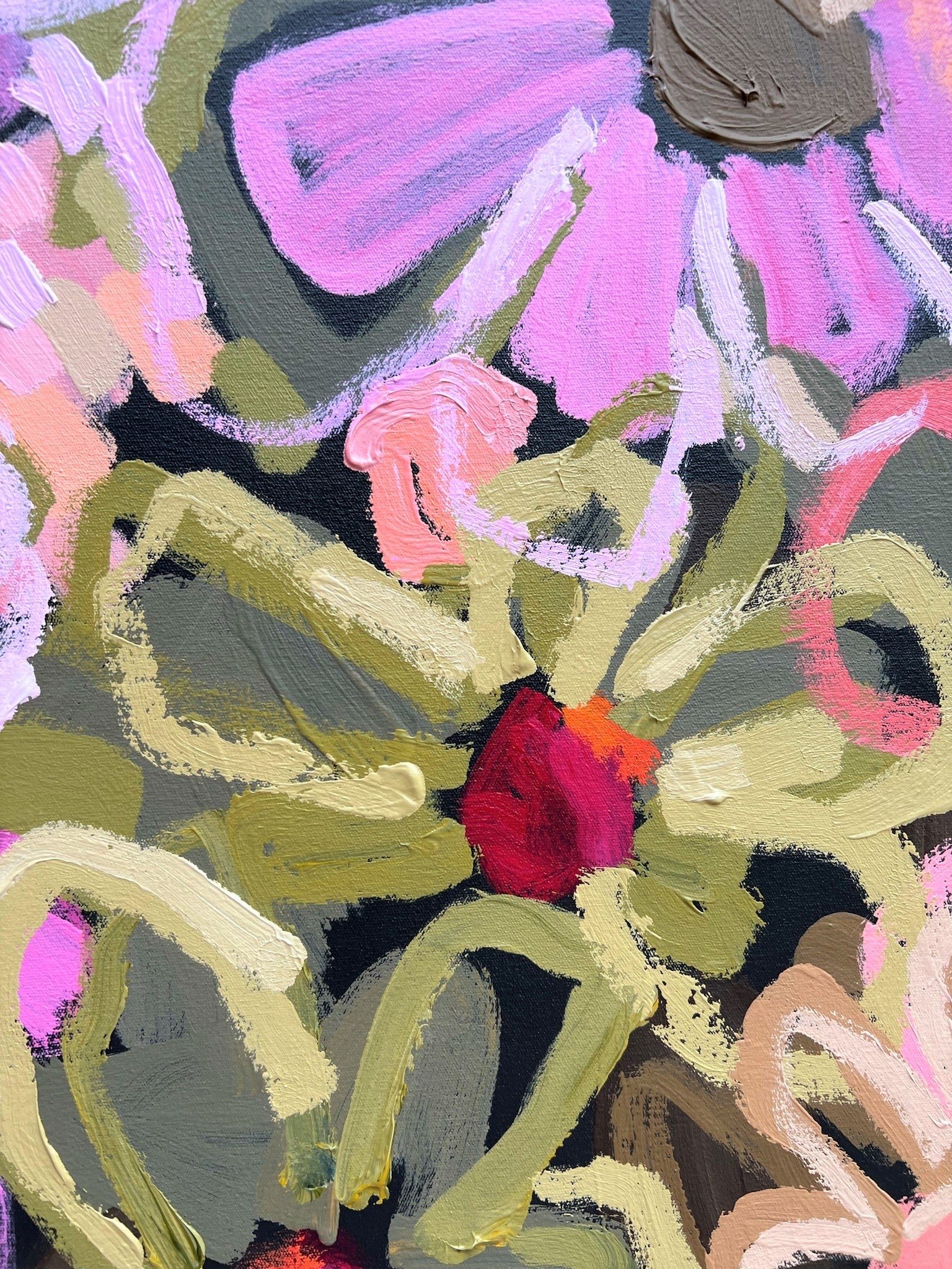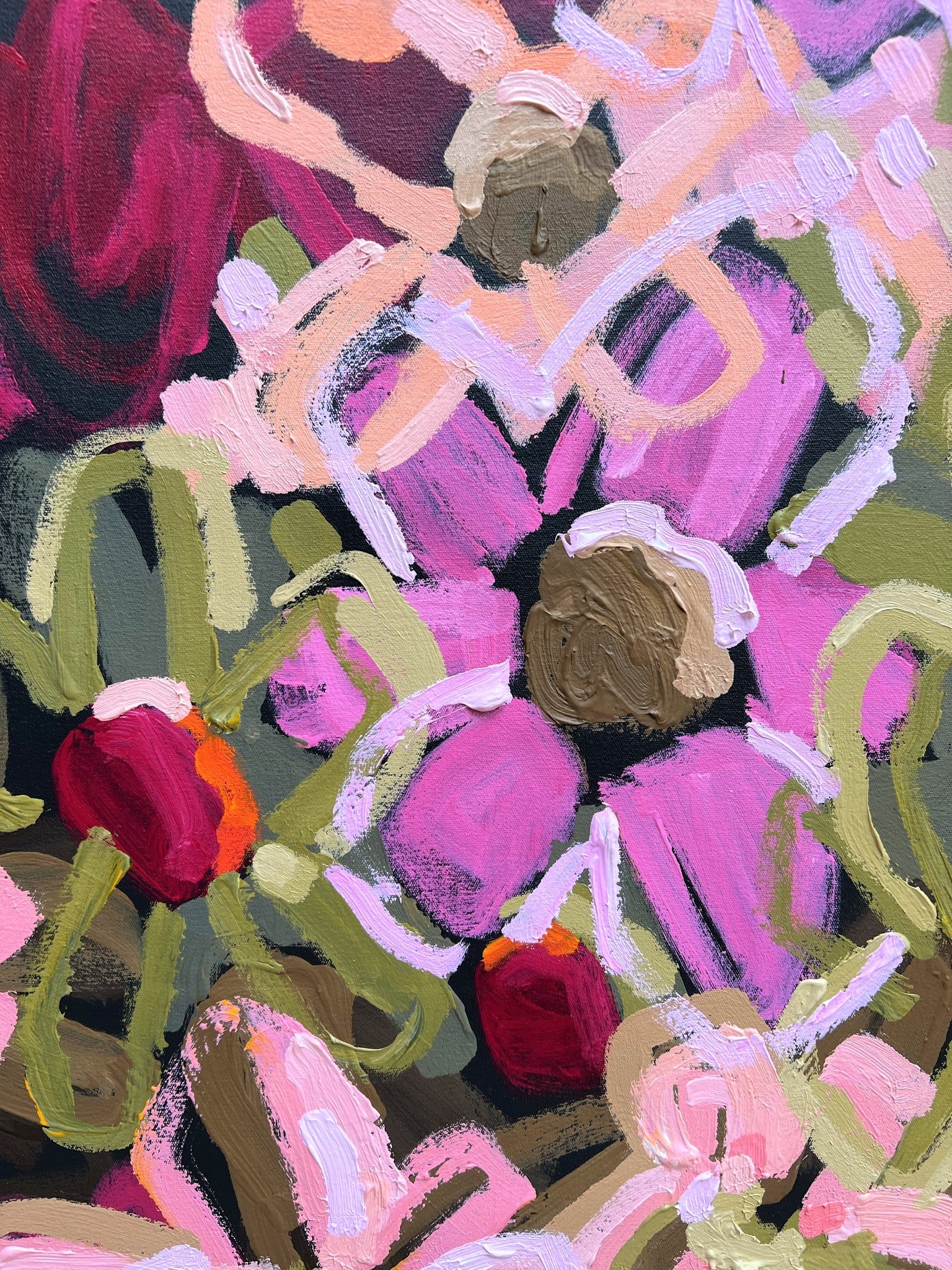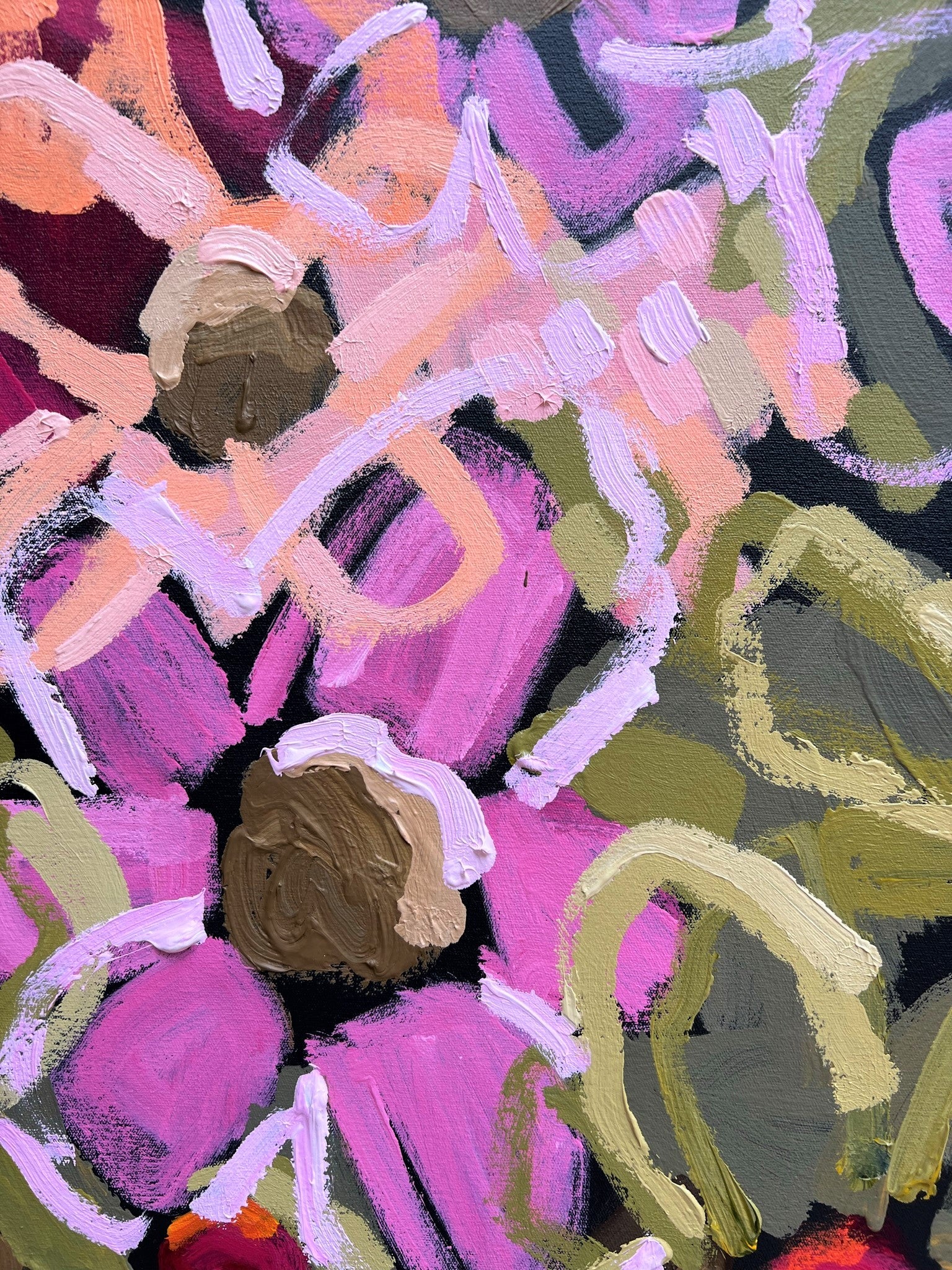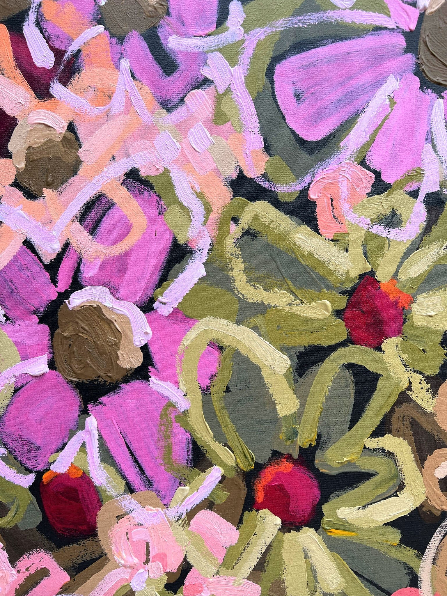 Love You For Life is a happy and bright piece inspired by the beautiful colour of fresh flowers basking in the morning sunshine of my local gardens of Melbourne, Australia. The colours are so pretty and vibrant.
