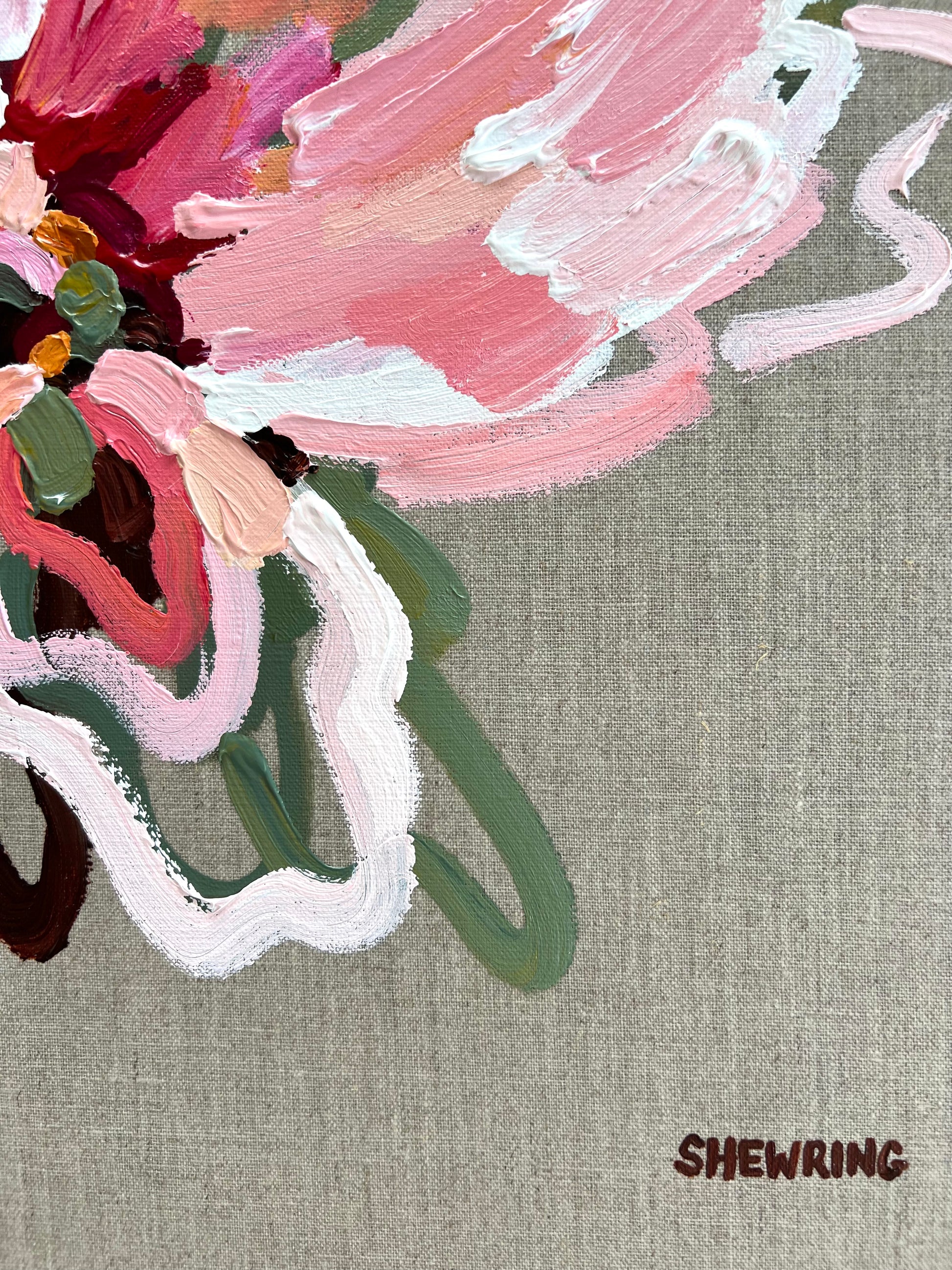 Lovers Of Pink is a beautifully textured flower abstract on linen canvas. This painting has expressive individual brushstrokes that bring it to life!Â