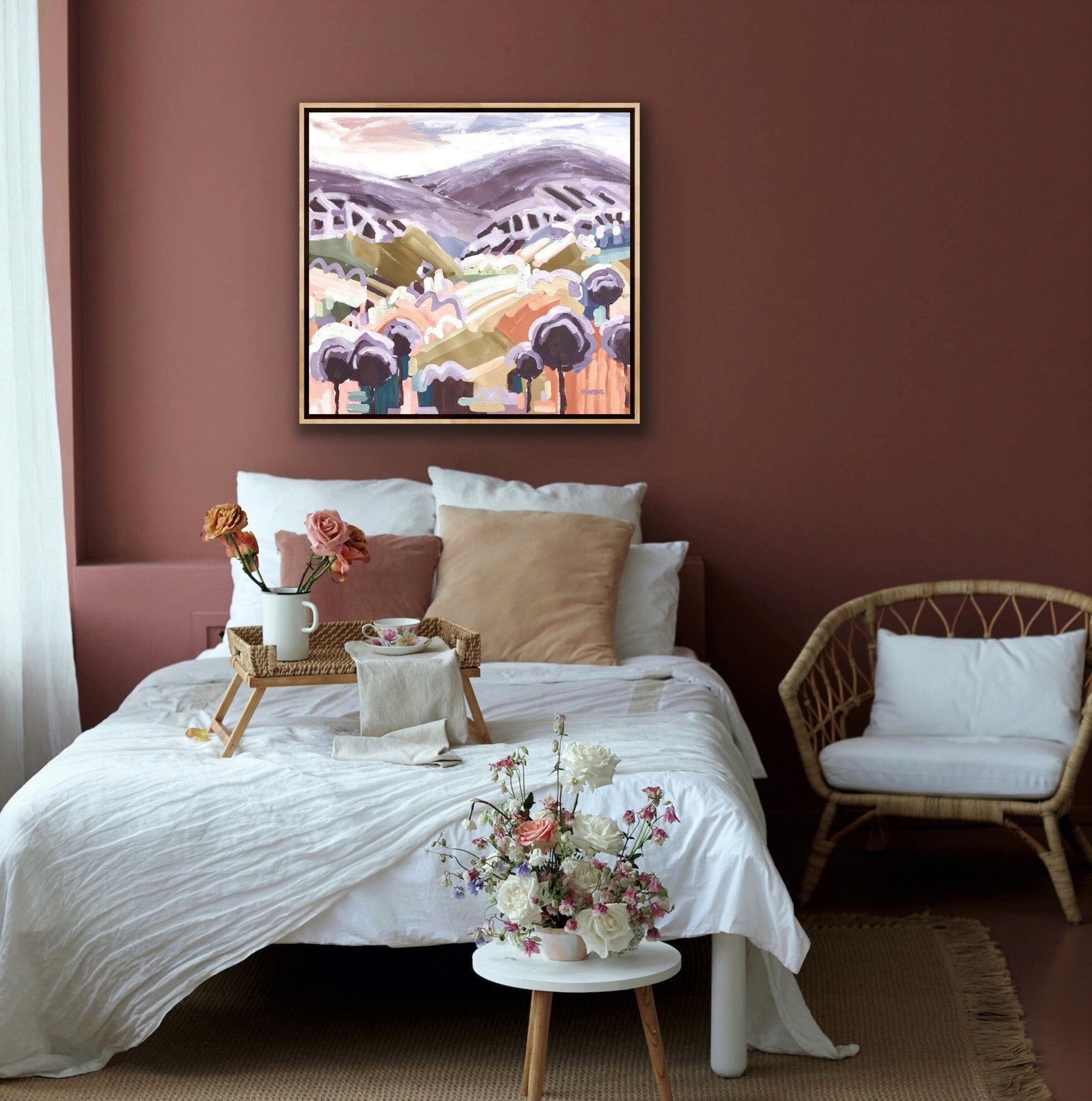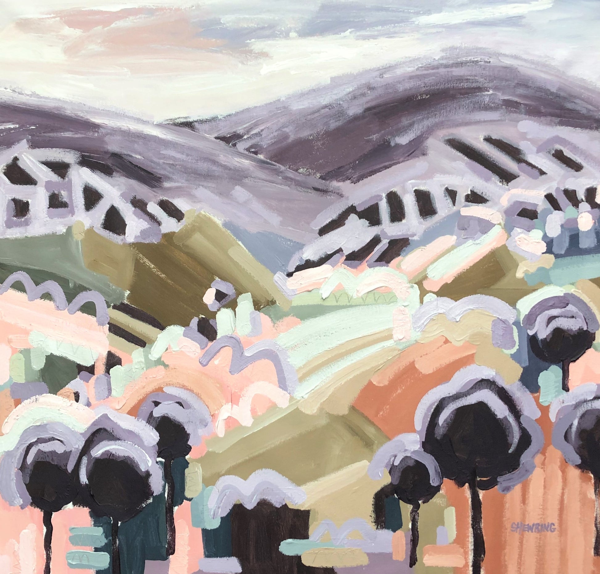 Lovers Sunset was inspired by my many visits to the beautiful Victorian countryside of Red Hill on the Mornington Peninsula in Australia.