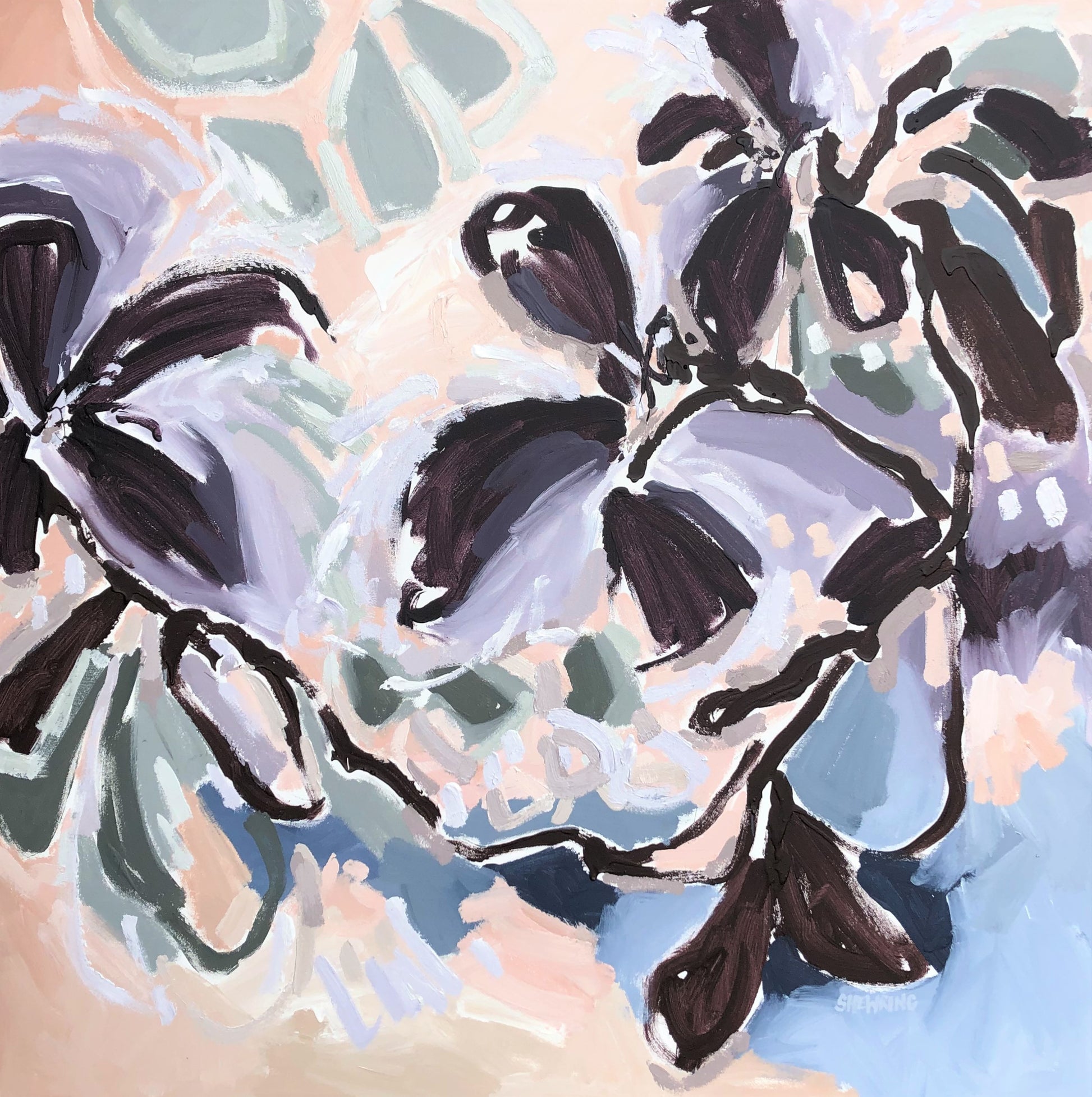 I am obsessed with colour and nature! Outside in the natural environment is where I spend my time sketching the organic forms that surround me. I take them back to my studio where I abstract the beauty and vibrancy of the experience into my paintings. What excites me is creating compositions using a luminous mix of rich colours and texture bringing the outdoors inside feeling happiness from connecting with nature.