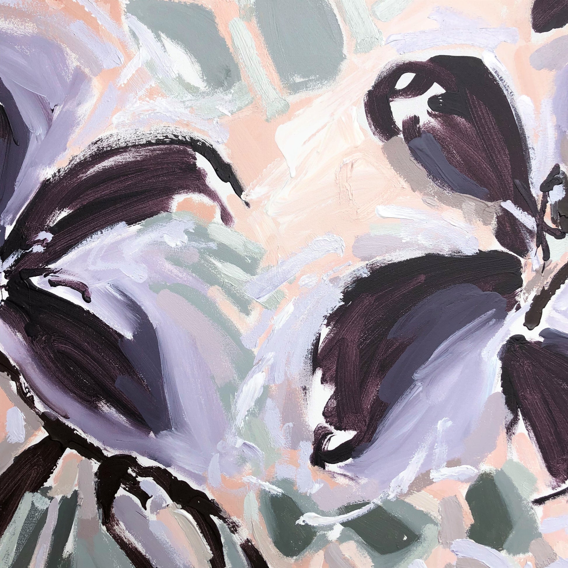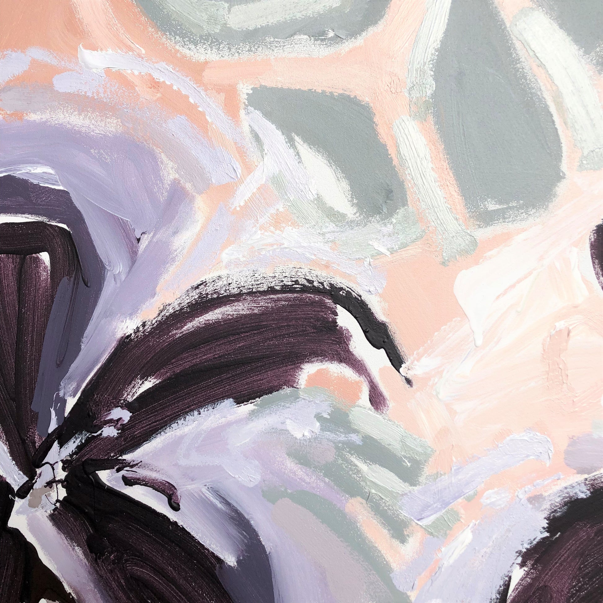 The abstracted flowers and foliage are painted in an expressive style with individual brushstrokes and texture to suit a range of different decors.