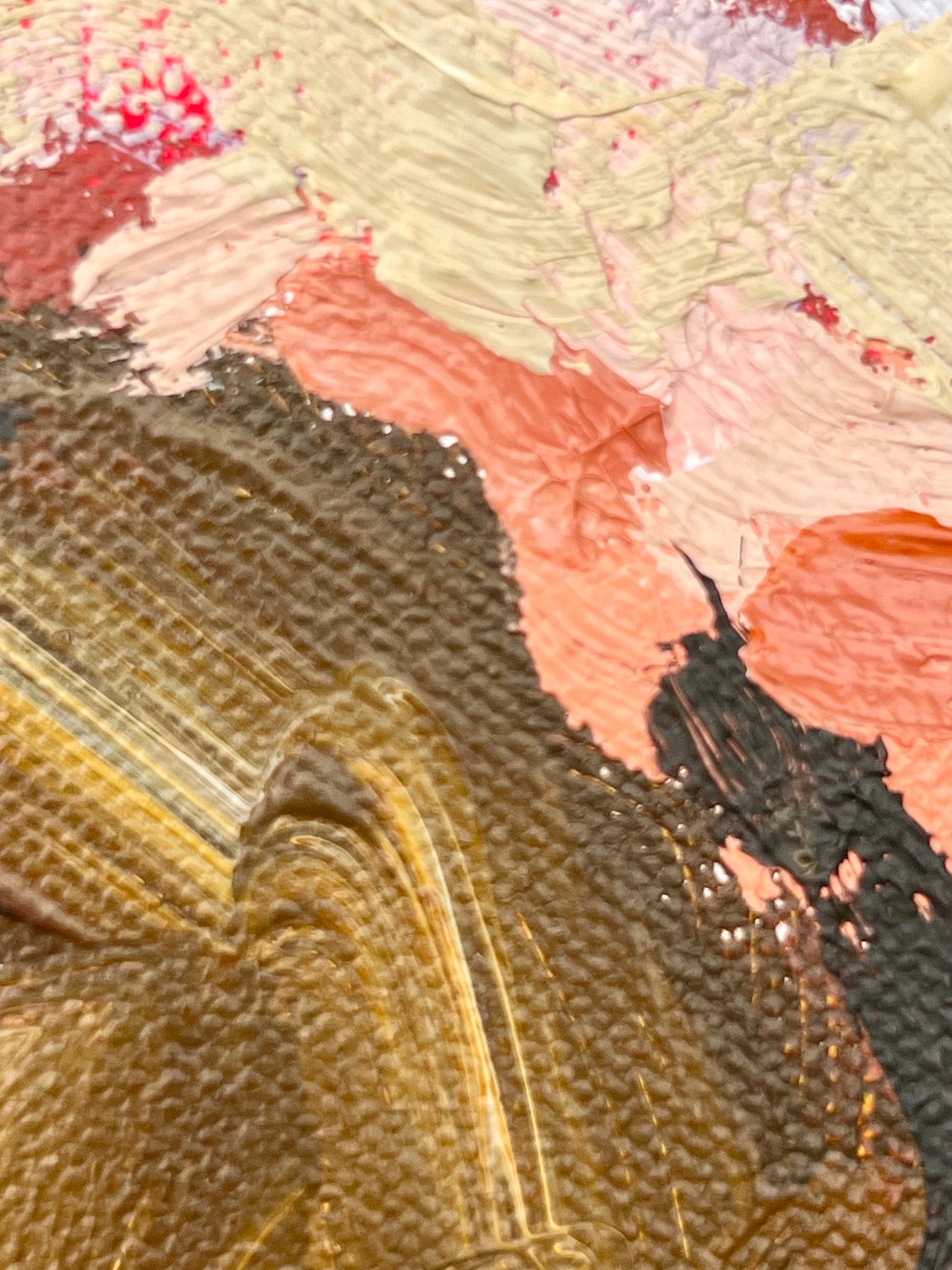 I am obsessed with colour and nature! Outside in the natural environment is where I spend my time sketching the organic forms that surround me. I take them back to my studio where I abstract the beauty and vibrancy of the experience into my paintings. What excites me is creating compositions using a luminous mix of rich colours and texture bringing the outdoors inside feeling happiness from connecting with nature.