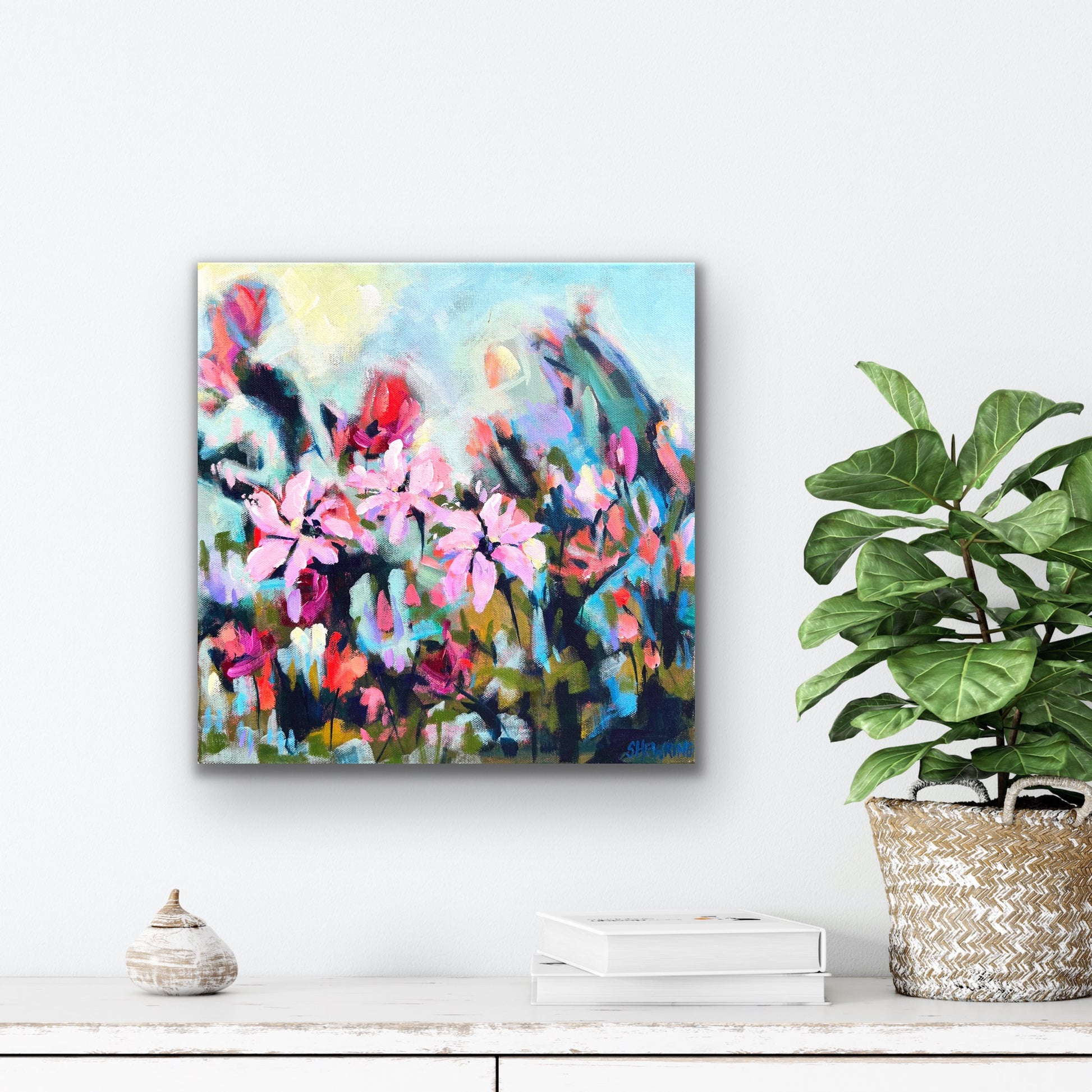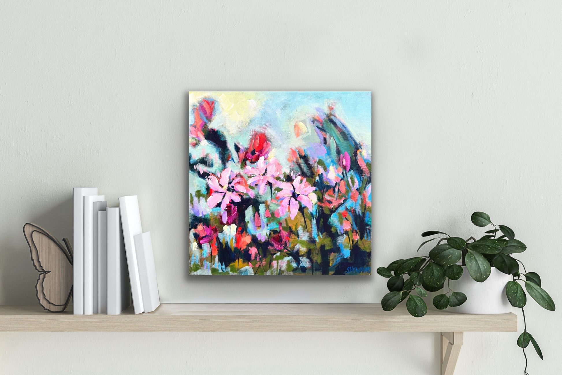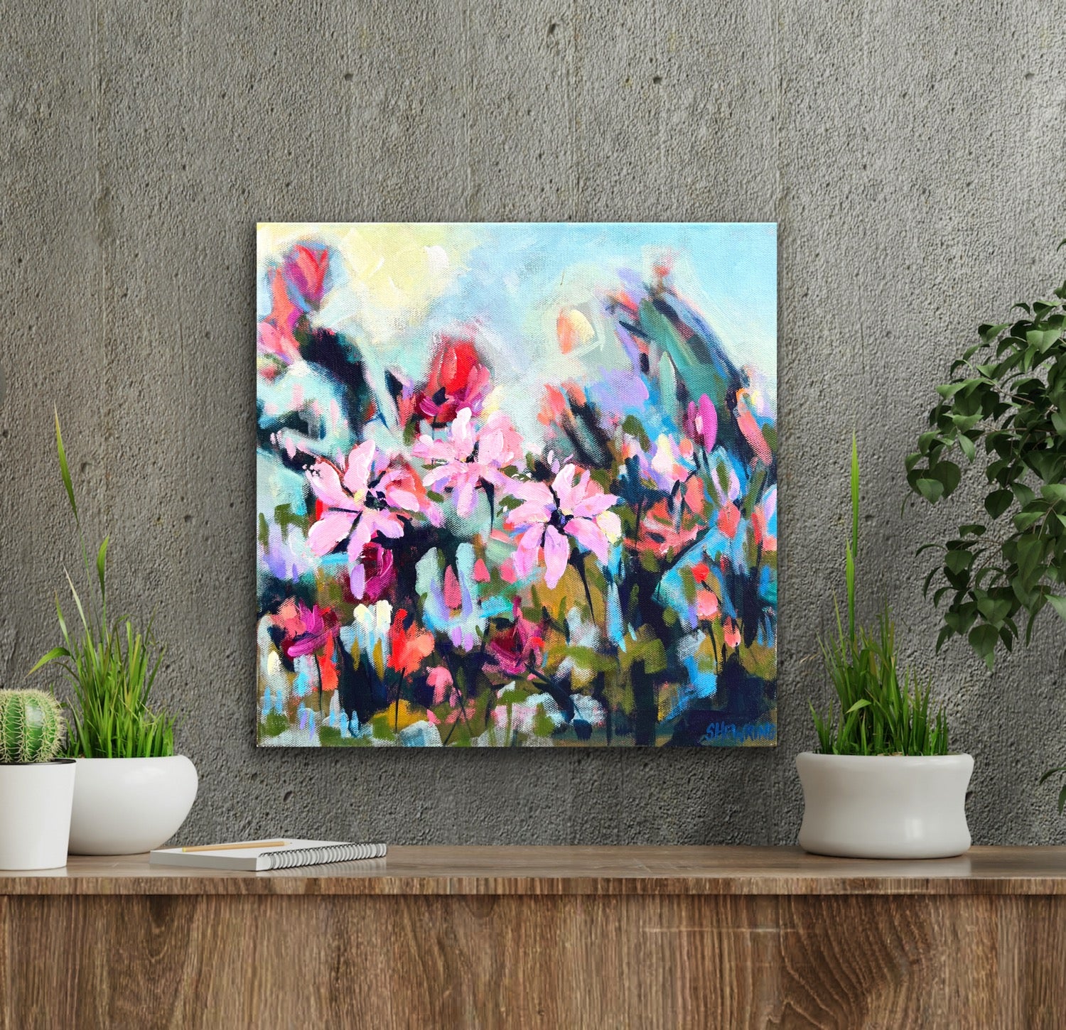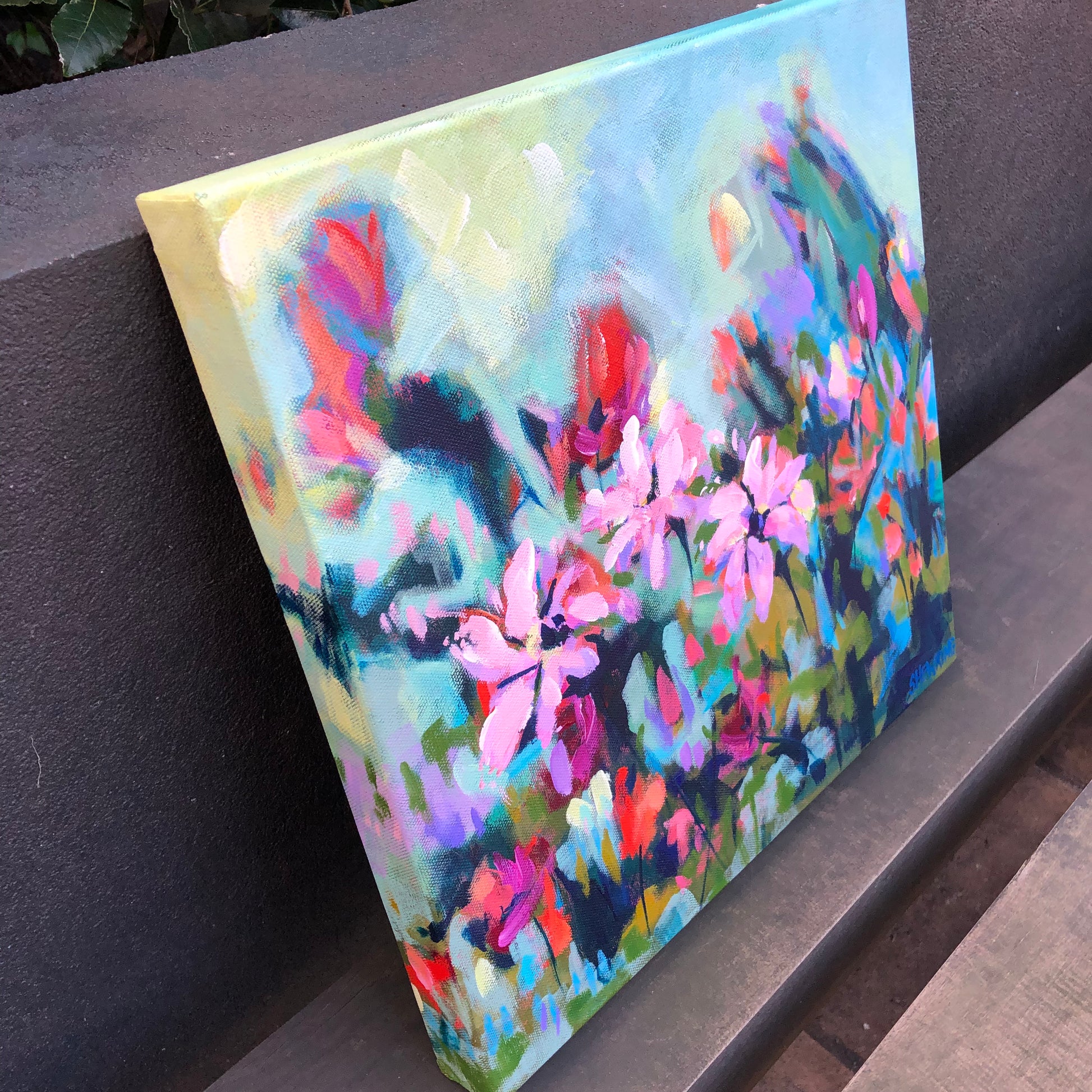 This painting is an original artwork inspired by the vibrant flower colours seen in my garden of Melbourne.