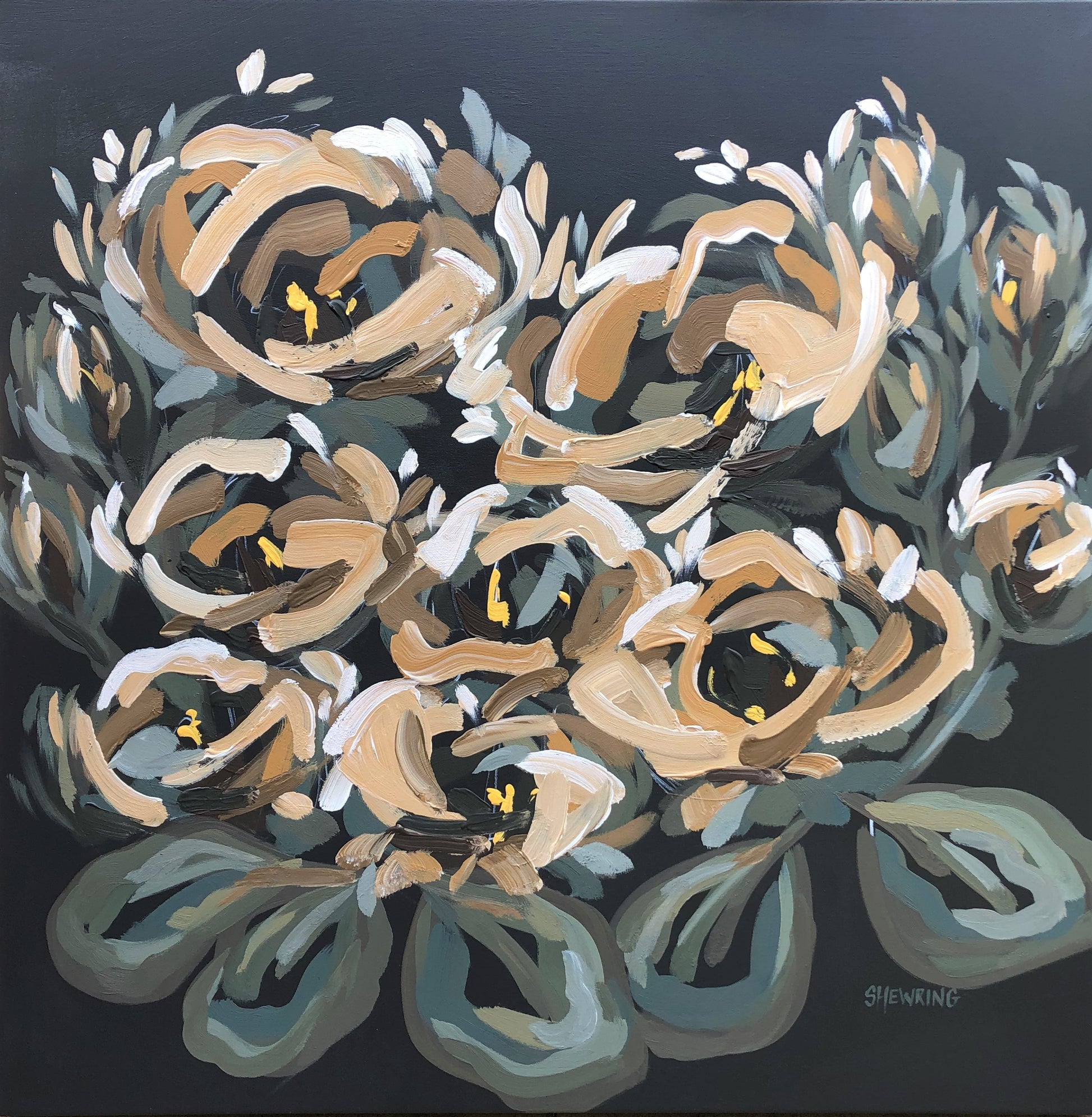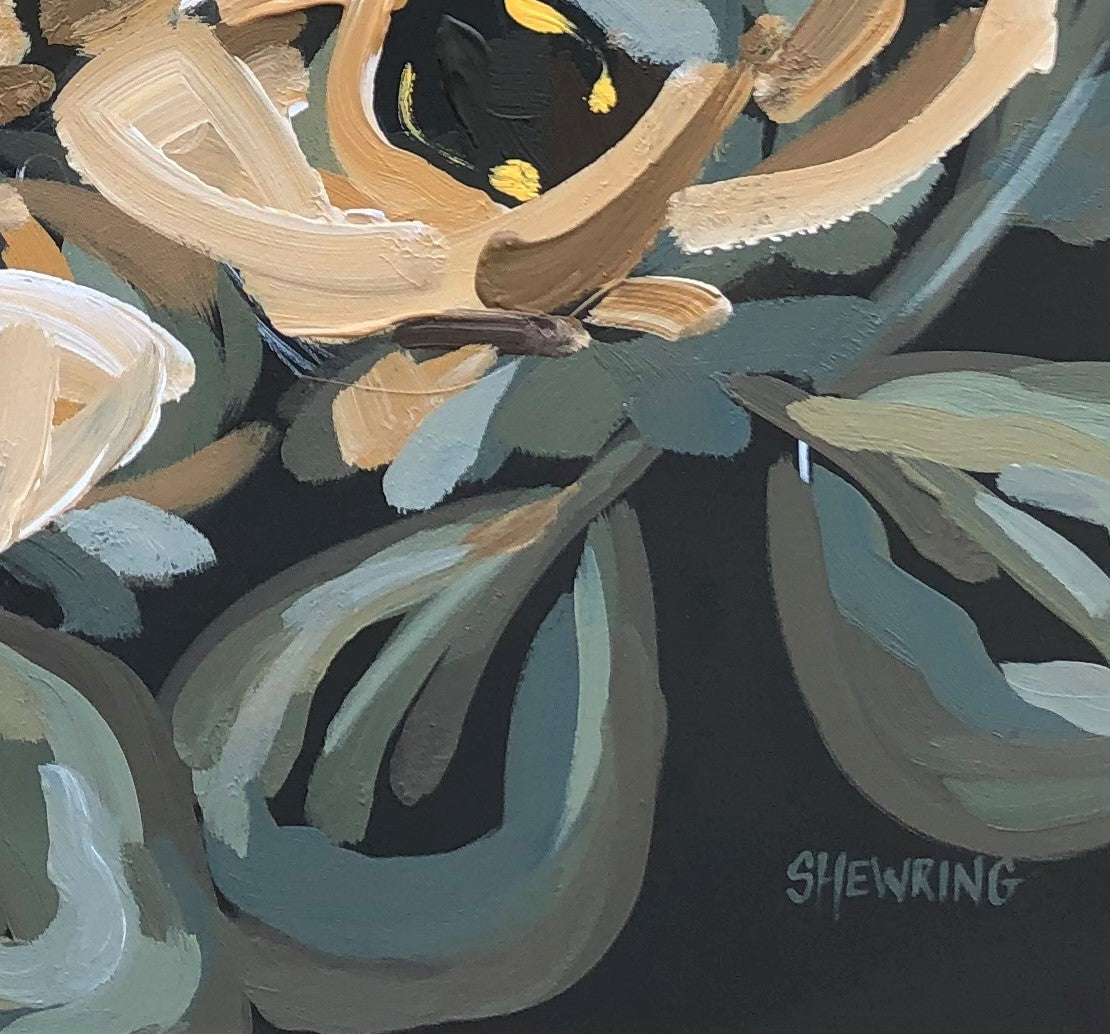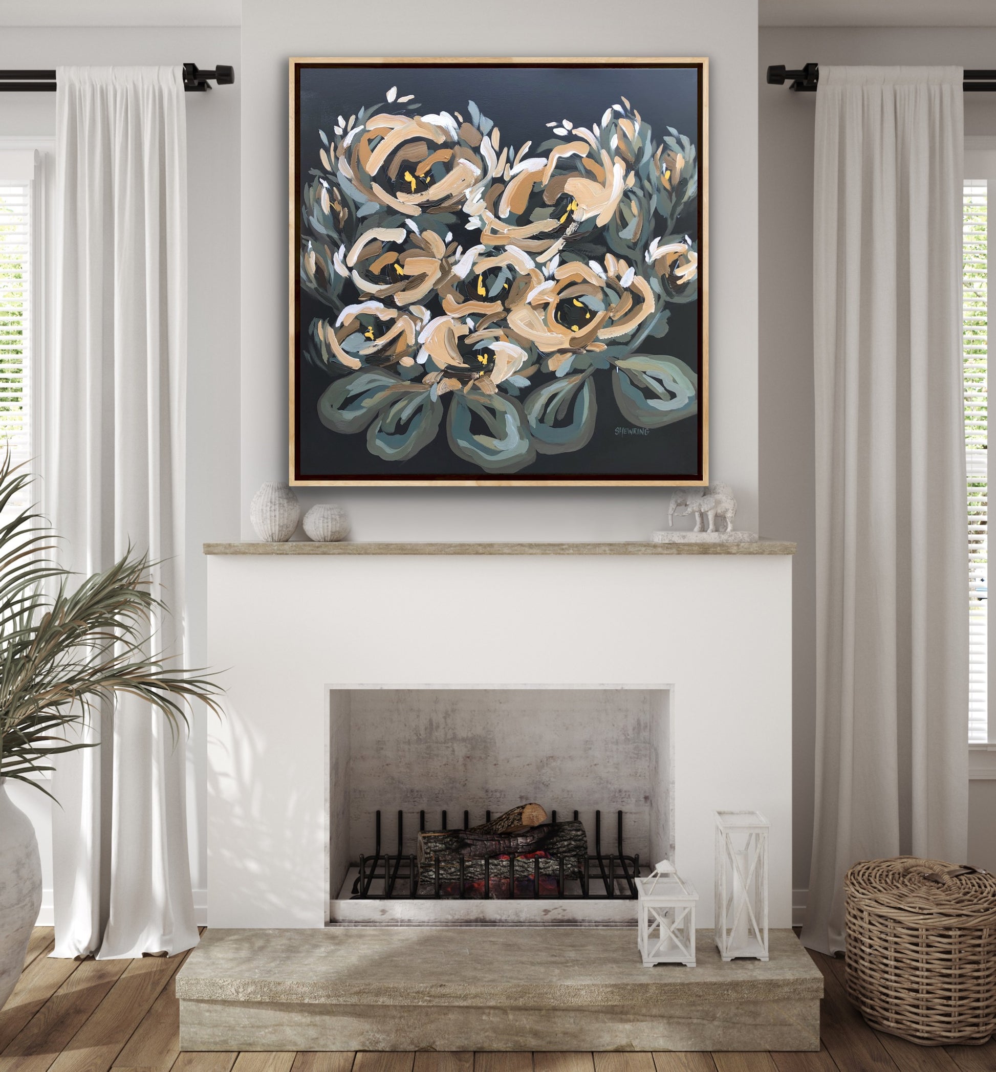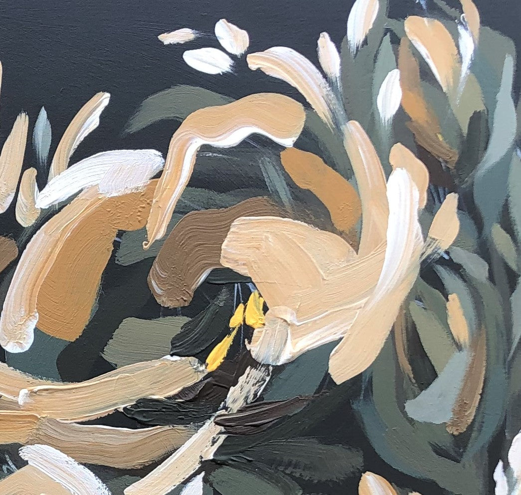 The fresh flower petals in Mocha were created with creamy dollops of lush paint to produce a bright and happy botanical painting. This painting has expressive individual brushstrokes that bring it to life!