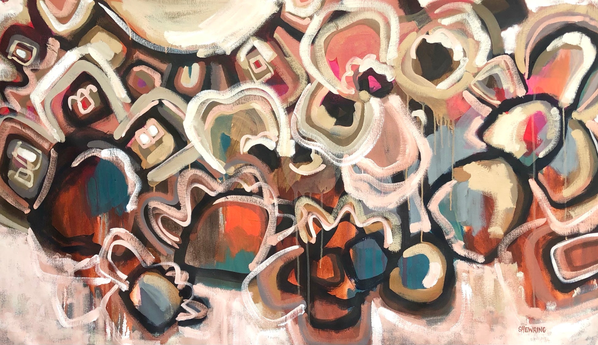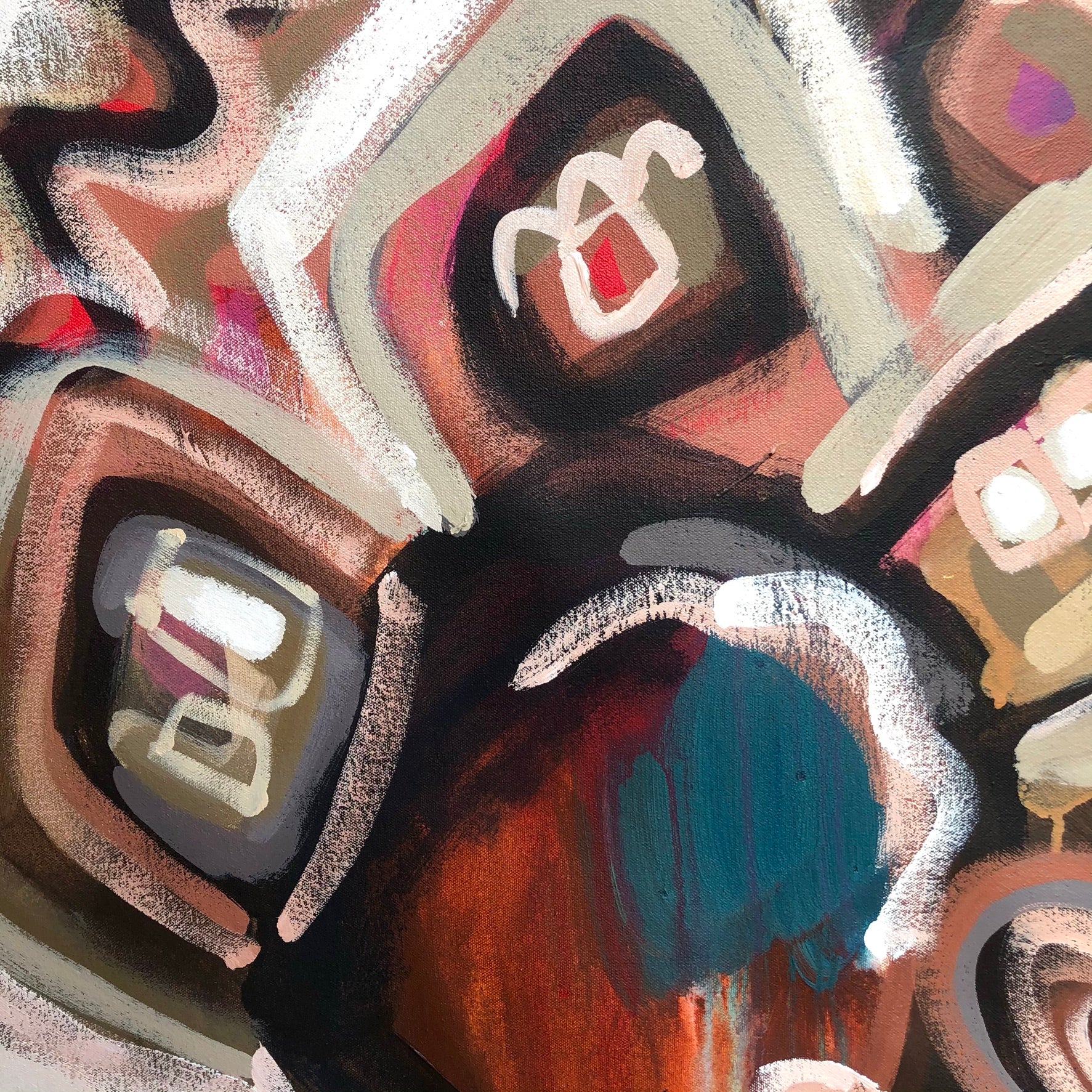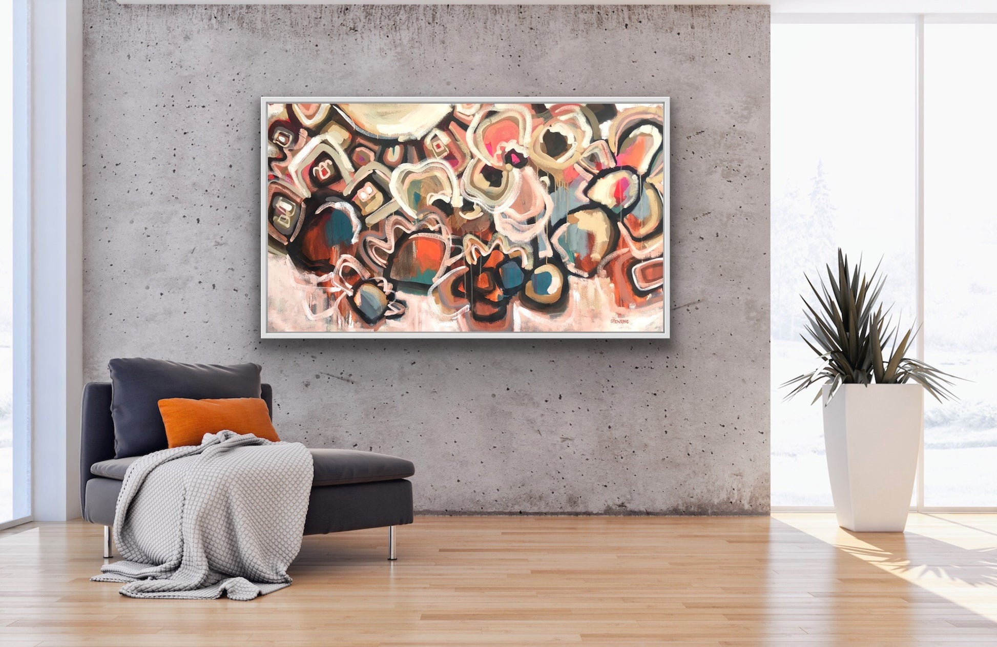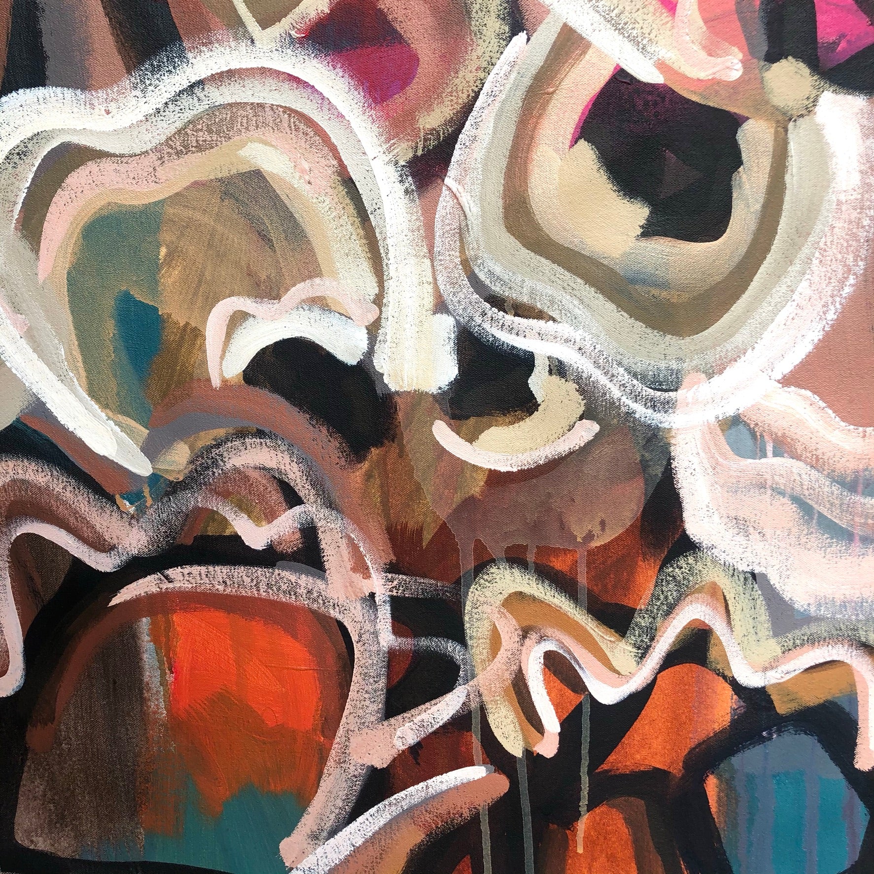 Moroccan Nights packs a big bright punch of bold Moroccan inspired colour! Powerful abstract with bright creams, earthy tones, emerald greens, burnt orange, bright red and pink highlights. This painting has expressive individual brushstrokes that bring it to life!