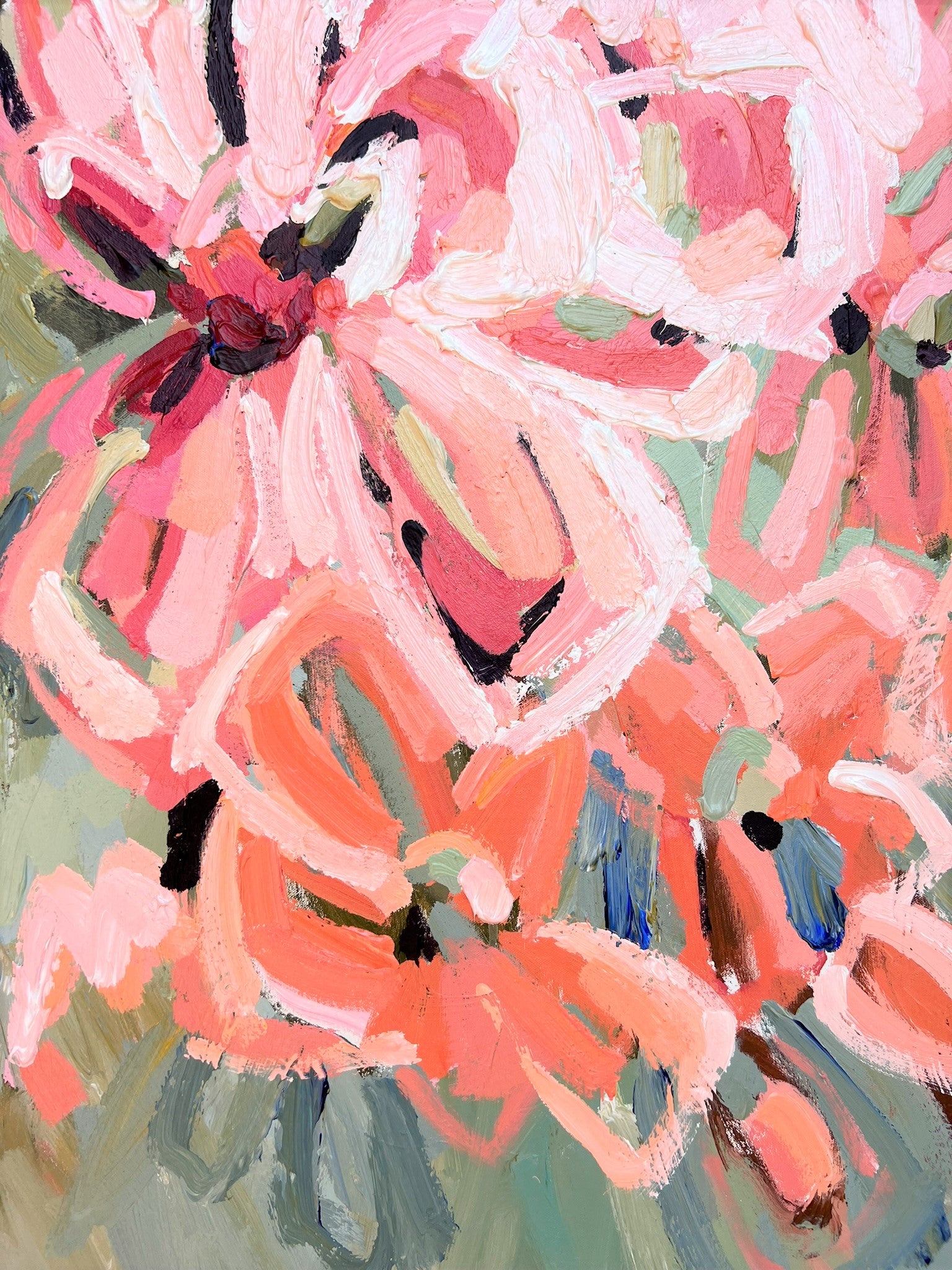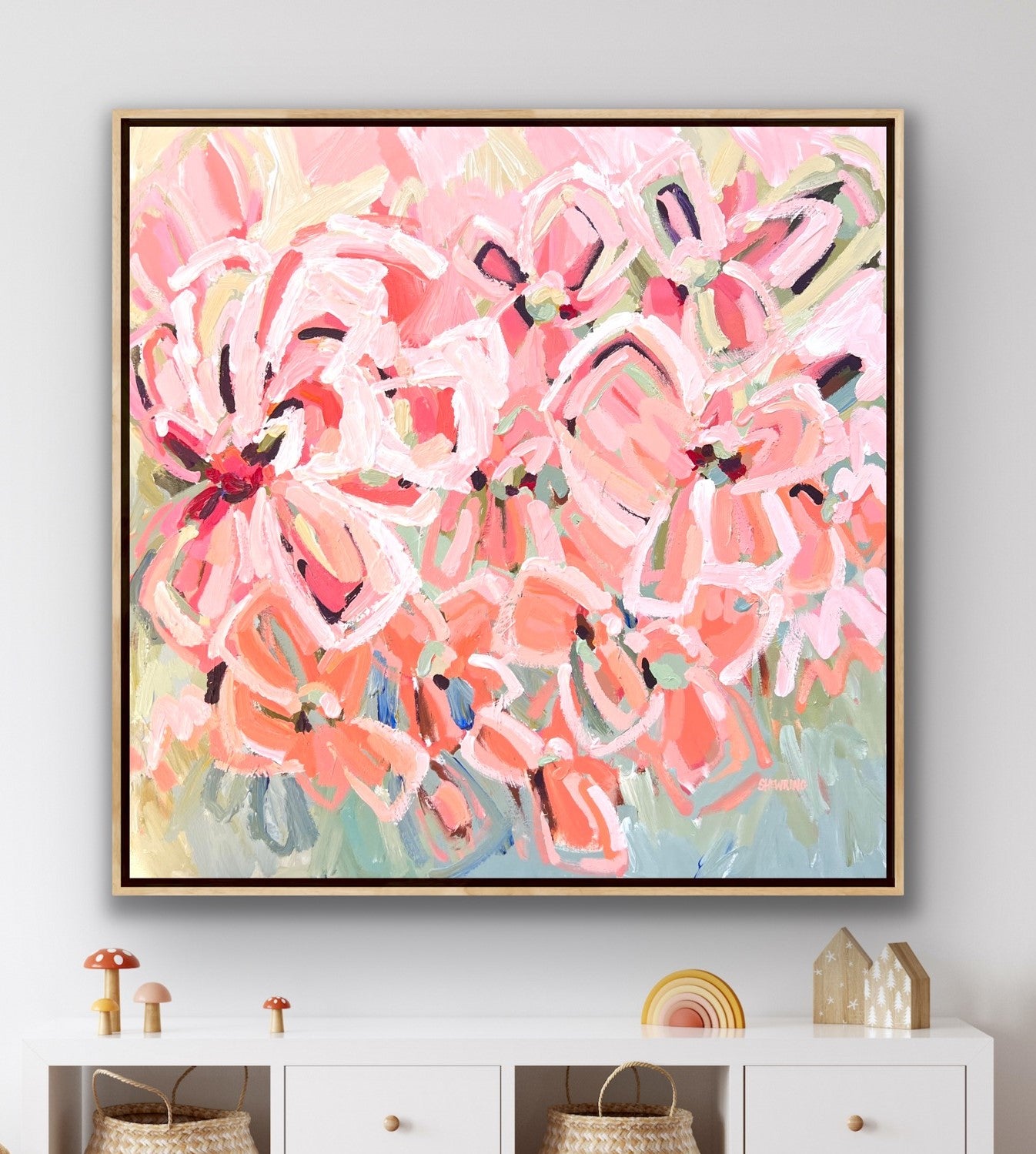 Only In Love With You is a happy, bright and textured original painting inspired by the beautiful colour of fresh flowers basking in the morning sunshine of my local gardens of Melbourne, Australia. The colours are so pretty and vibrant.
