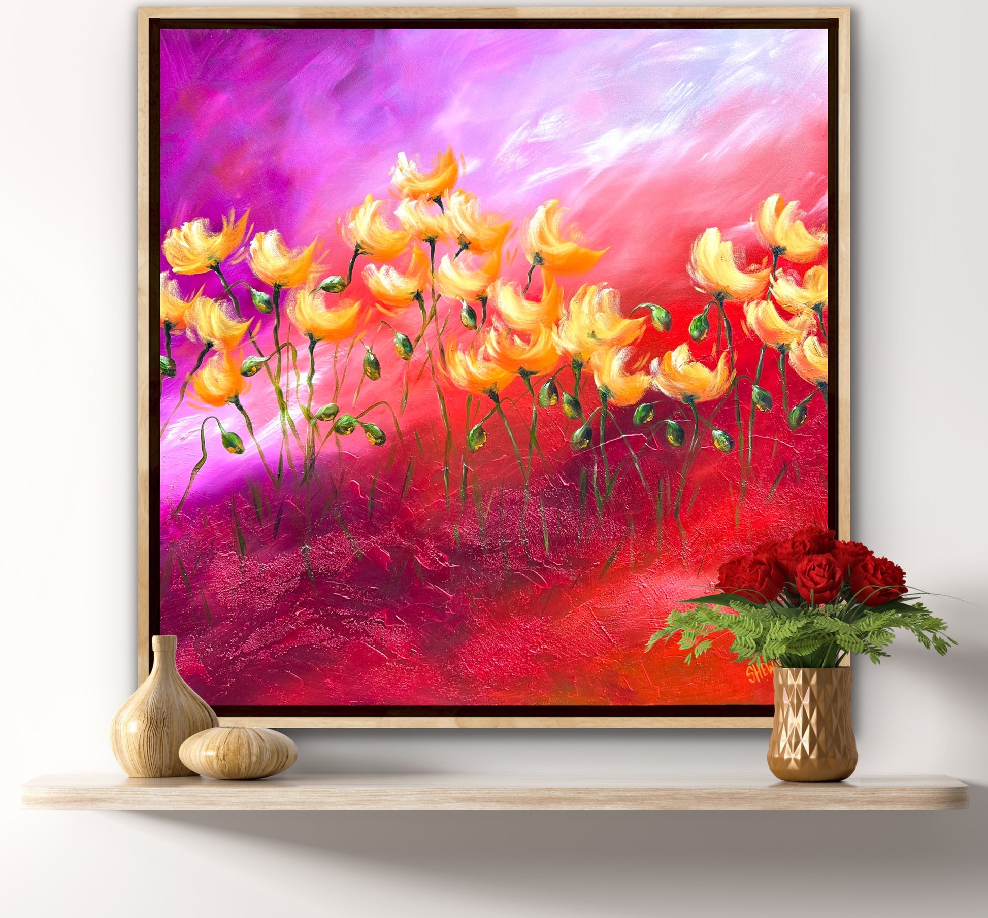 Orange Poppy 76x76cm FRAMED SOLD