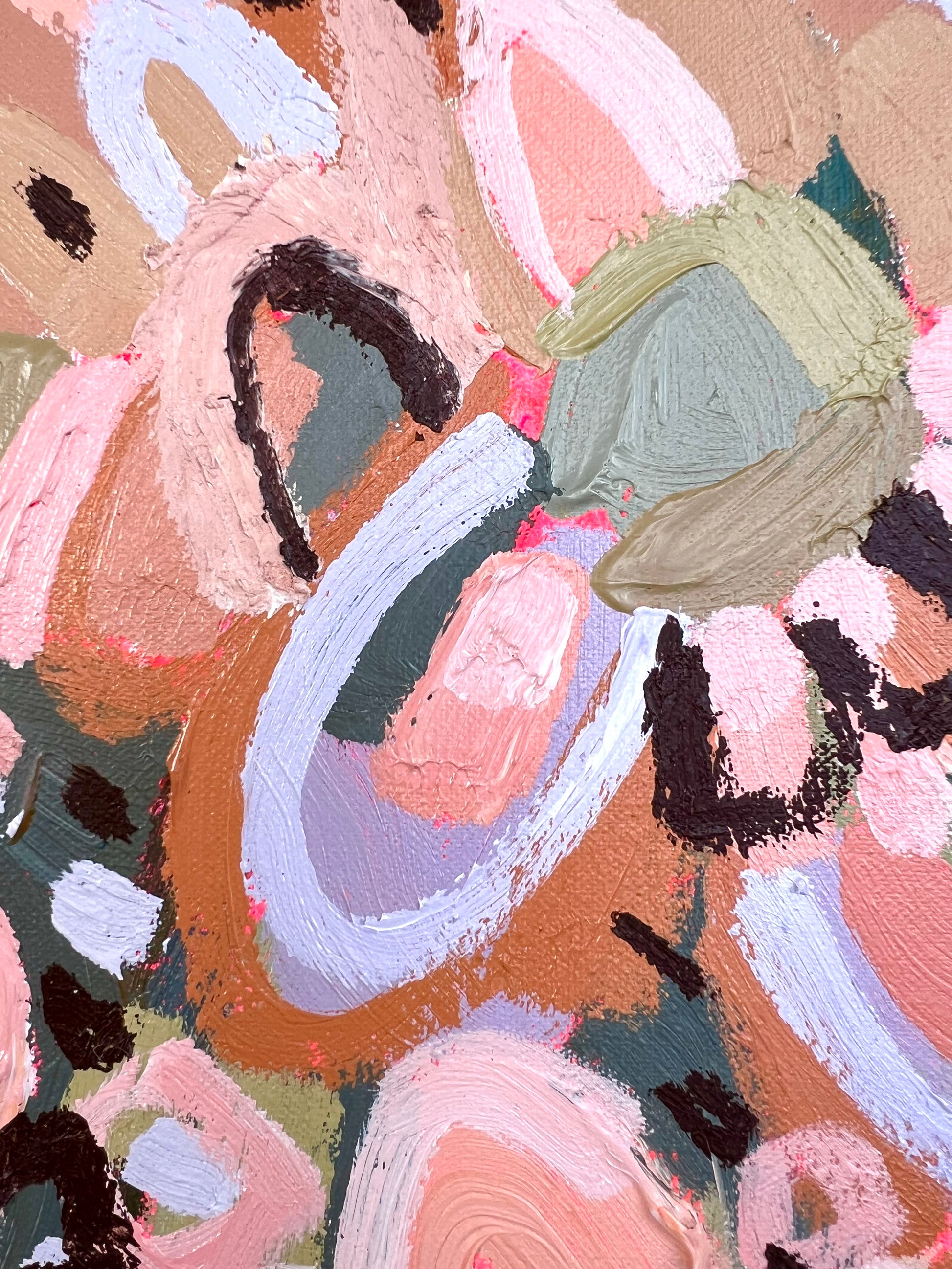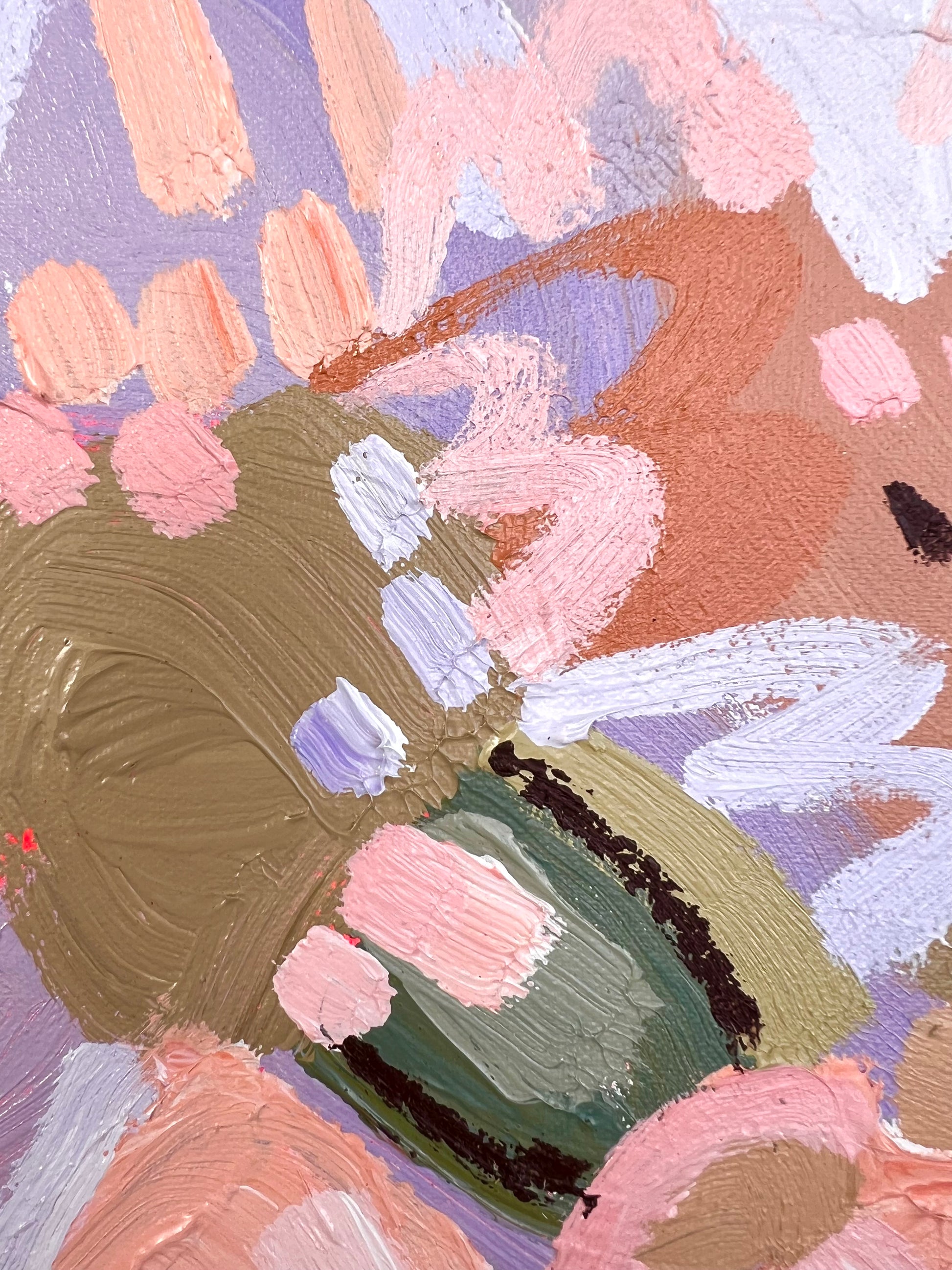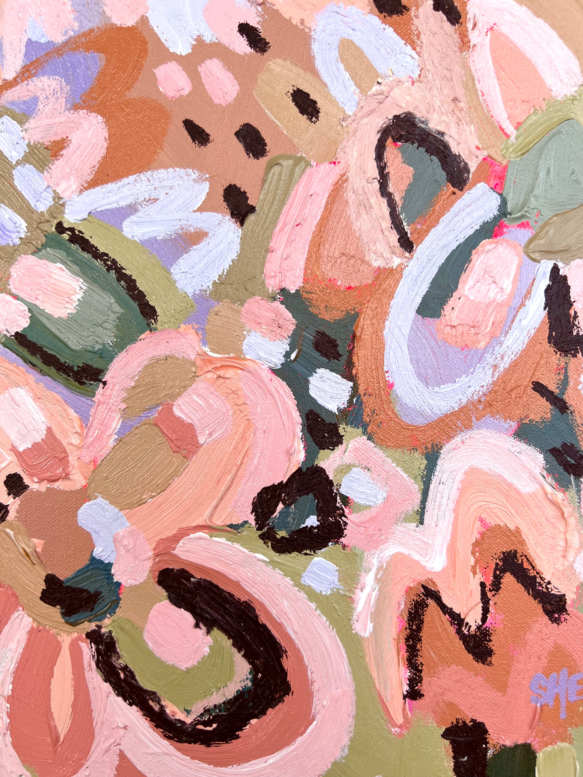 I am obsessed with colour and nature! Outside in the natural environment is where I spend my time sketching the organic forms that surround me. I take them back to my studio where I abstract the beauty and vibrancy of the experience into my paintings. What excites me is creating compositions using a luminous mix of rich colours and texture bringing the outdoors inside feeling happiness from connecting with nature.