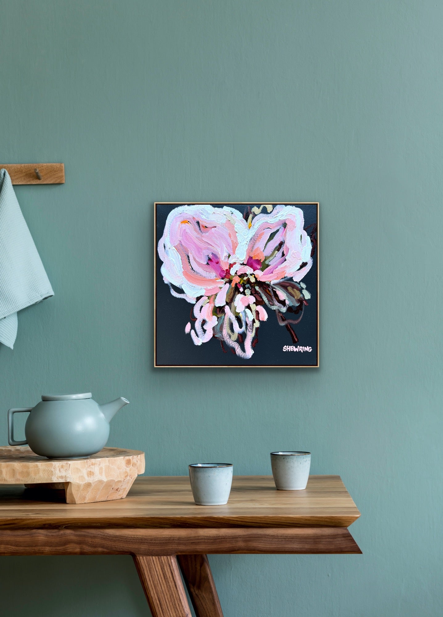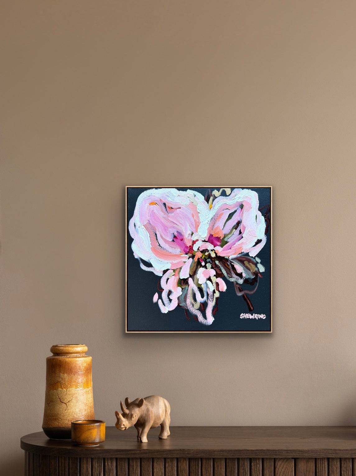 - Painted onto artist professional quality stretched canvas with a natural timber float frame and wire on the back so it is ready to hang.