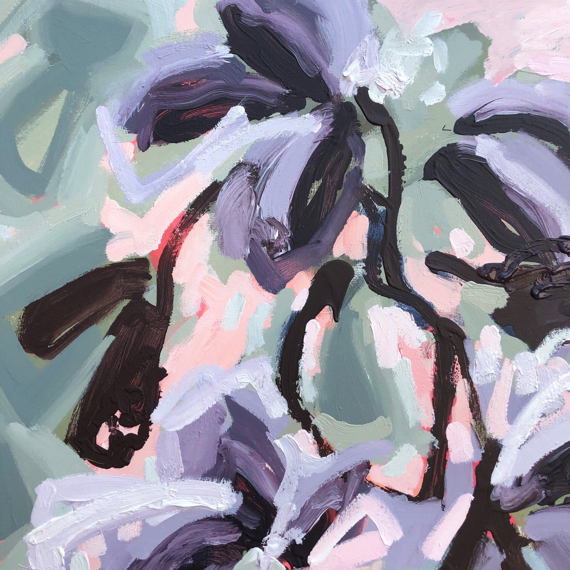 I am obsessed with colour and nature! Outside in the natural environment is where I spend my time sketching the organic forms that surround me. I take them back to my studio where I abstract the beauty and vibrancy of the experience into my paintings. What excites me is creating compositions using a luminous mix of rich colours and texture bringing the outdoors inside feeling happiness from connecting with nature.