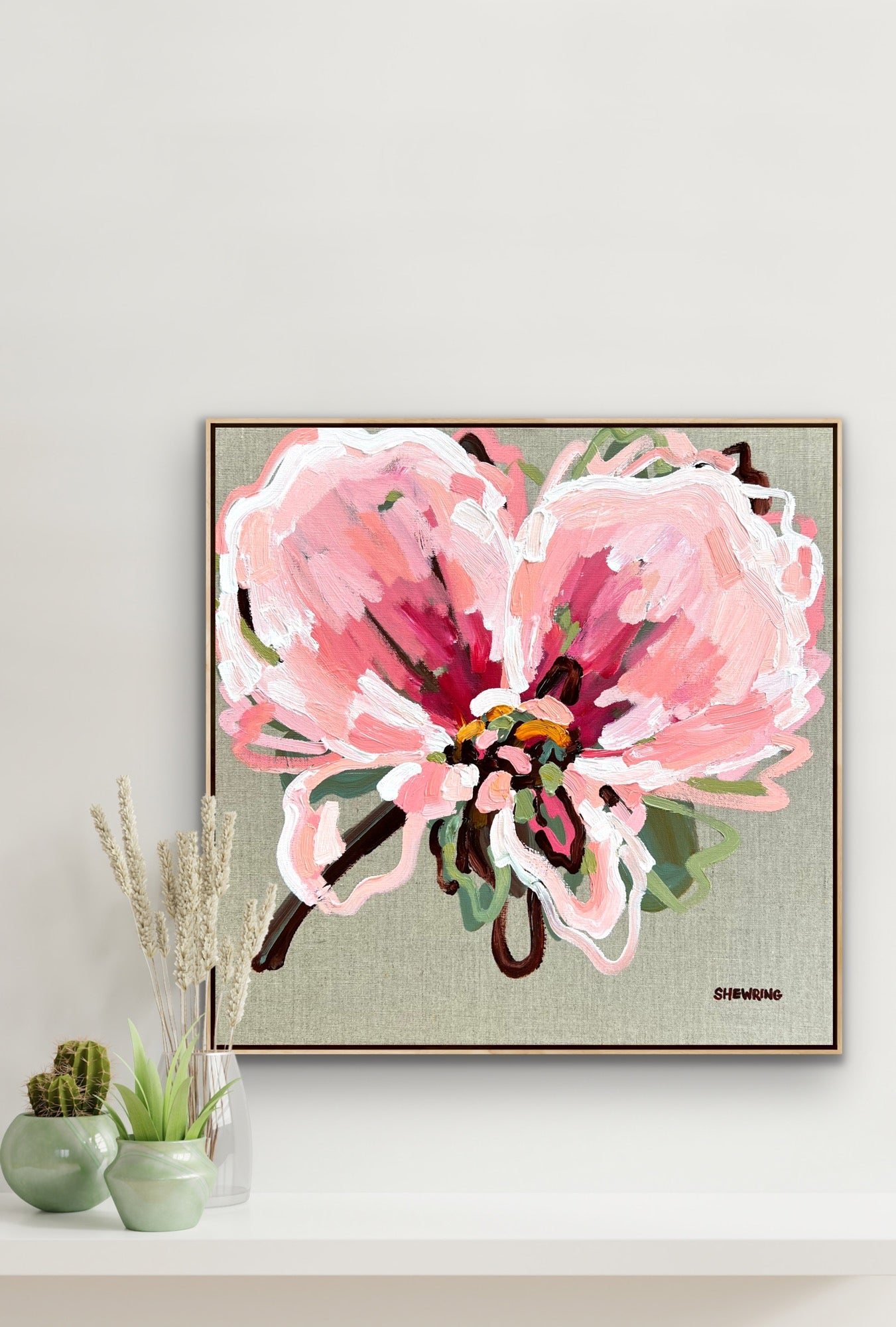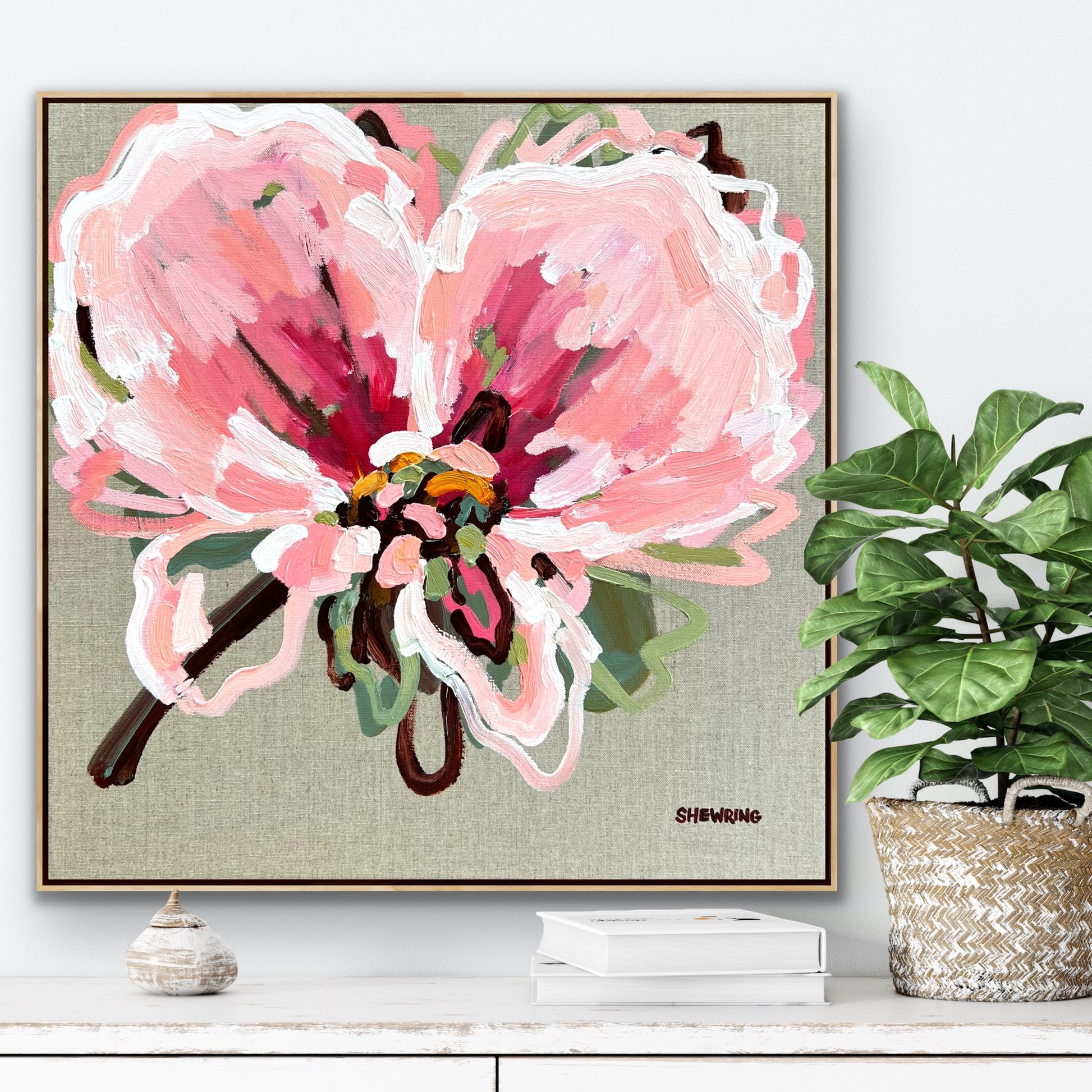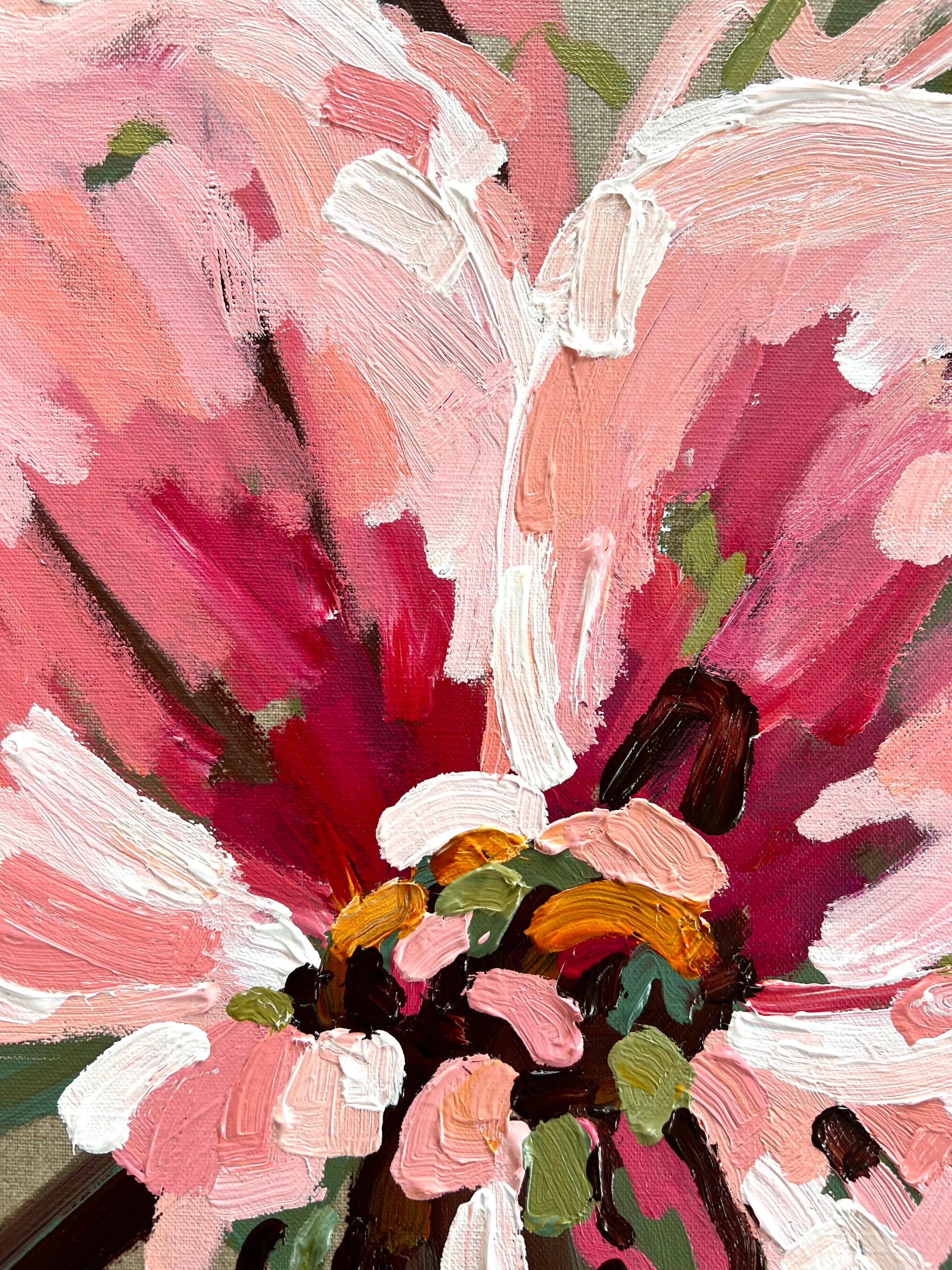 Pink On Linen is a beautifully textured flower abstract on linen canvas. This painting has expressive individual brushstrokes that bring it to life!