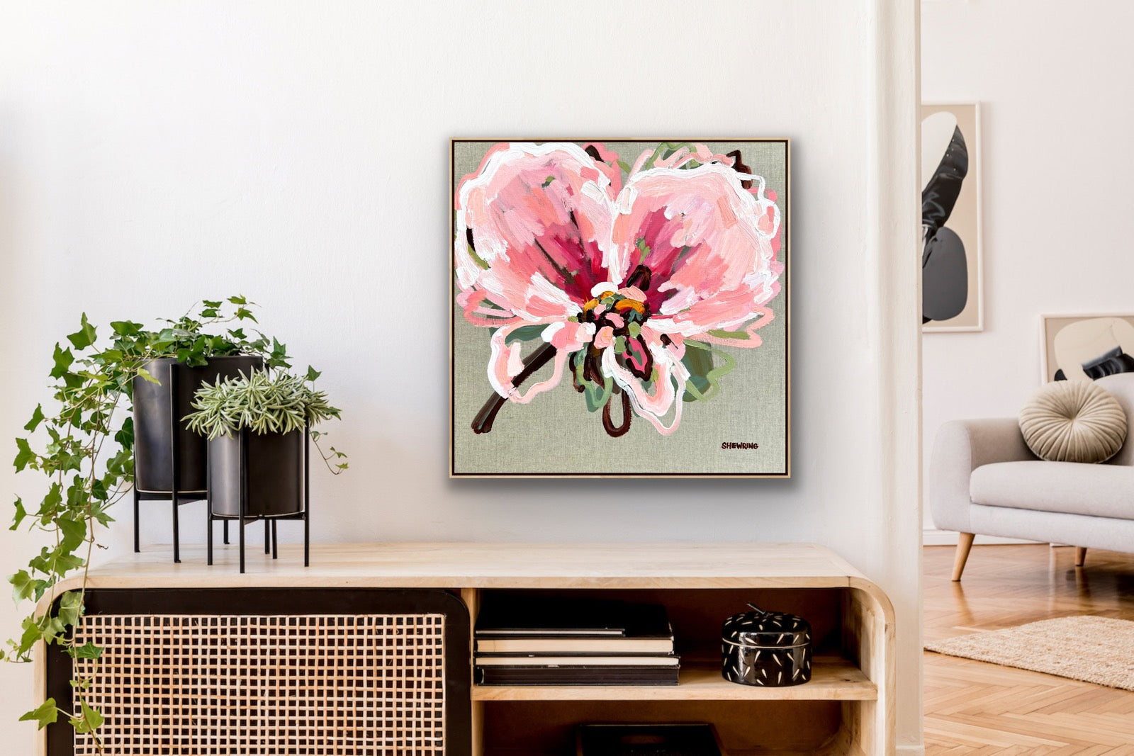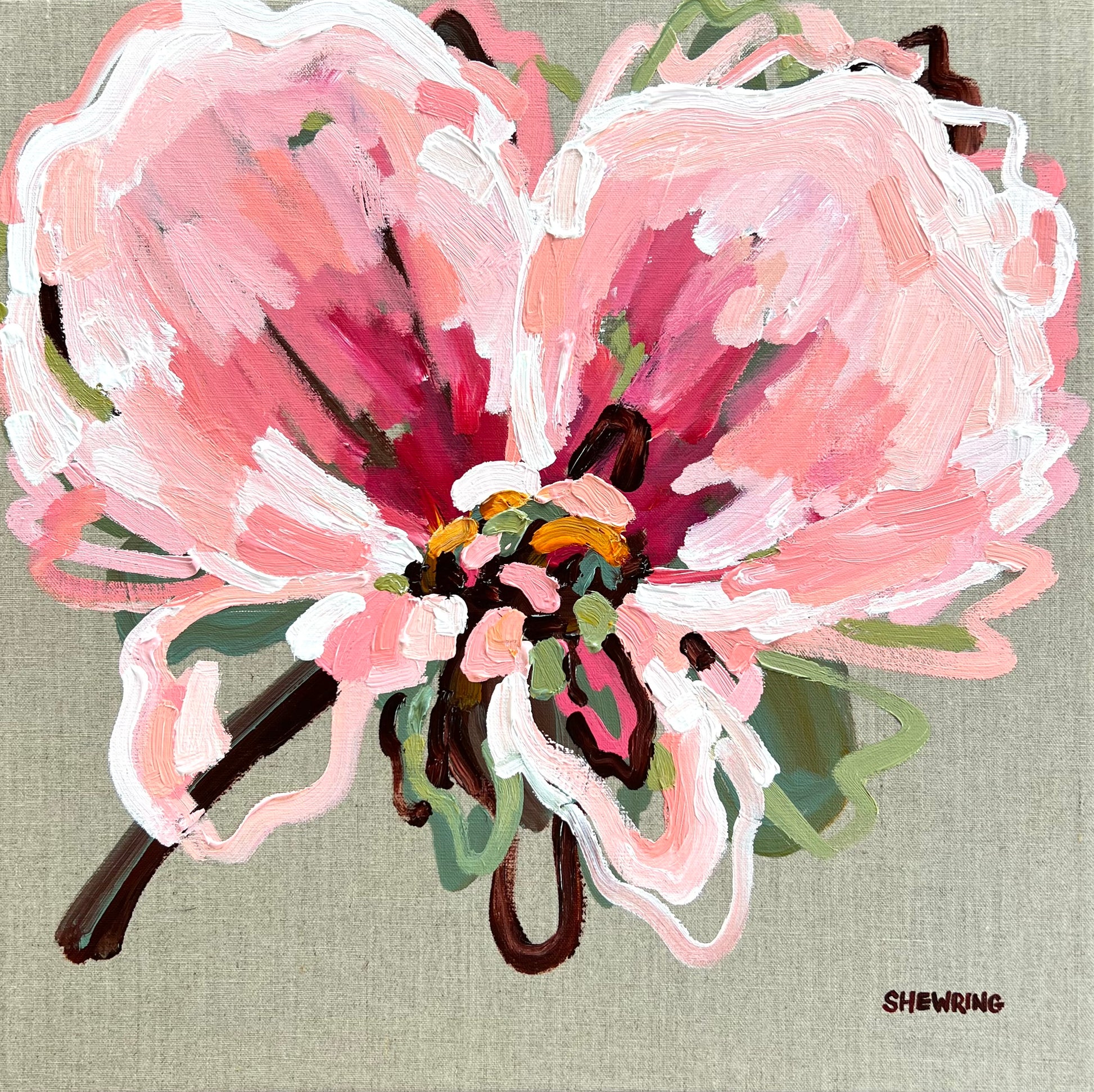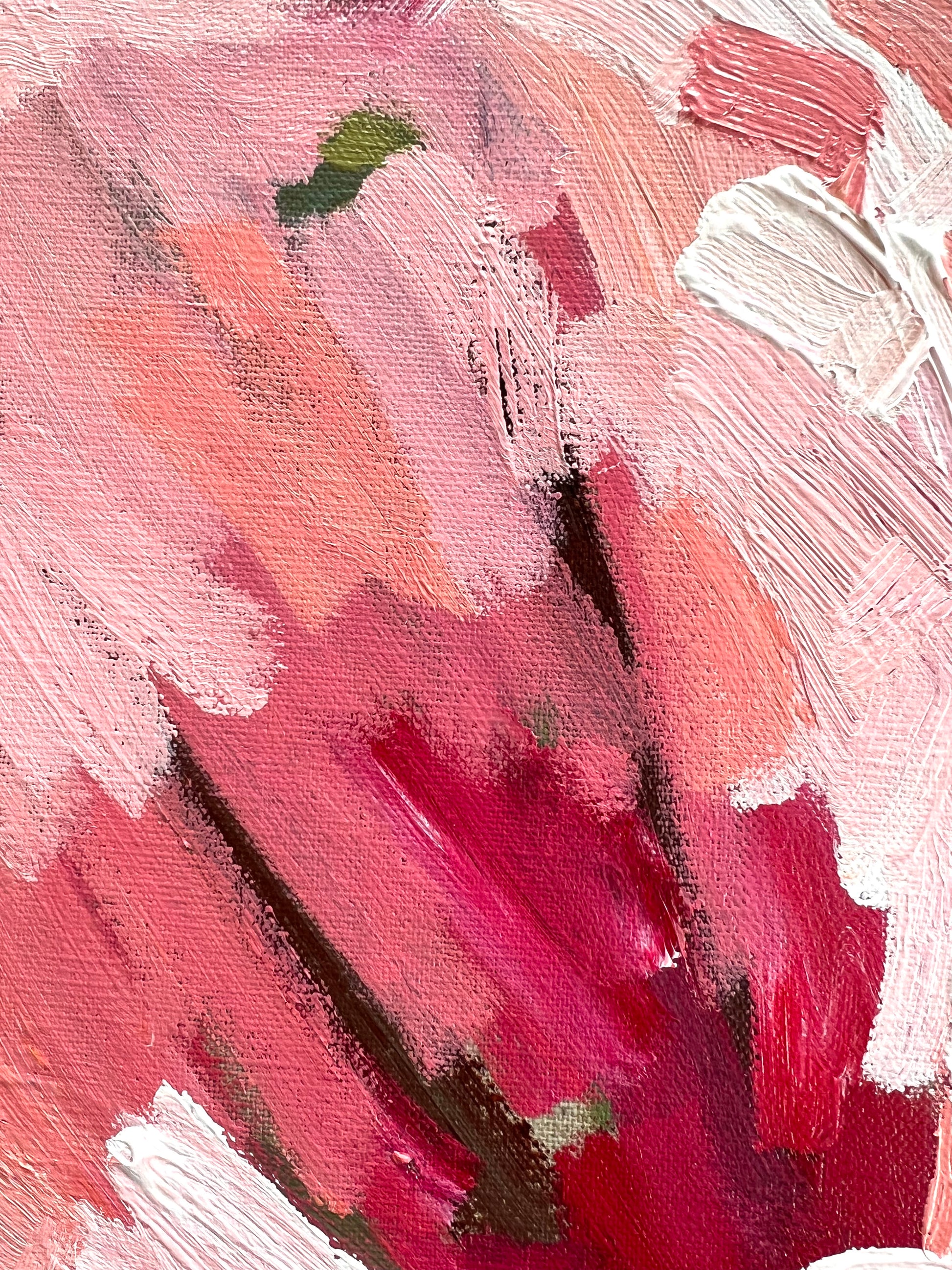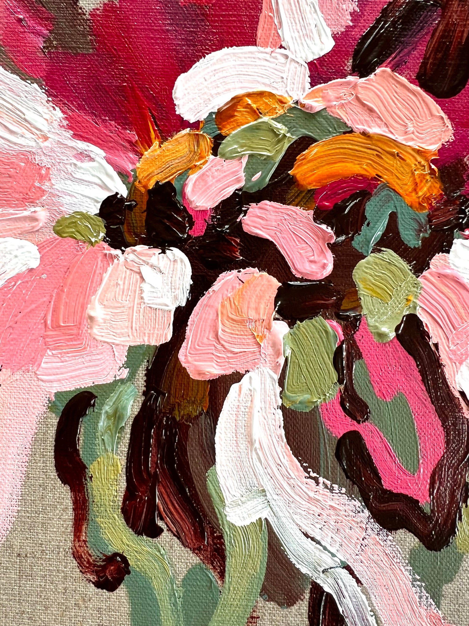 Pink On Linen is a beautifully textured flower abstract on linen canvas. This painting has expressive individual brushstrokes that bring it to life!