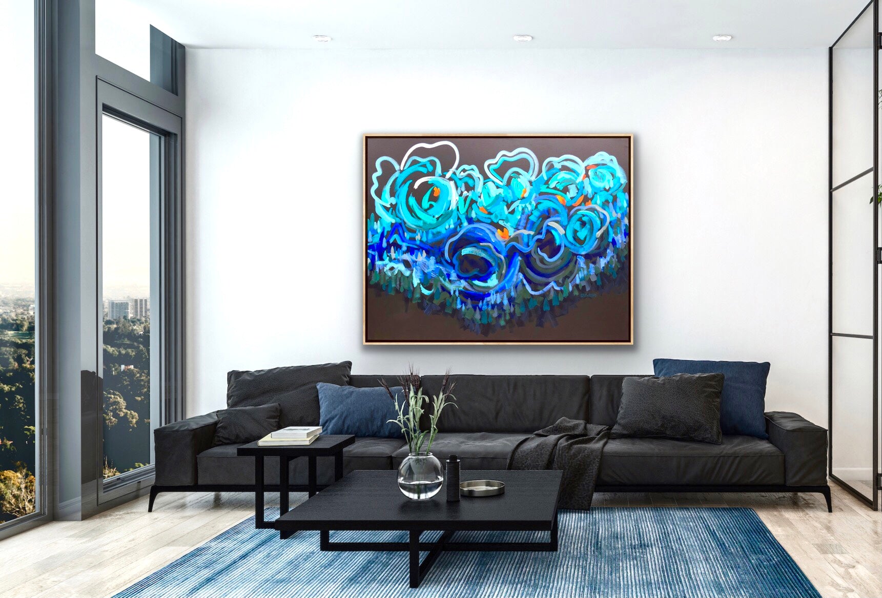 This large colourful and dynamic artwork will definitely make a statement on your wall and bring a smile to your face every morning.