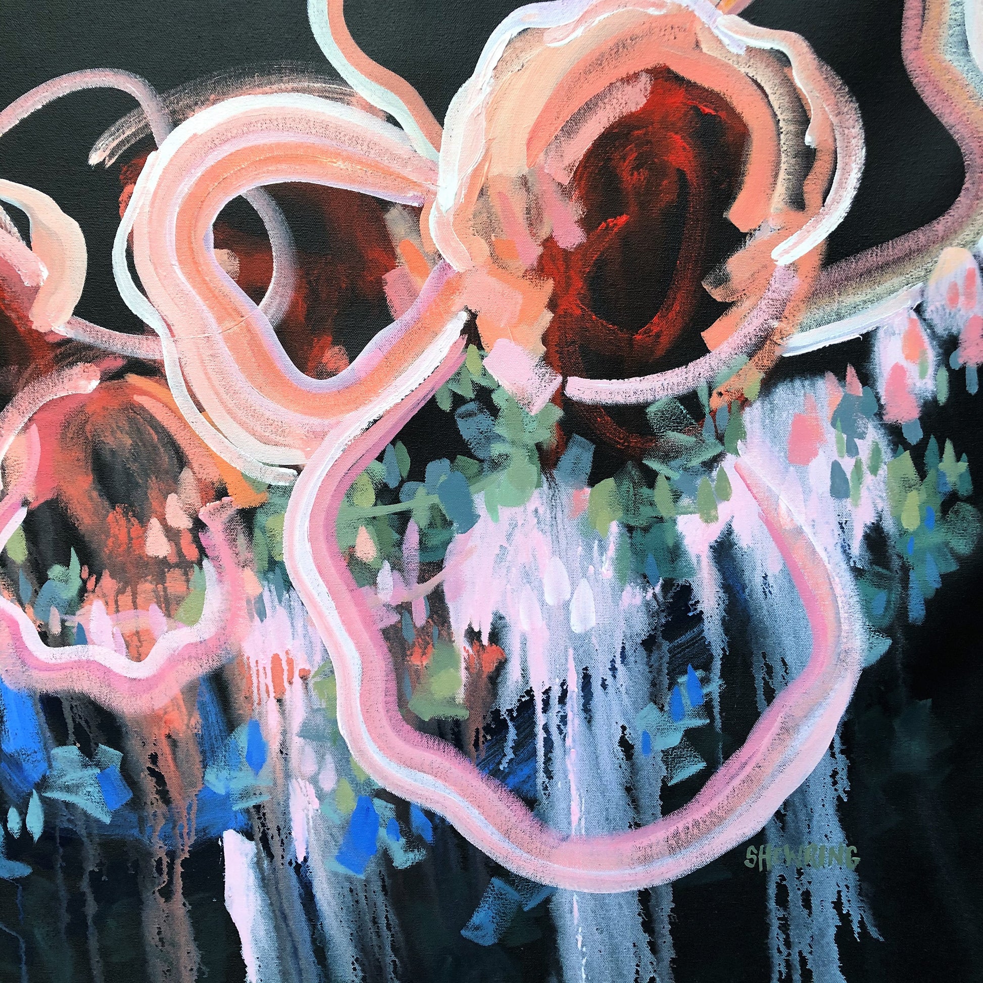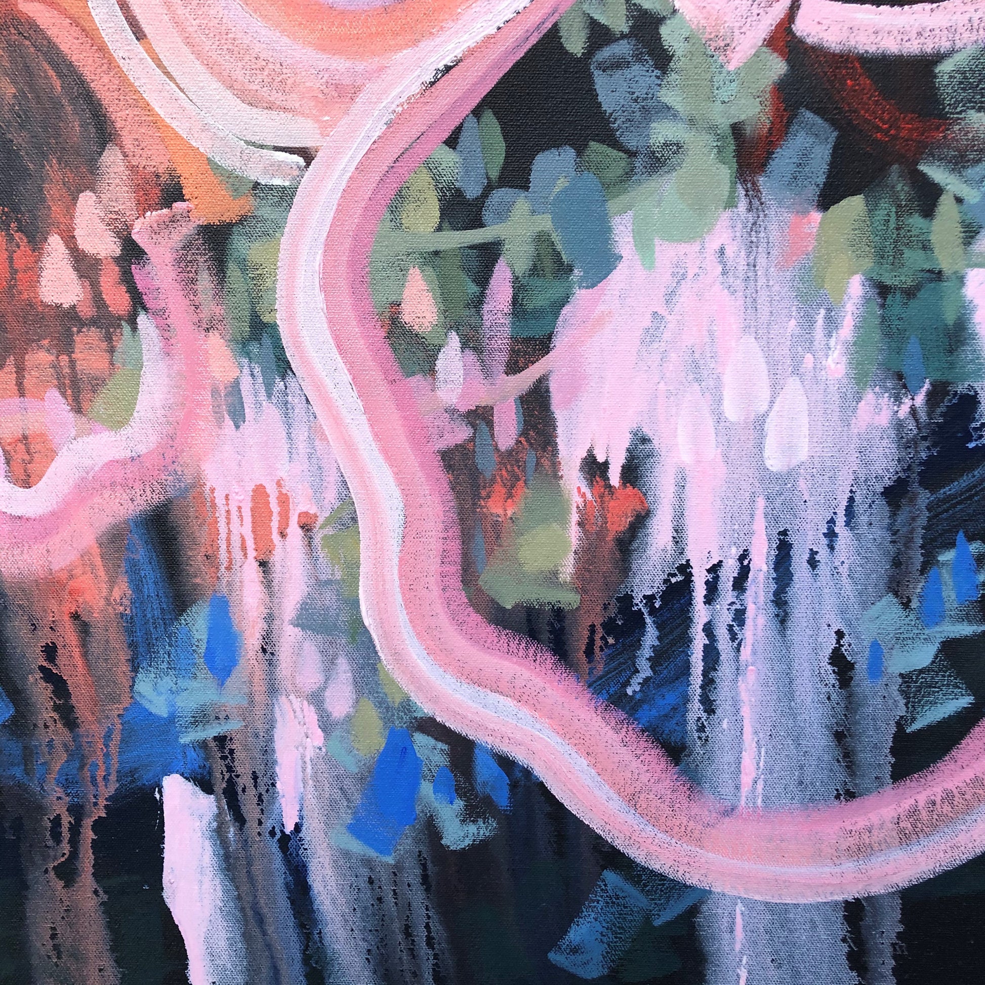 I am obsessed with colour and nature! Outside in the natural environment is where I spend my time sketching the organic forms that surround me. I take them back to my studio where I abstract the beauty and vibrancy of the experience into my paintings. What excites me is creating compositions using a luminous mix of rich colours and texture bringing the outdoors inside feeling happiness from connecting with nature.