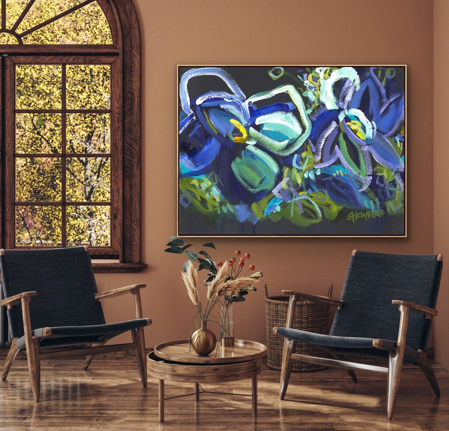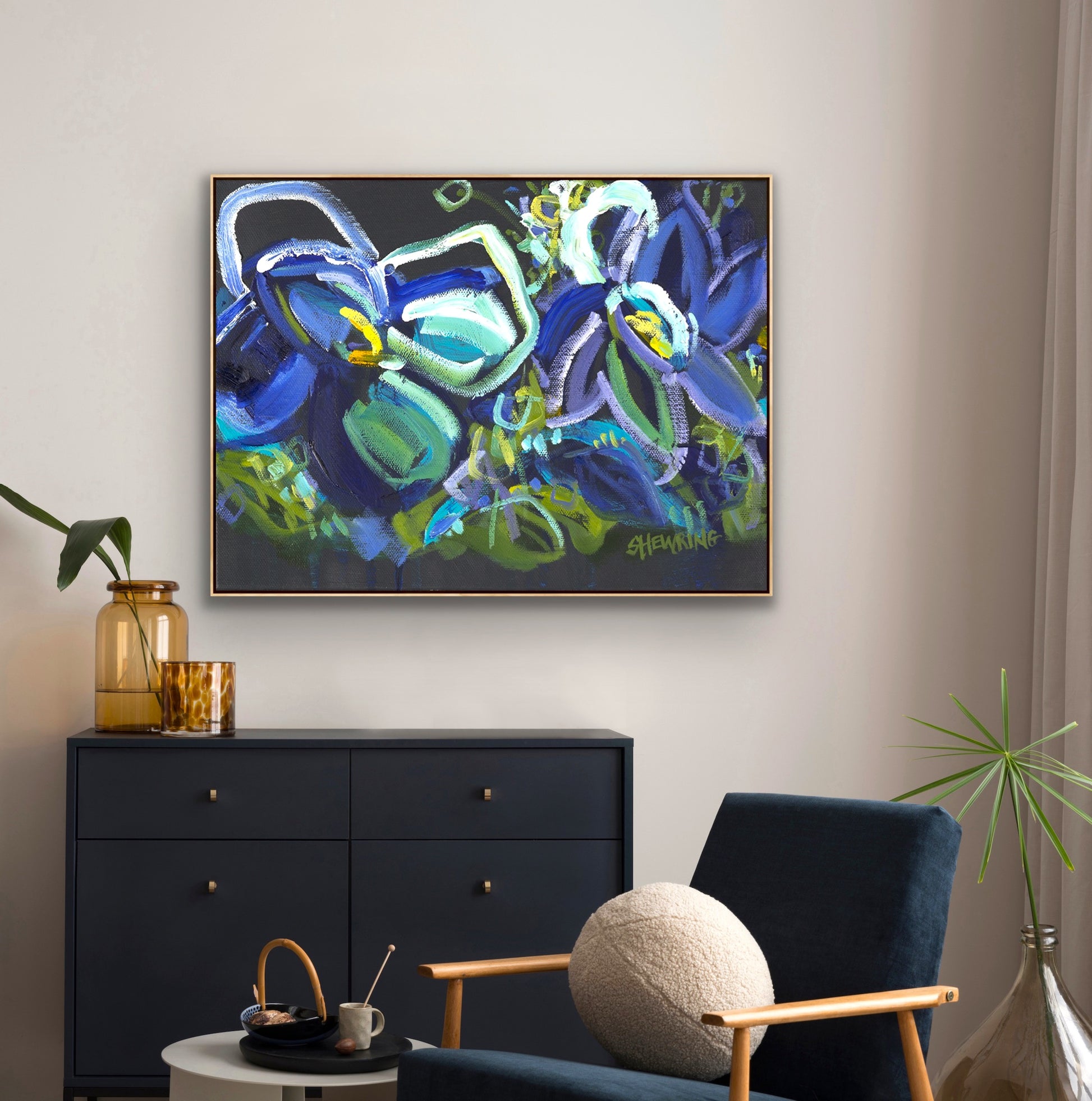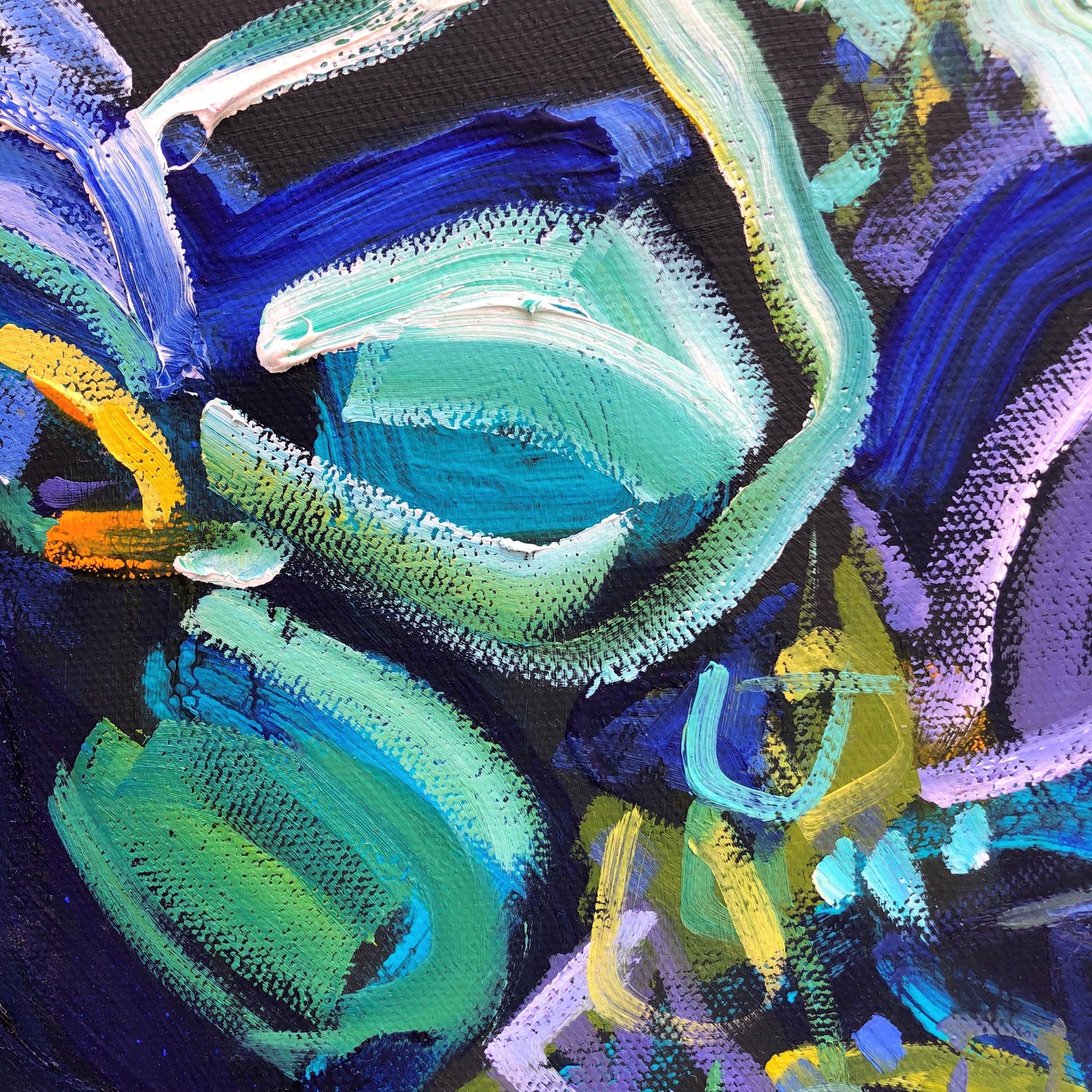 I am obsessed with colour and nature! Outside in the natural environment is where I spend my time sketching the organic forms that surround me. I take them back to my studio where I abstract the beauty and vibrancy of the experience into my paintings. What excites me is creating compositions using a luminous mix of rich colours and texture bringing the outdoors inside feeling happiness from connecting with nature.