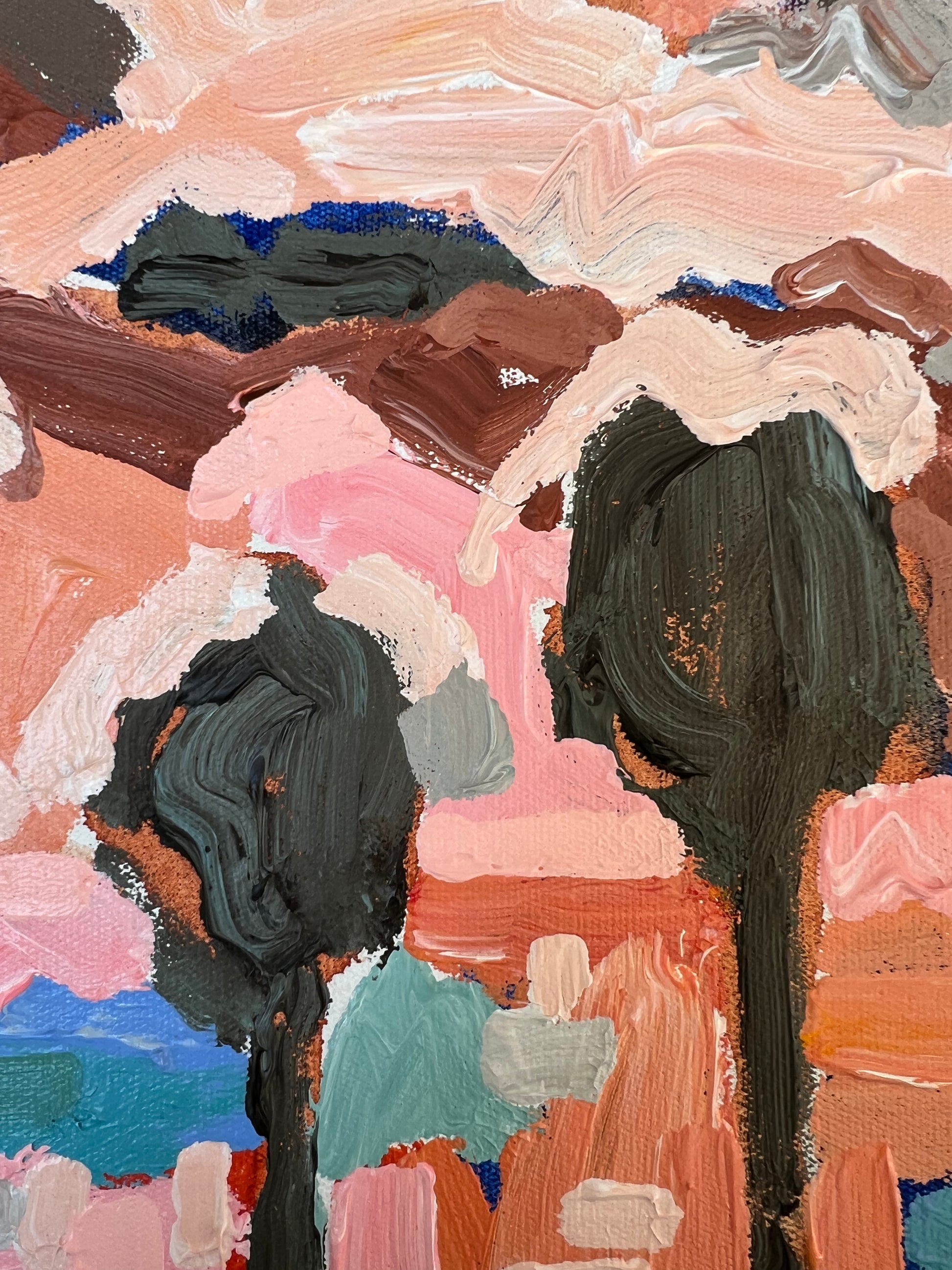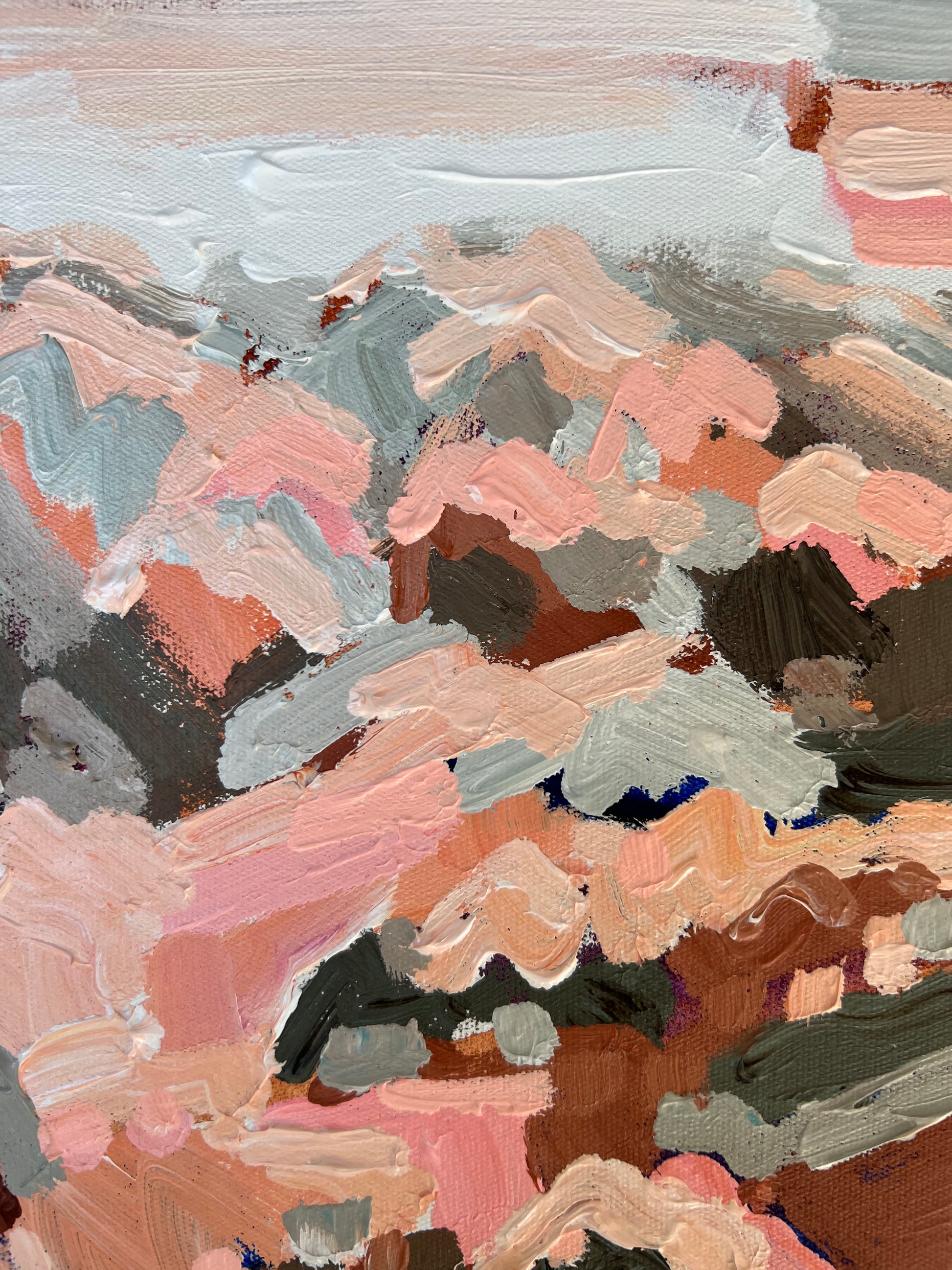 I am obsessed with colour and nature! Outside in the natural environment is where I spend my time sketching the organic forms that surround me. I take them back to my studio where I abstract the beauty and vibrancy of the experience into my paintings. What excites me is creating compositions using a luminous mix of rich colours and texture bringing the outdoors inside feeling happiness from connecting with nature.