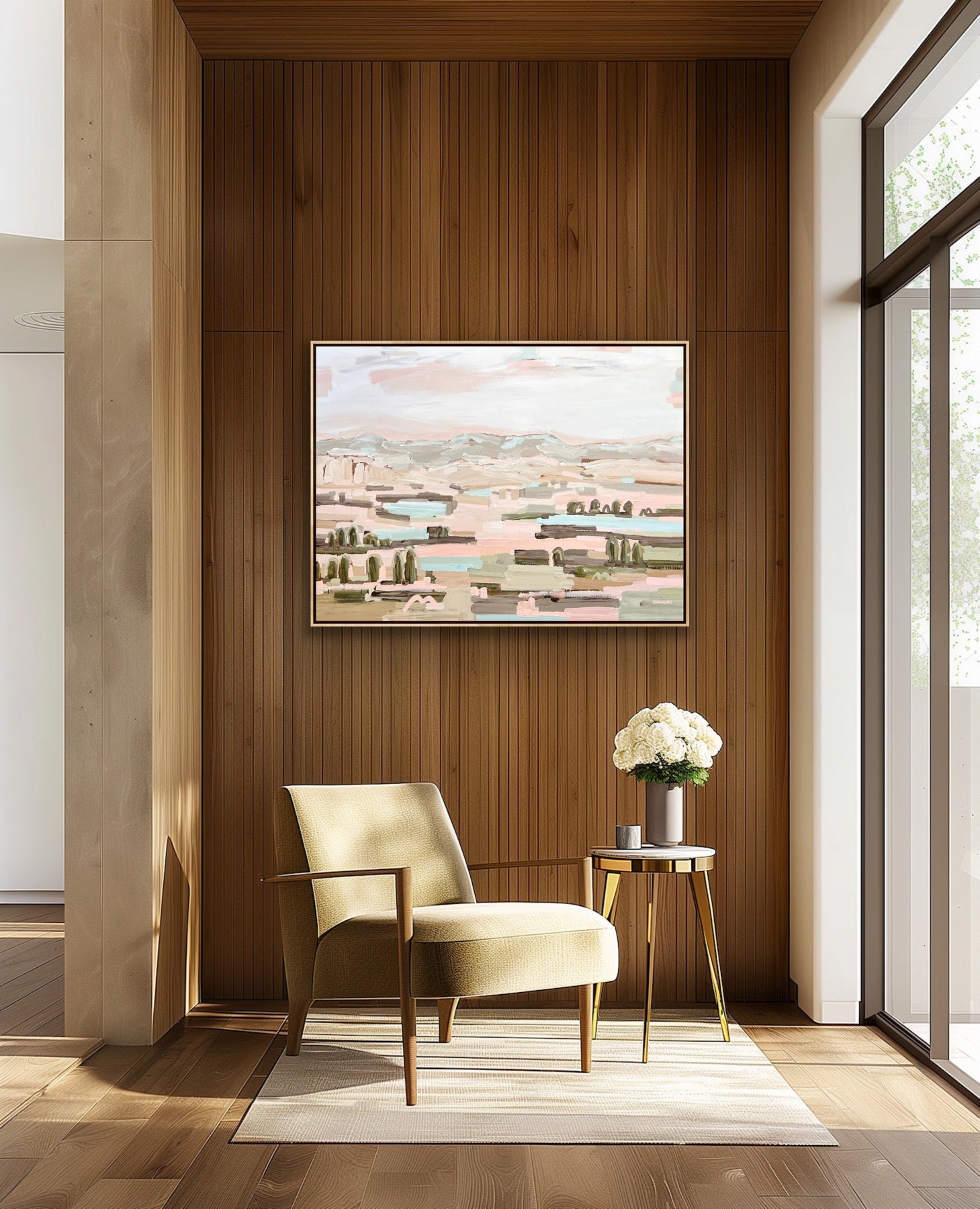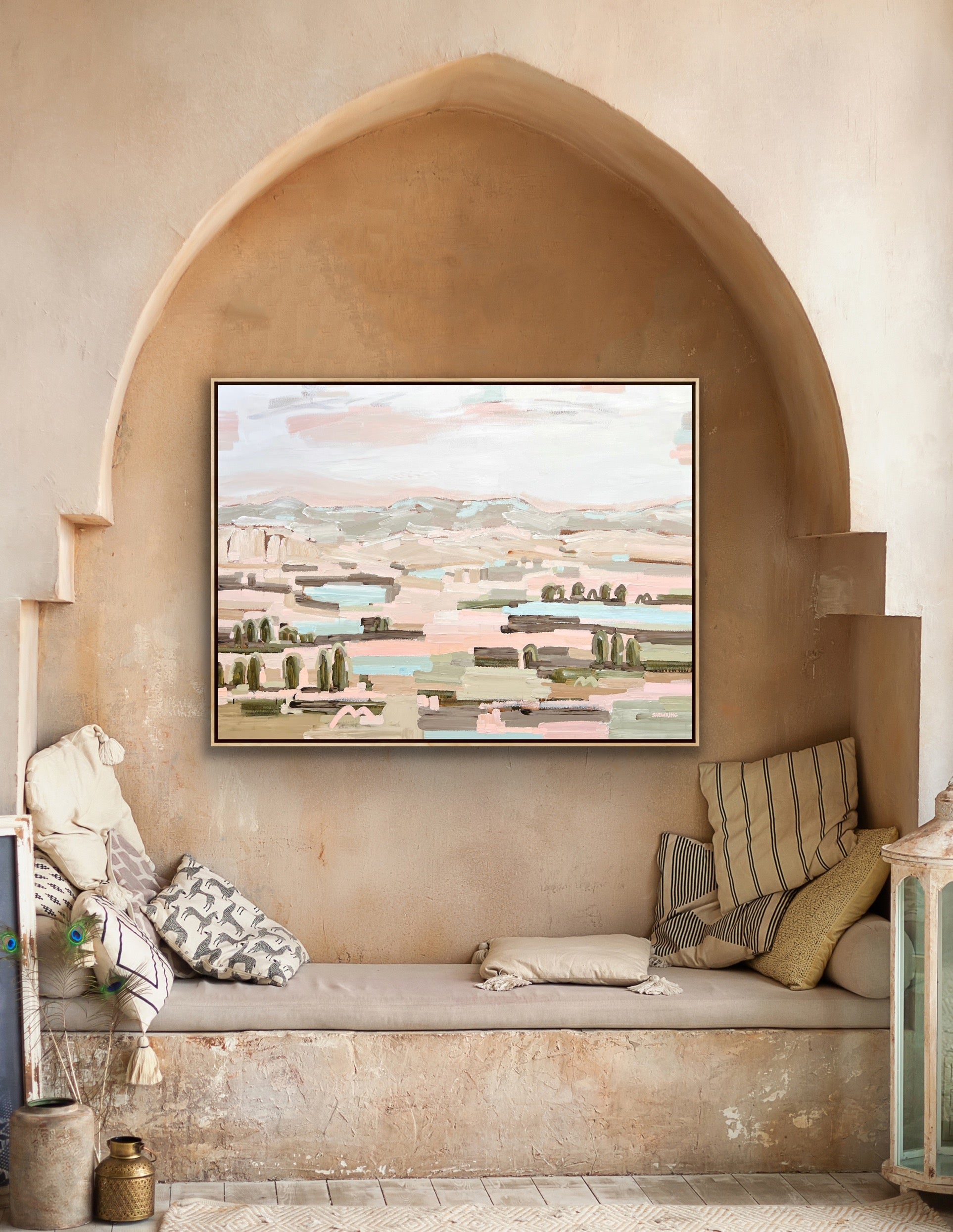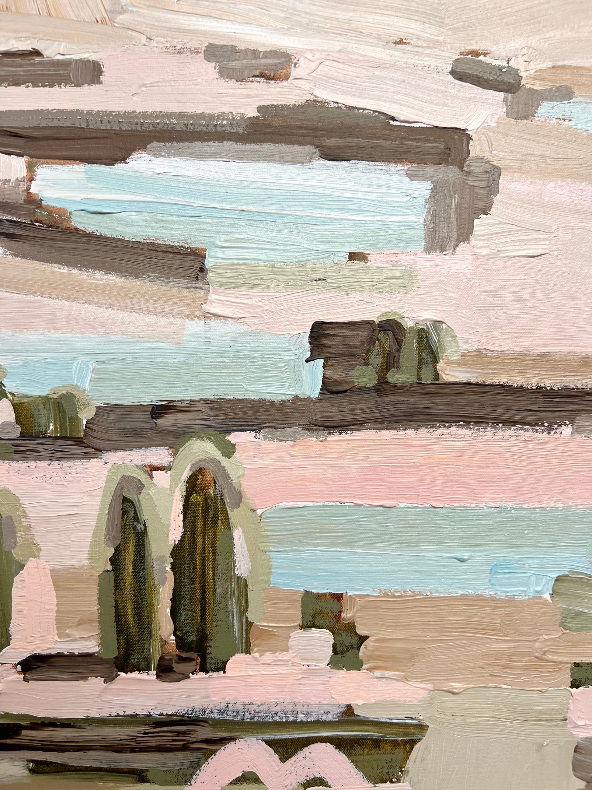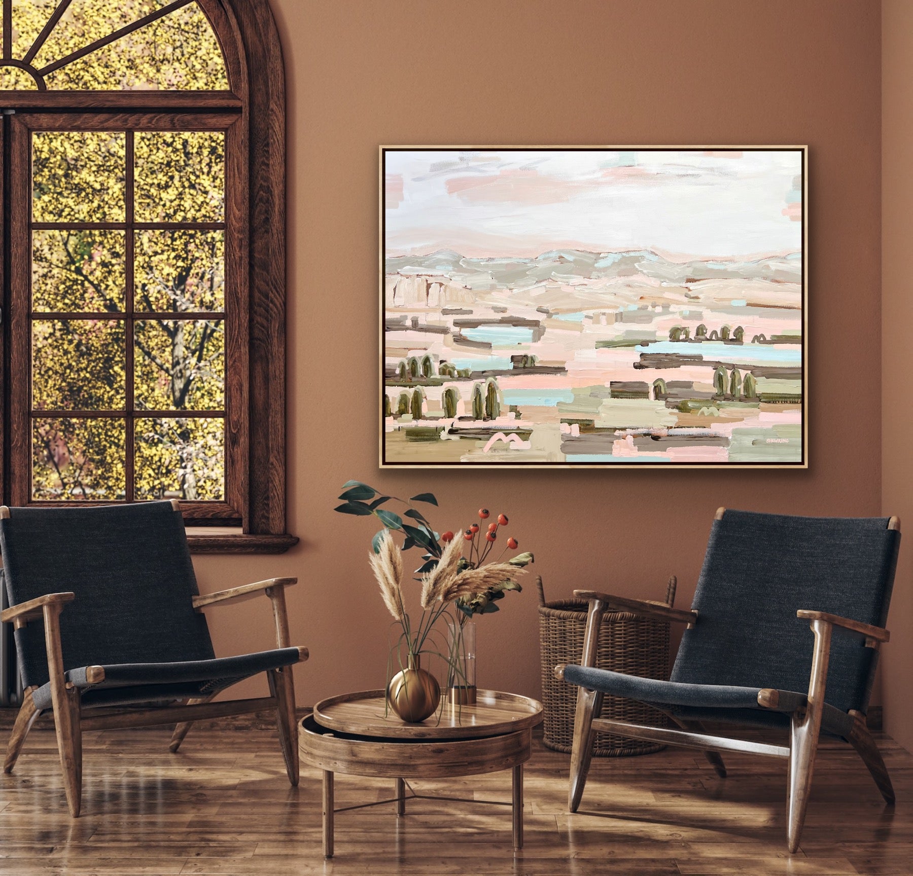 Capturing the warmth of the day and the peaceful feeling of immersing yourself into the countryside this artwork has been painted with expressive brushstrokes that bring it to life!