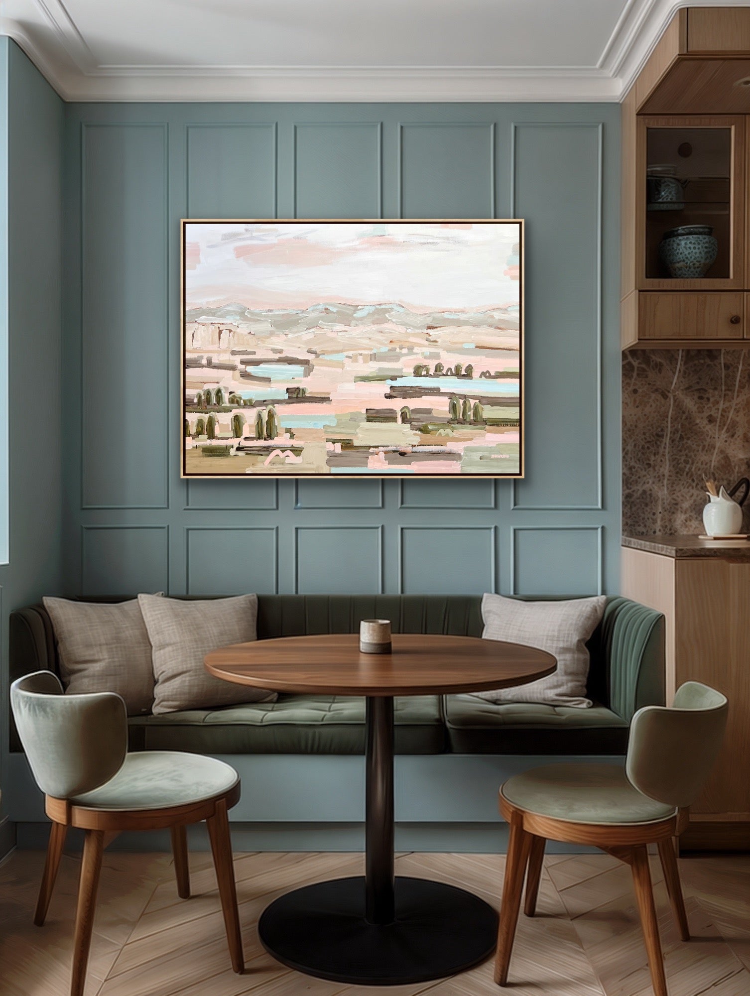 Jen produces stunning on trend paintings and has paintings in the corporate market and in private collections in Australia and overseas. Eight of Jen's artworks were chosen and displayed in 4 homes on the hit TV series 'THE BLOCK' and she was labelled as one of the top 10 Australian Artists To Watch by two major galleries. Her artwork was published in Grand Designs Magazine.