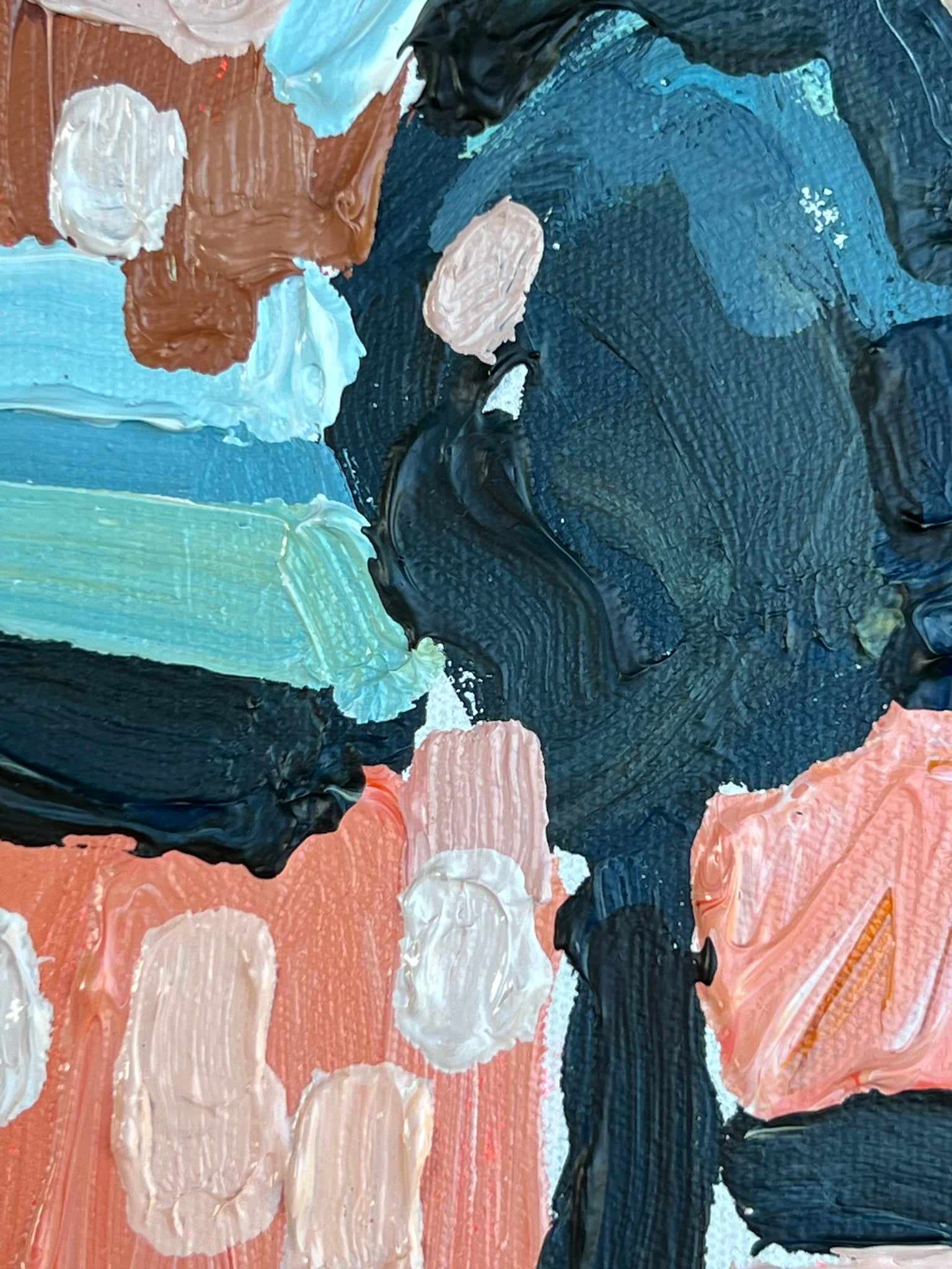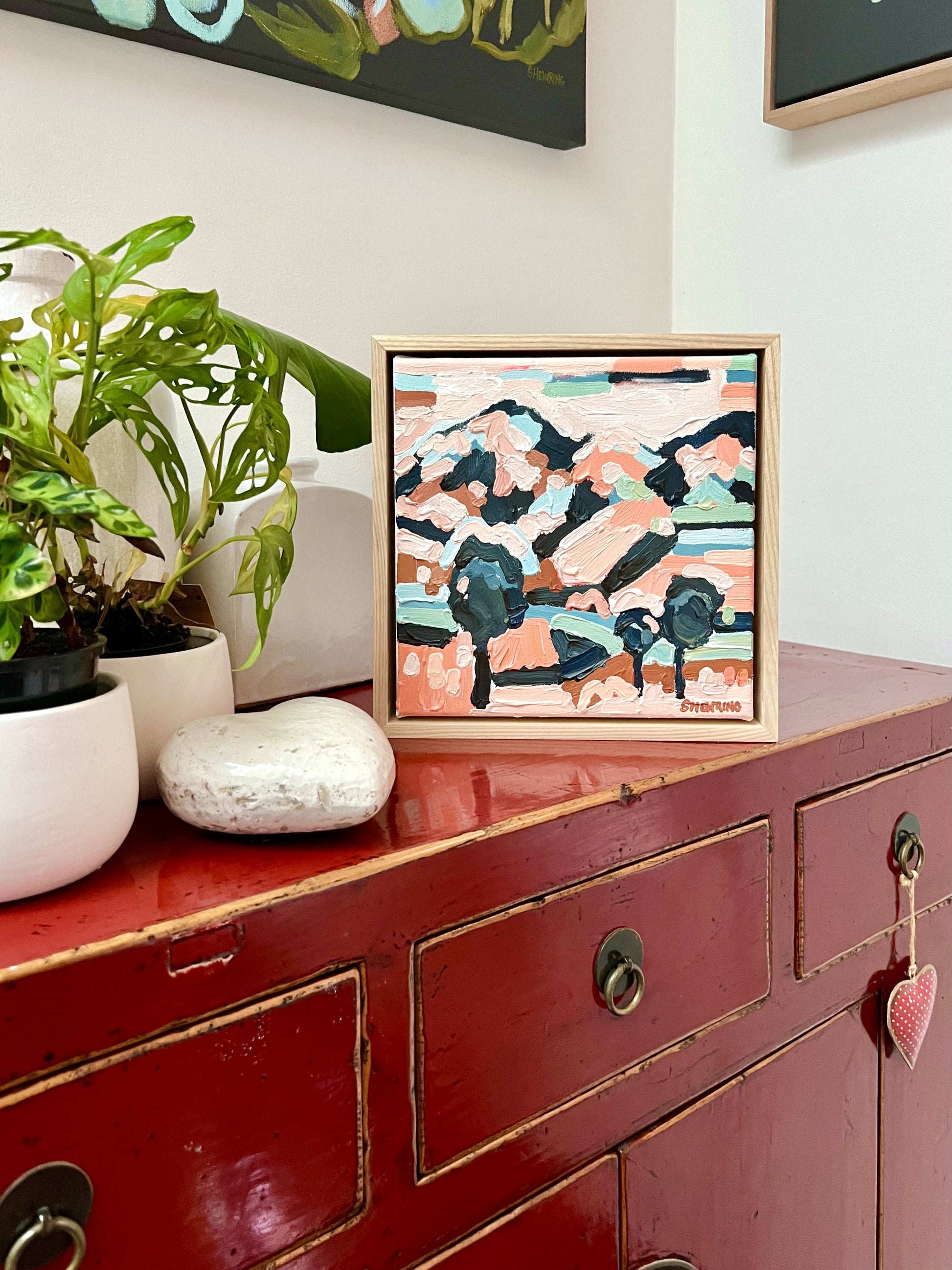 I am obsessed with colour and nature! Outside in the natural environment is where I spend my time sketching the organic forms that surround me. I take them back to my studio where I abstract the beauty and vibrancy of the experience into my paintings. What excites me is creating compositions using a luminous mix of rich colours and texture bringing the outdoors inside feeling happiness from connecting with nature.