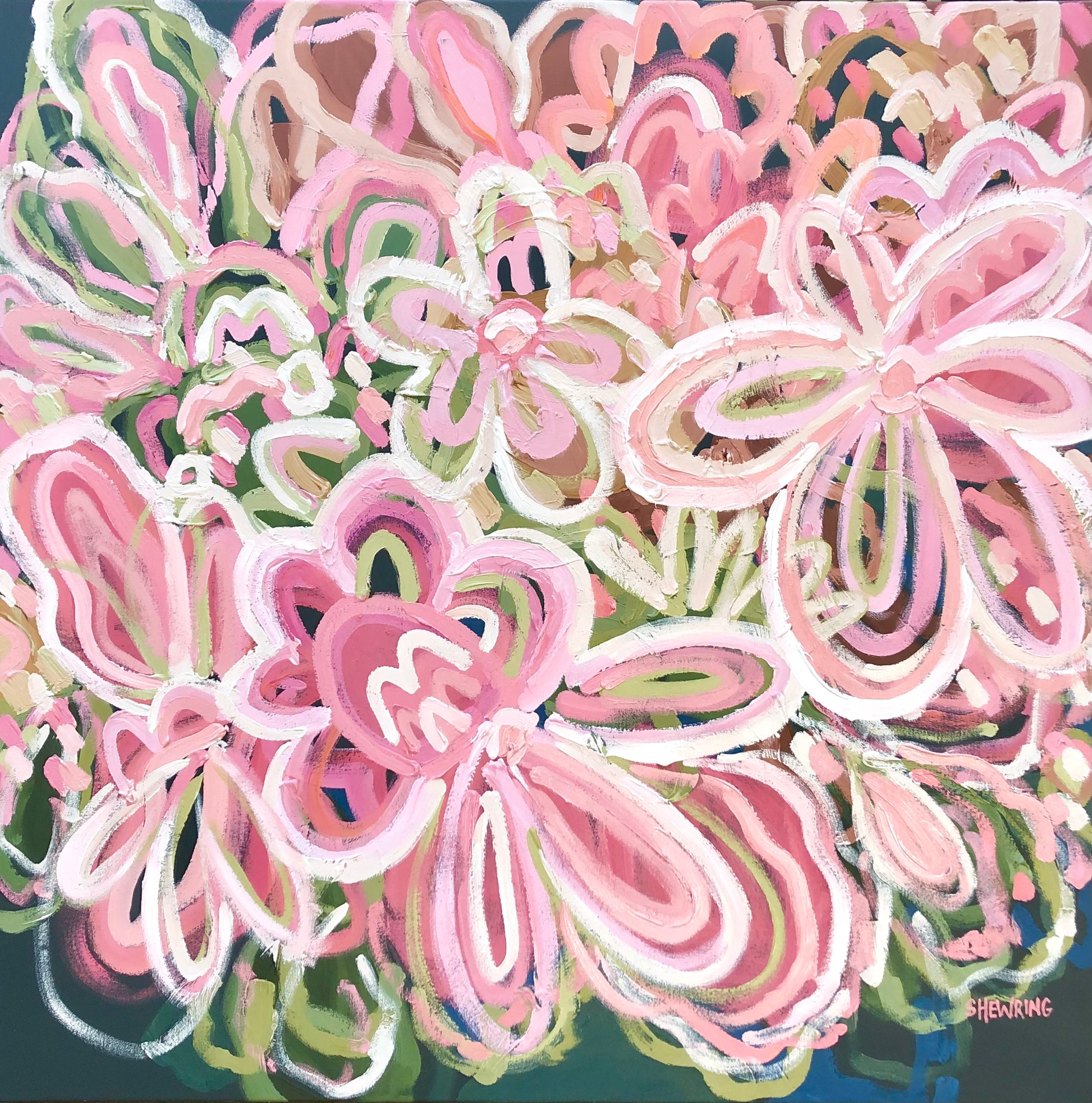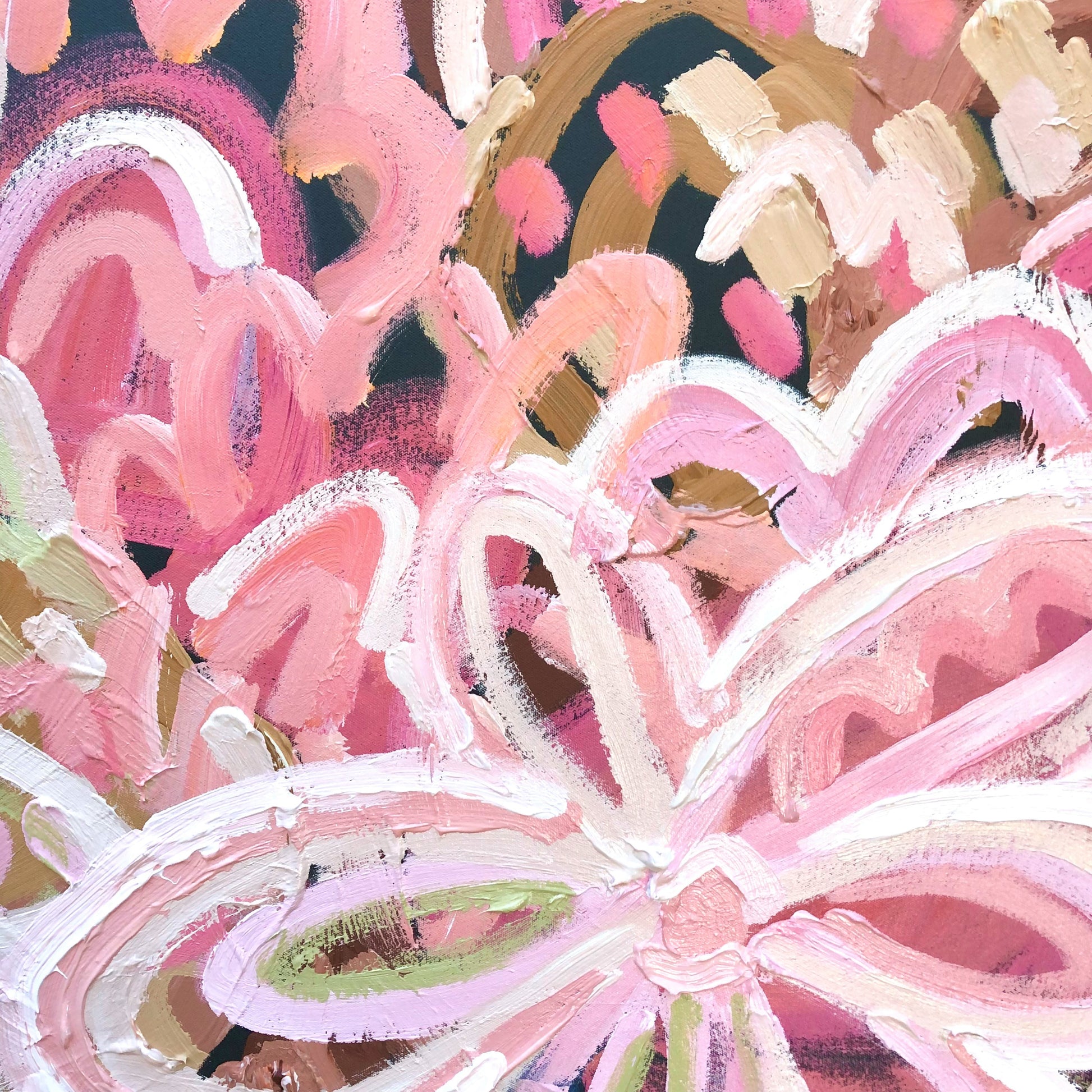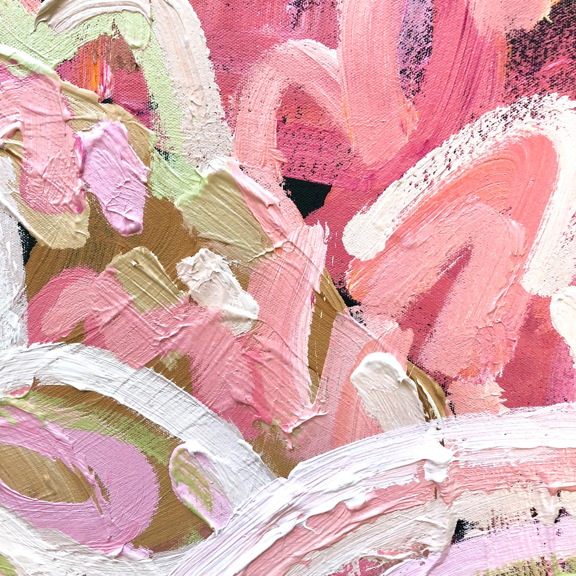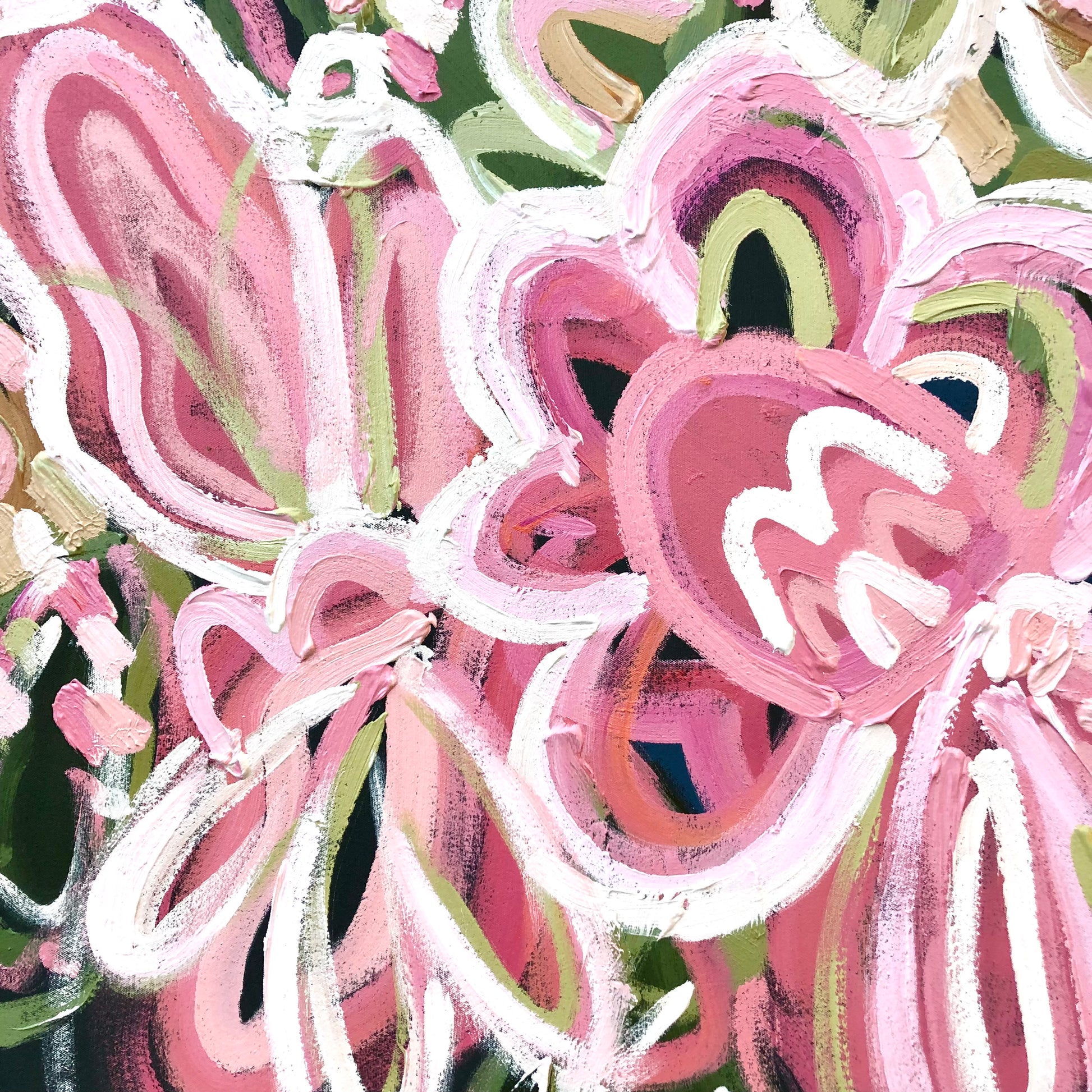 So Much Love is a happy and bright piece inspired by the colours of flowers basking in the morning sunshine in my local gardens of Melbourne, Australia. The colours are so pretty and vibrant.