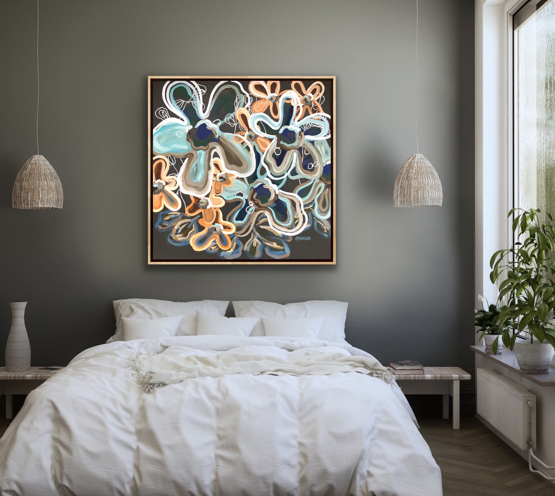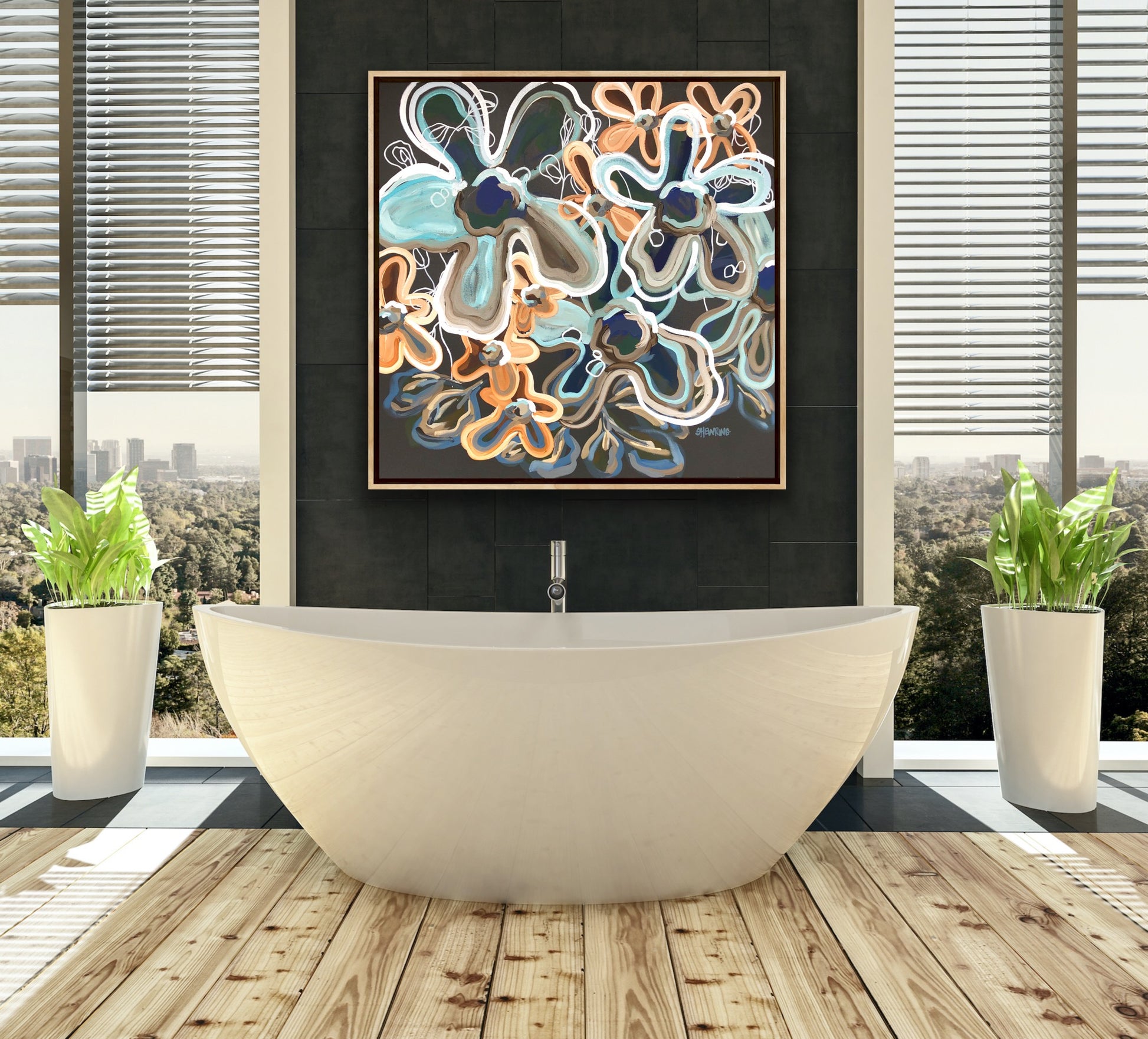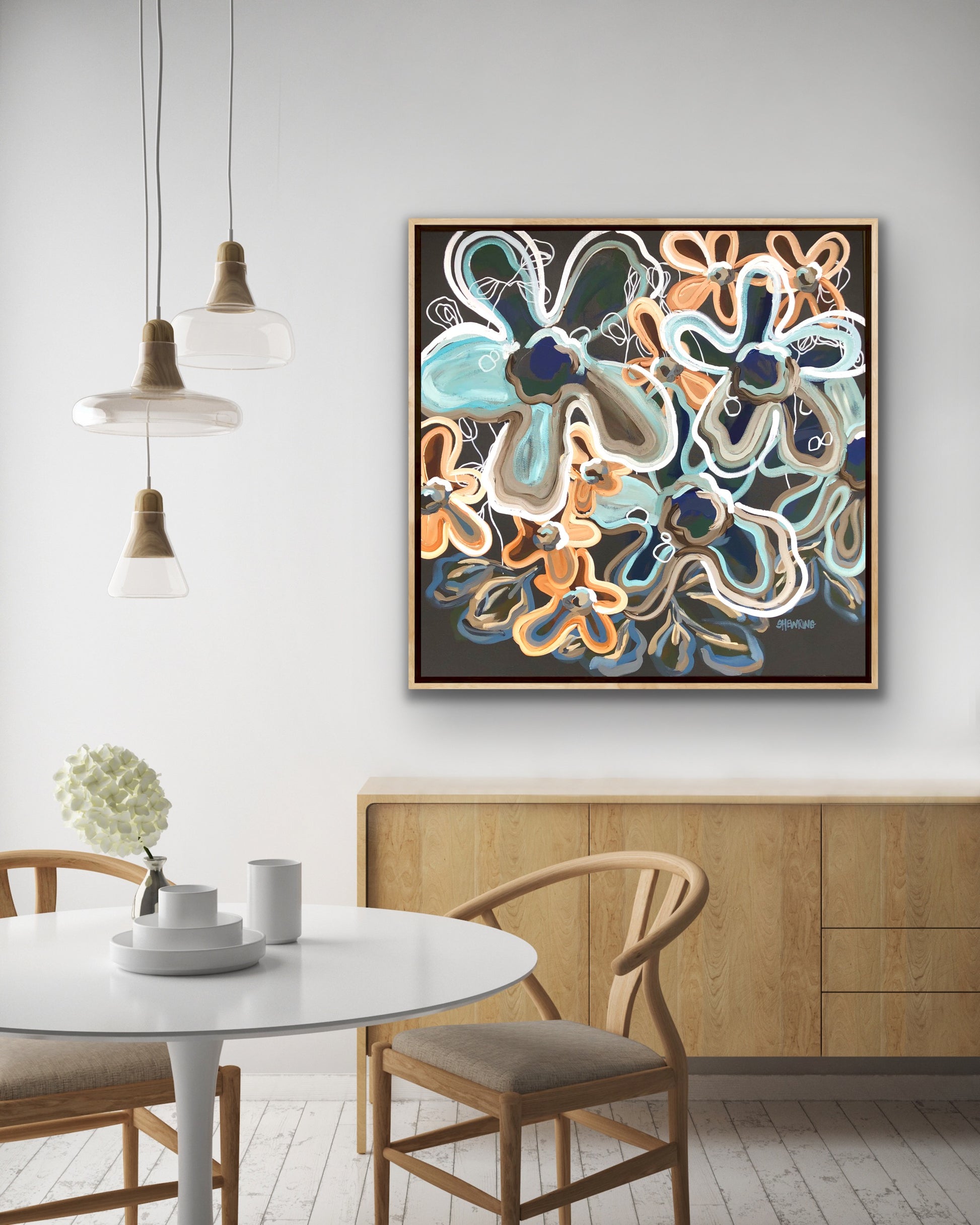 I am obsessed with colour and nature! Outside in the natural environment is where I spend my time sketching the organic forms that surround me. I take them back to my studio where I abstract the beauty and vibrancy of the experience into my paintings. What excites me is creating compositions using a luminous mix of rich colours and texture bringing the outdoors inside feeling happiness from connecting with nature.