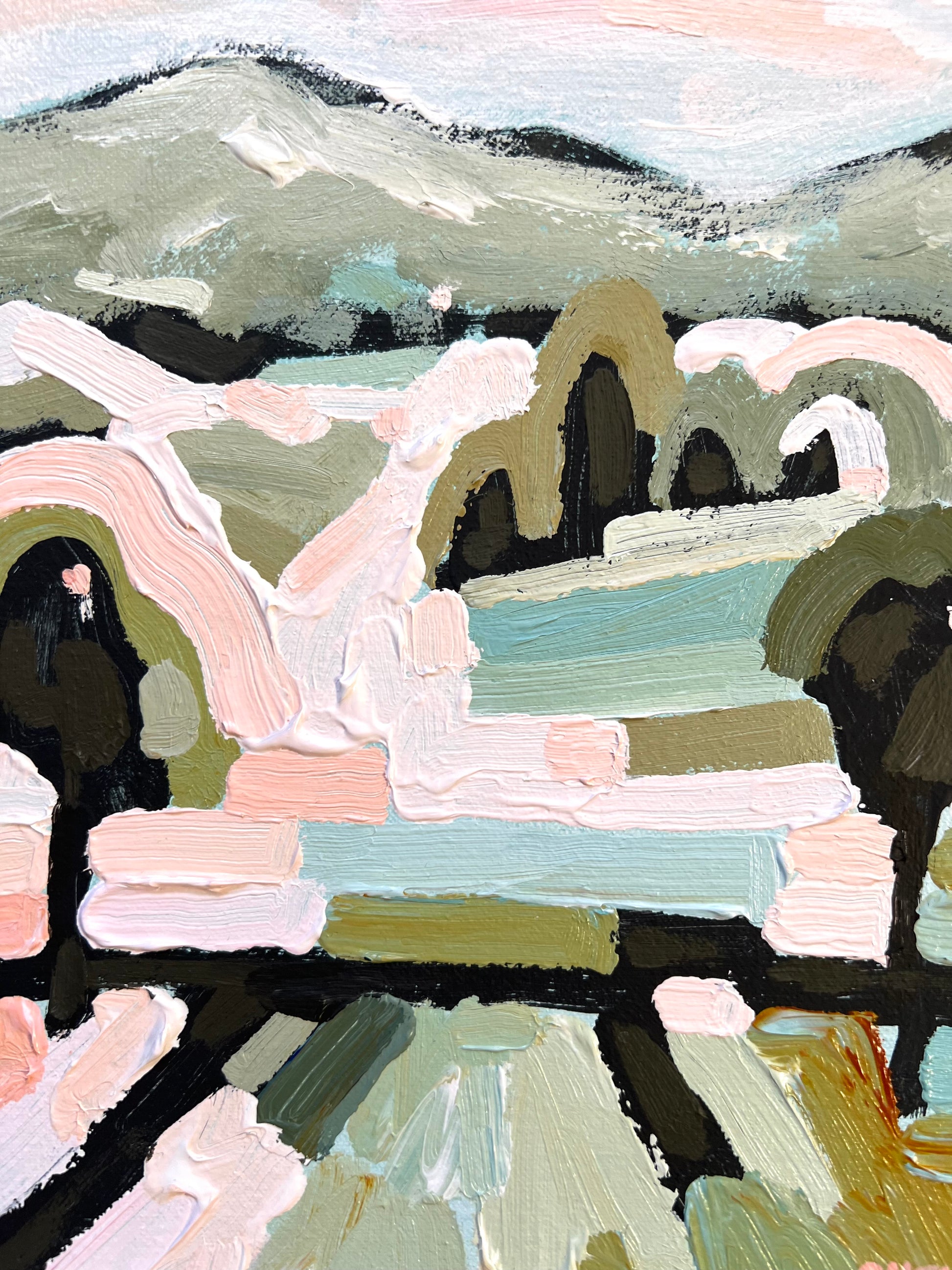 Capturing the warmth of the day and the peaceful feeling of immersing yourself into the countryside this artwork has been painted with expressive brushstrokes that bring it to life!