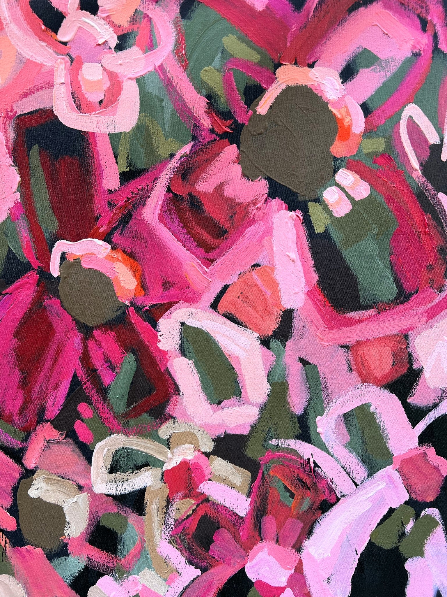 Summer Lovers is a happy and bright piece inspired by the beautiful colour of fresh flowers basking in the morning sunshine of my local gardens of Melbourne, Australia. The colours are so pretty and vibrant.