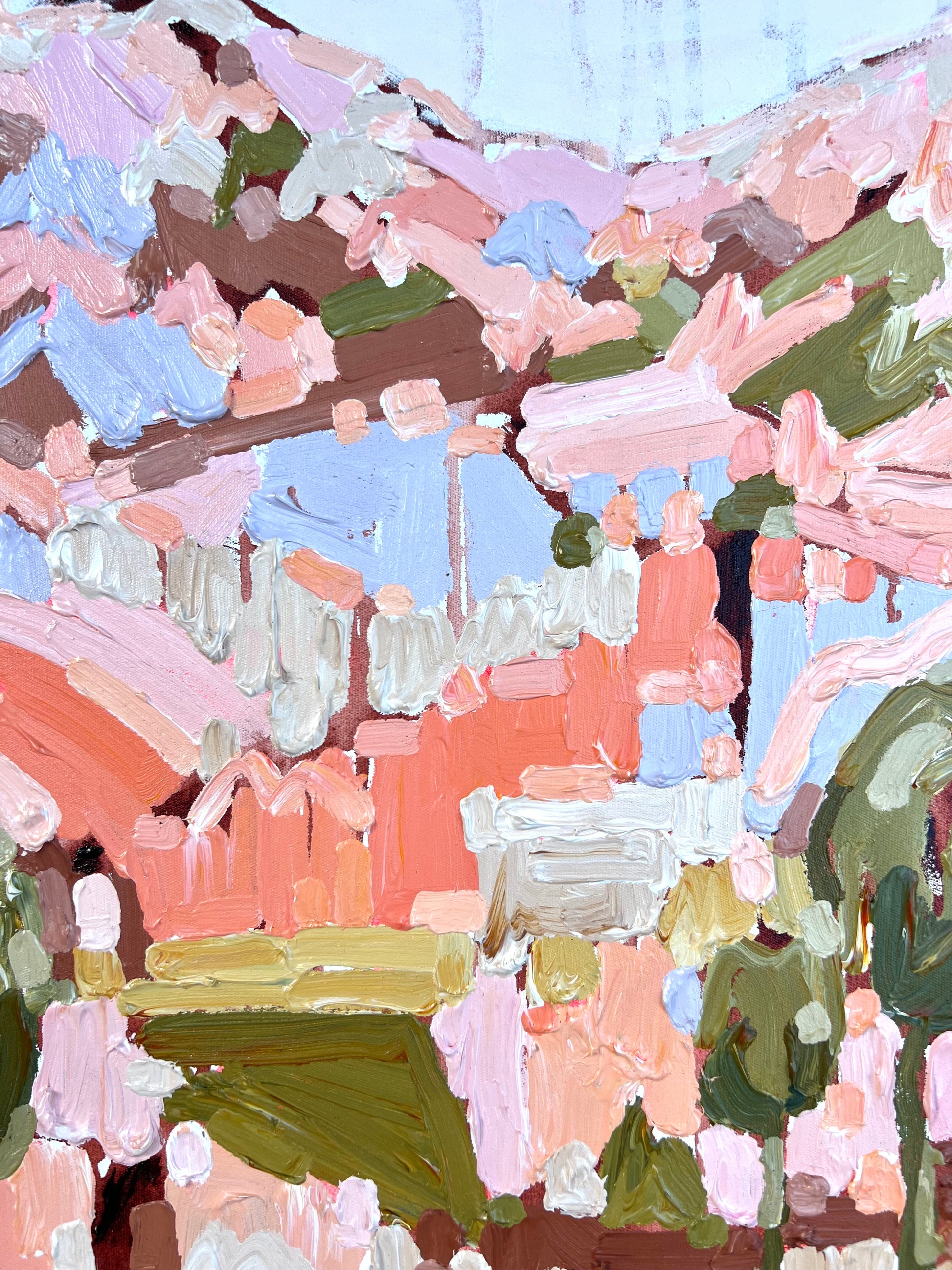 I am obsessed with colour and nature! Outside in the natural environment is where I spend my time sketching the organic forms that surround me. I take them back to my studio where I abstract the beauty and vibrancy of the experience into my paintings. What excites me is creating compositions using a luminous mix of rich colours and texture bringing the outdoors inside feeling happiness from connecting with nature.
