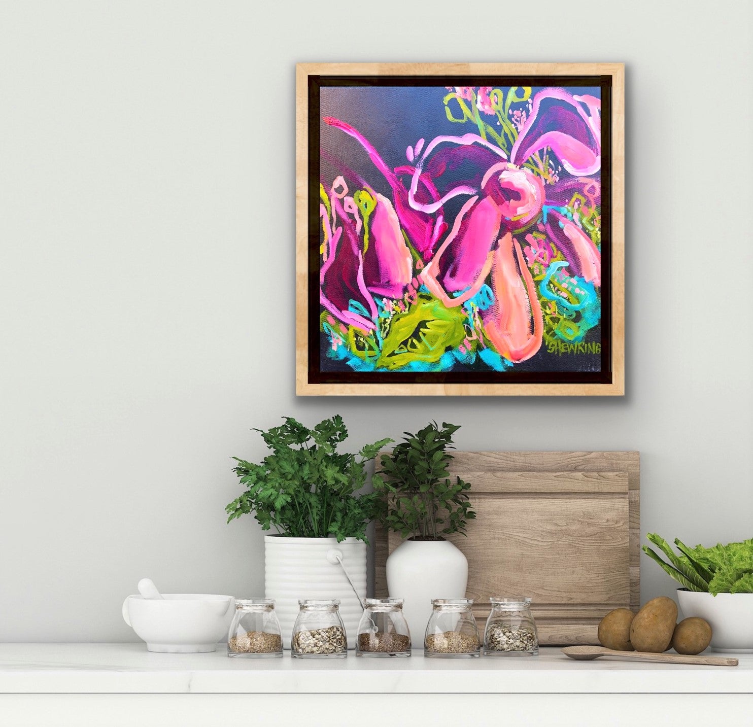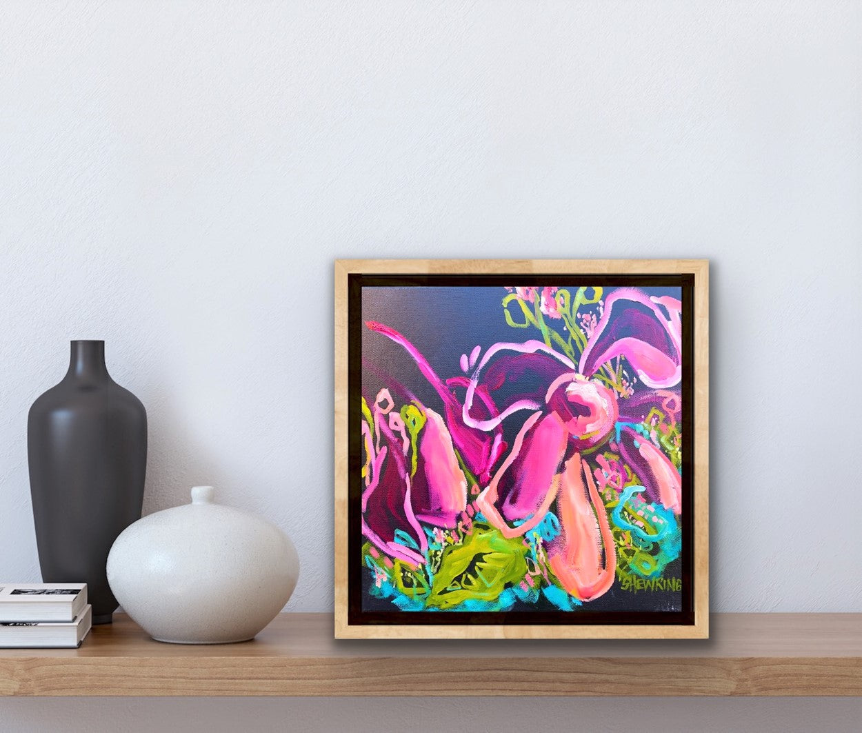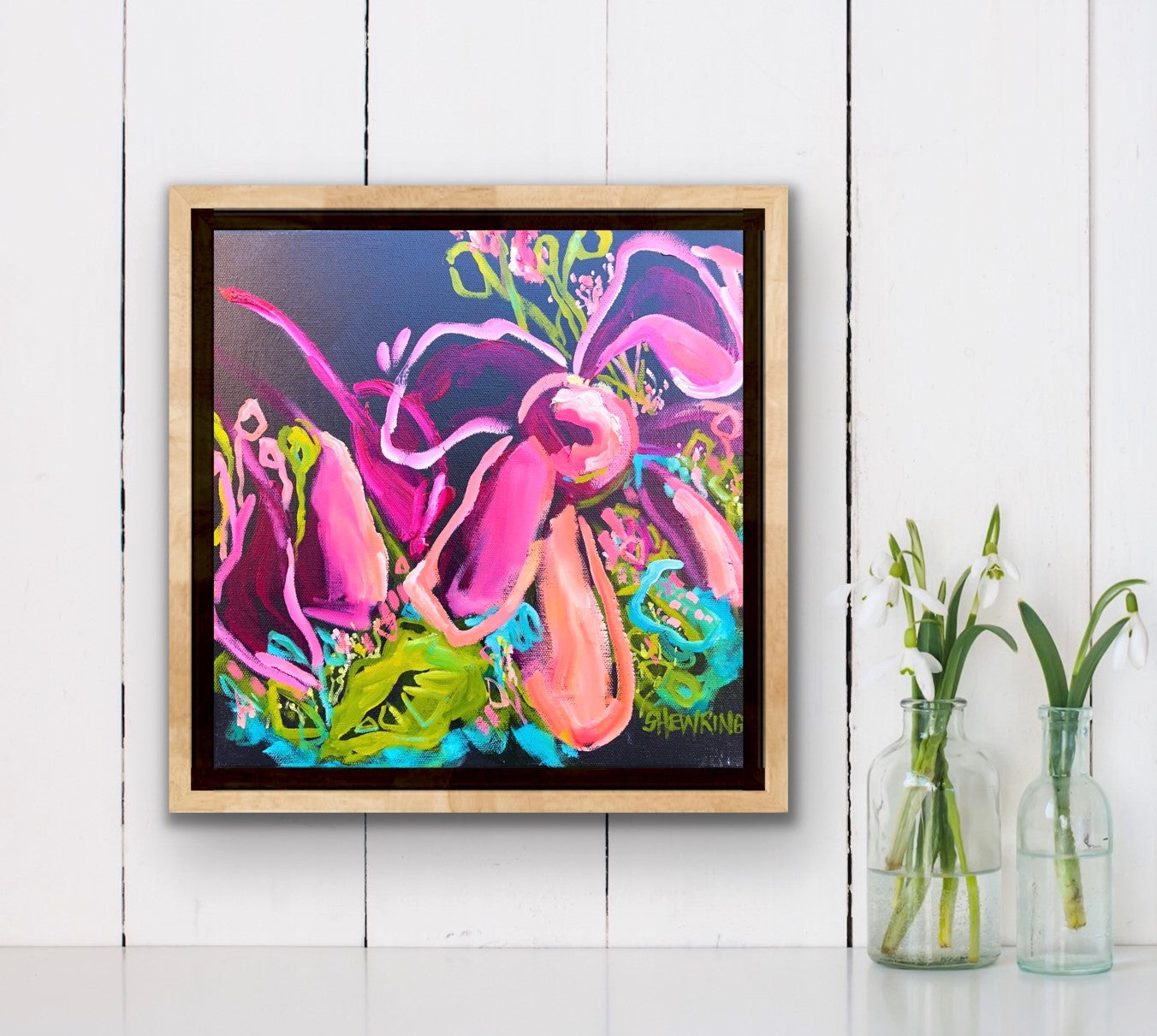 The vibrant flowers in Sun Dance are basking in the summer sun and dancing together in the afternoon breeze. These flowers were inspired by sketches taken from my own garden. This one is for colour lovers and has expressive individual brushstrokes that bring it to life!
