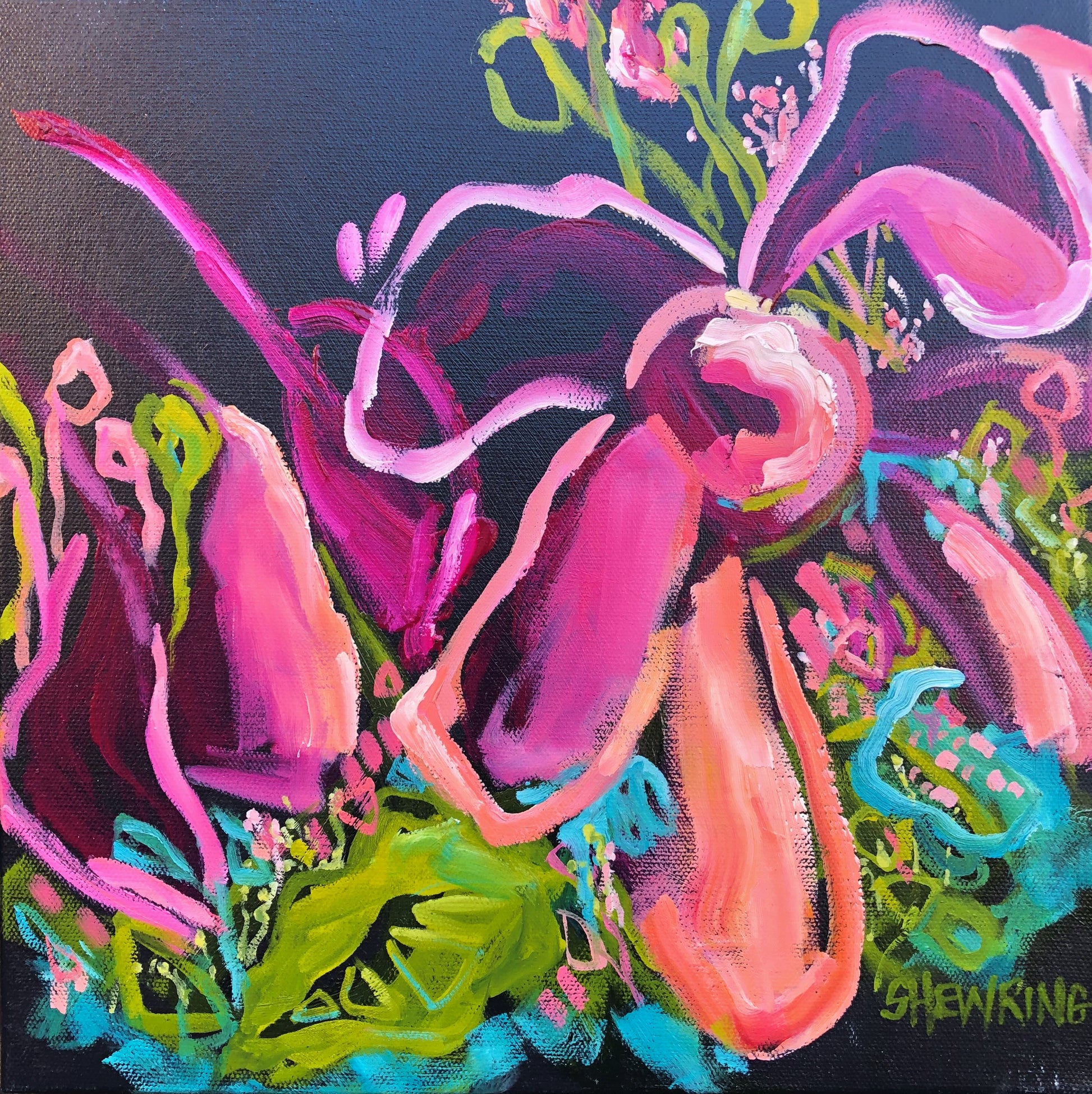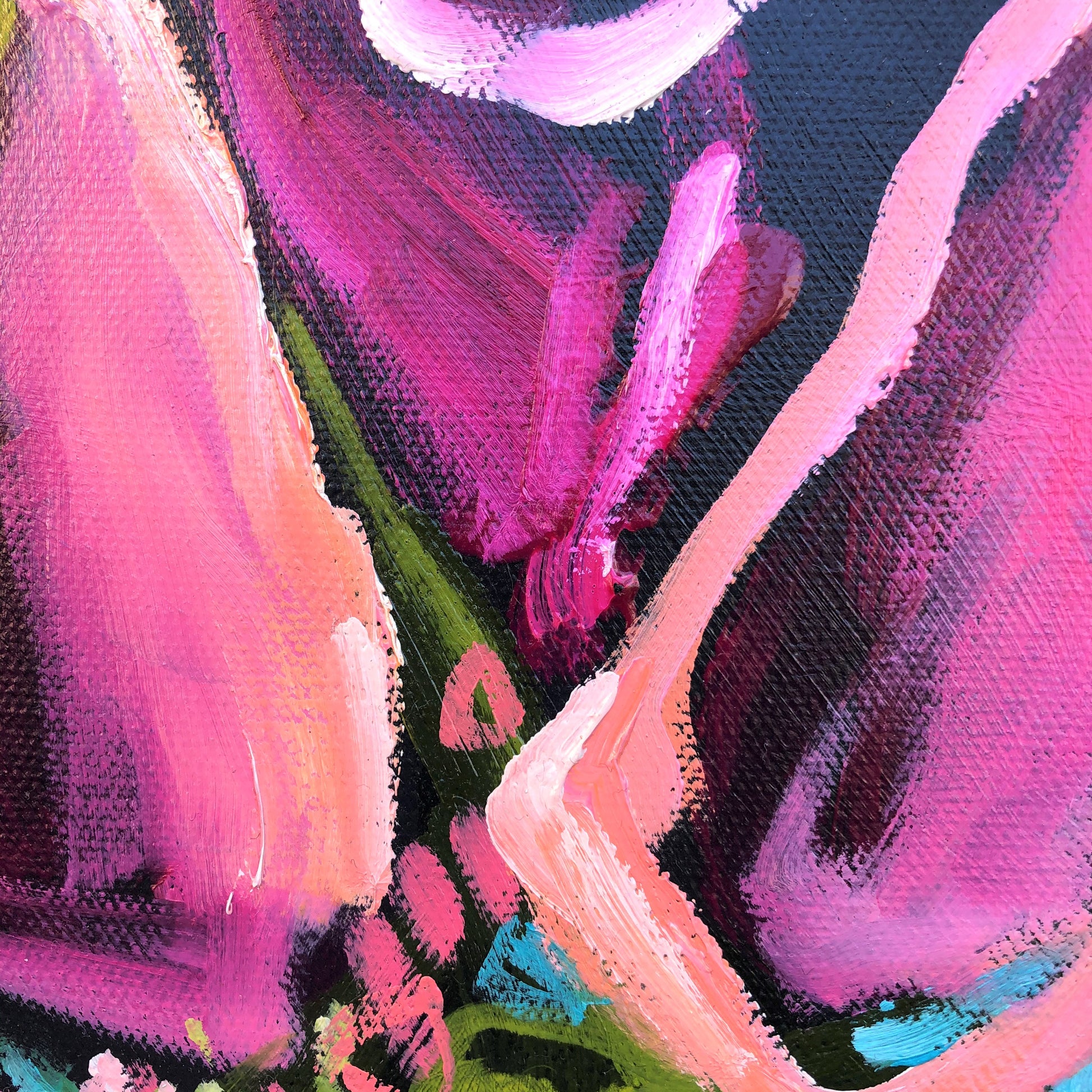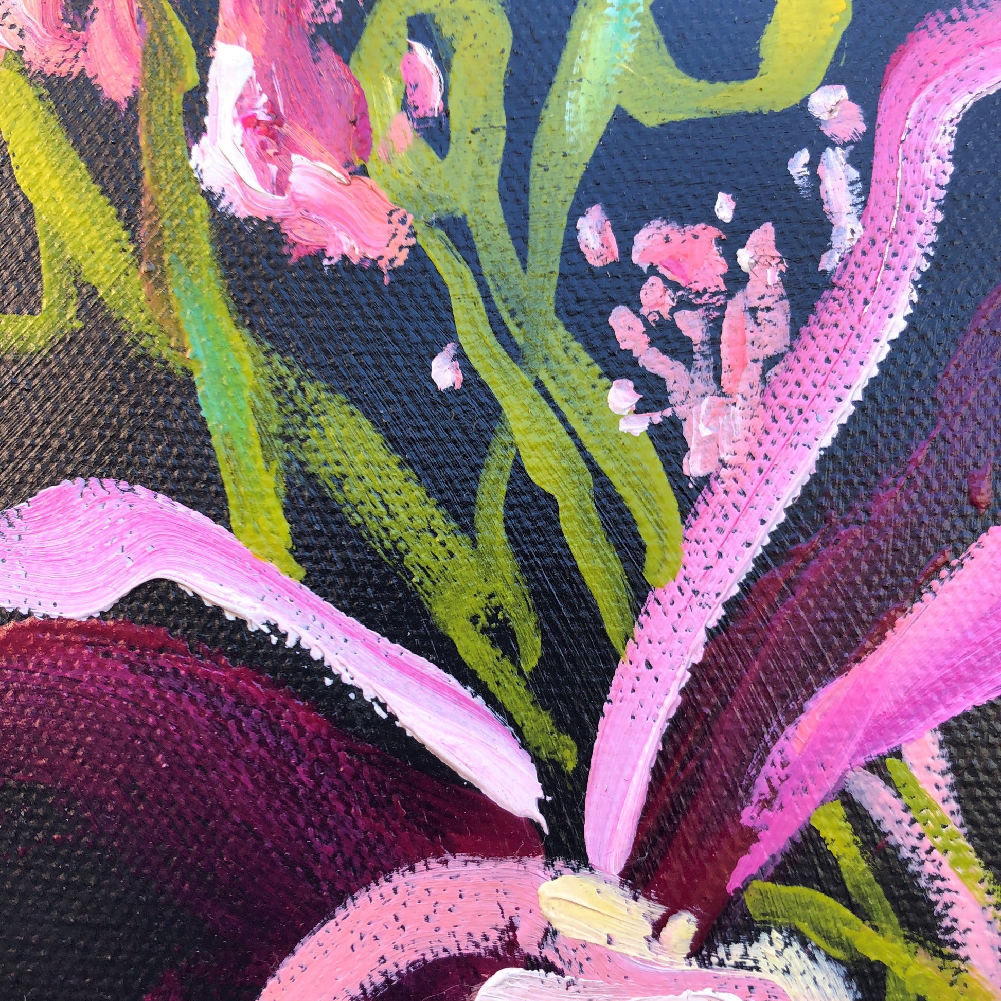 The vibrant flowers in Sun Dance are basking in the summer sun and dancing together in the afternoon breeze. These flowers were inspired by sketches taken from my own garden. This one is for colour lovers and has expressive individual brushstrokes that bring it to life!