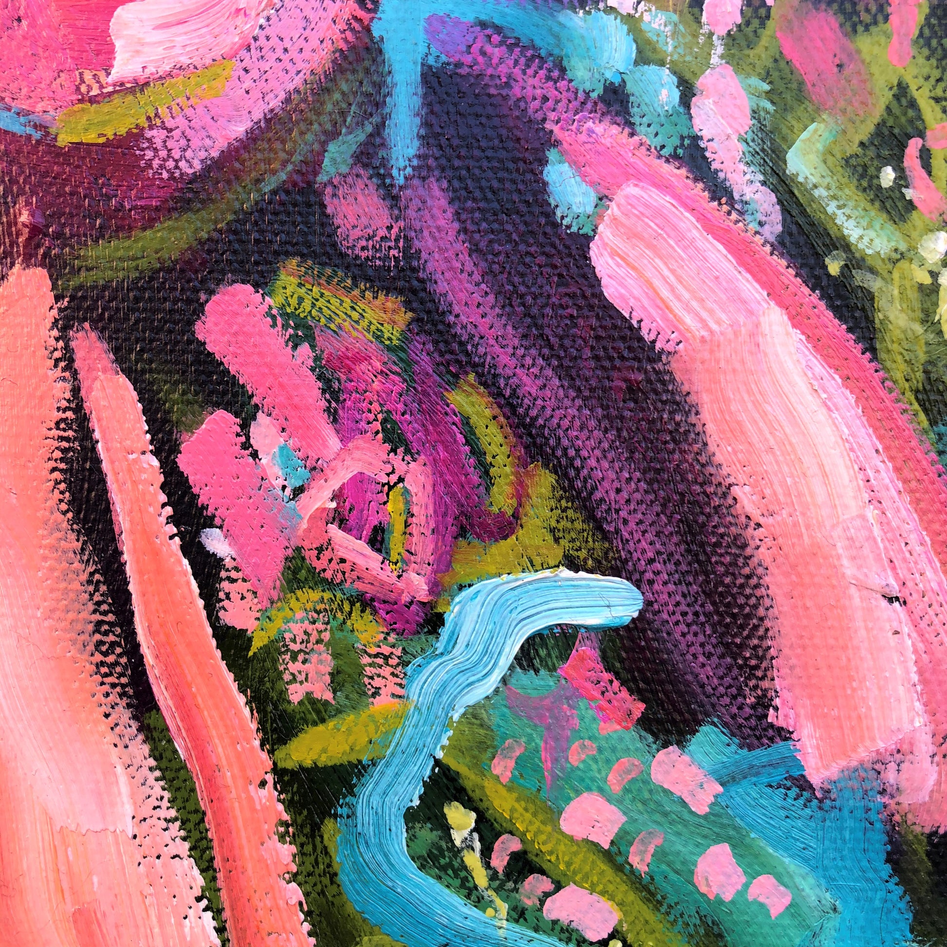 I am obsessed with colour and nature! Outside in the natural environment is where I spend my time sketching the organic forms that surround me. I take them back to my studio where I abstract the beauty and vibrancy of the experience into my paintings. What excites me is creating compositions using a luminous mix of rich colours and texture bringing the outdoors inside feeling happiness from connecting with nature.