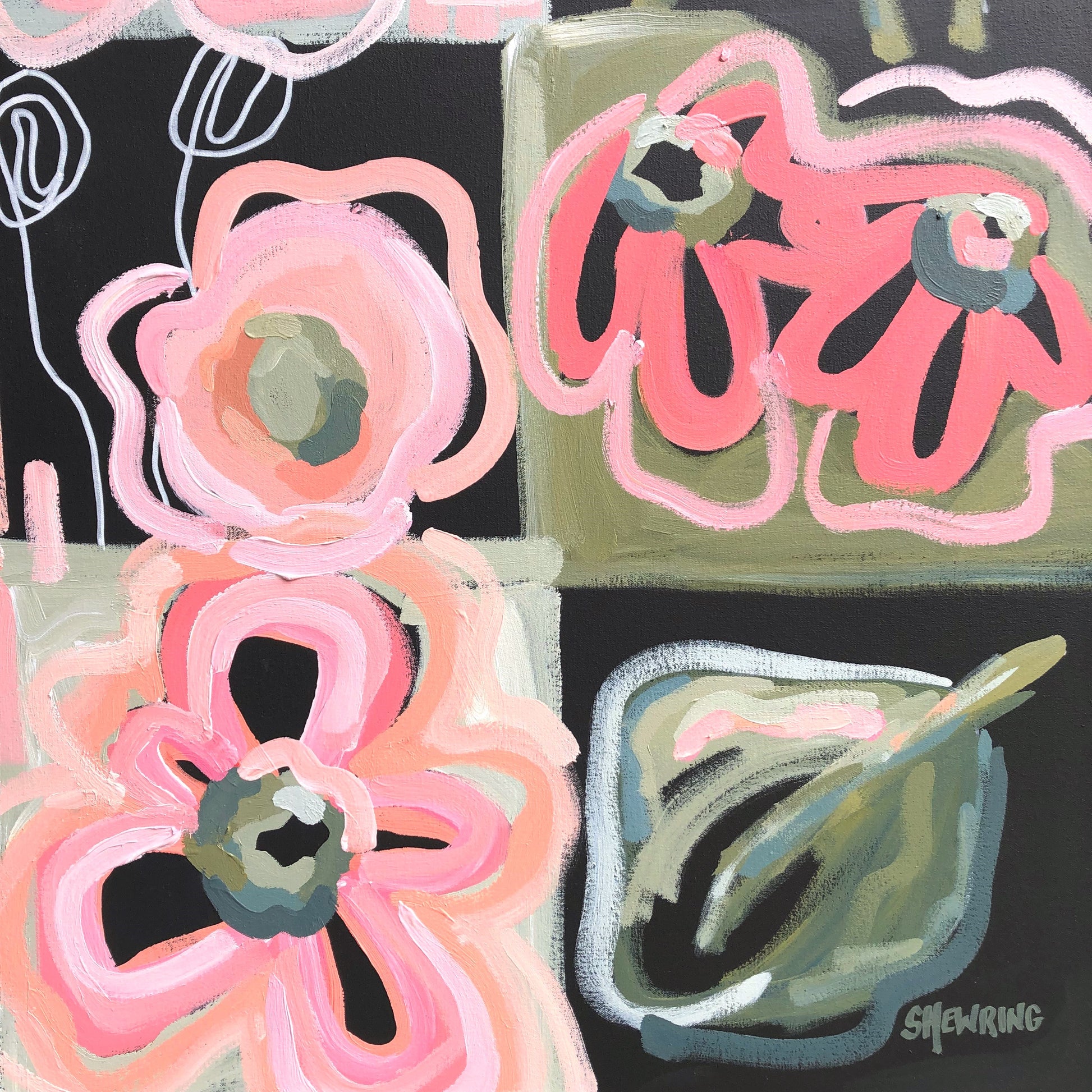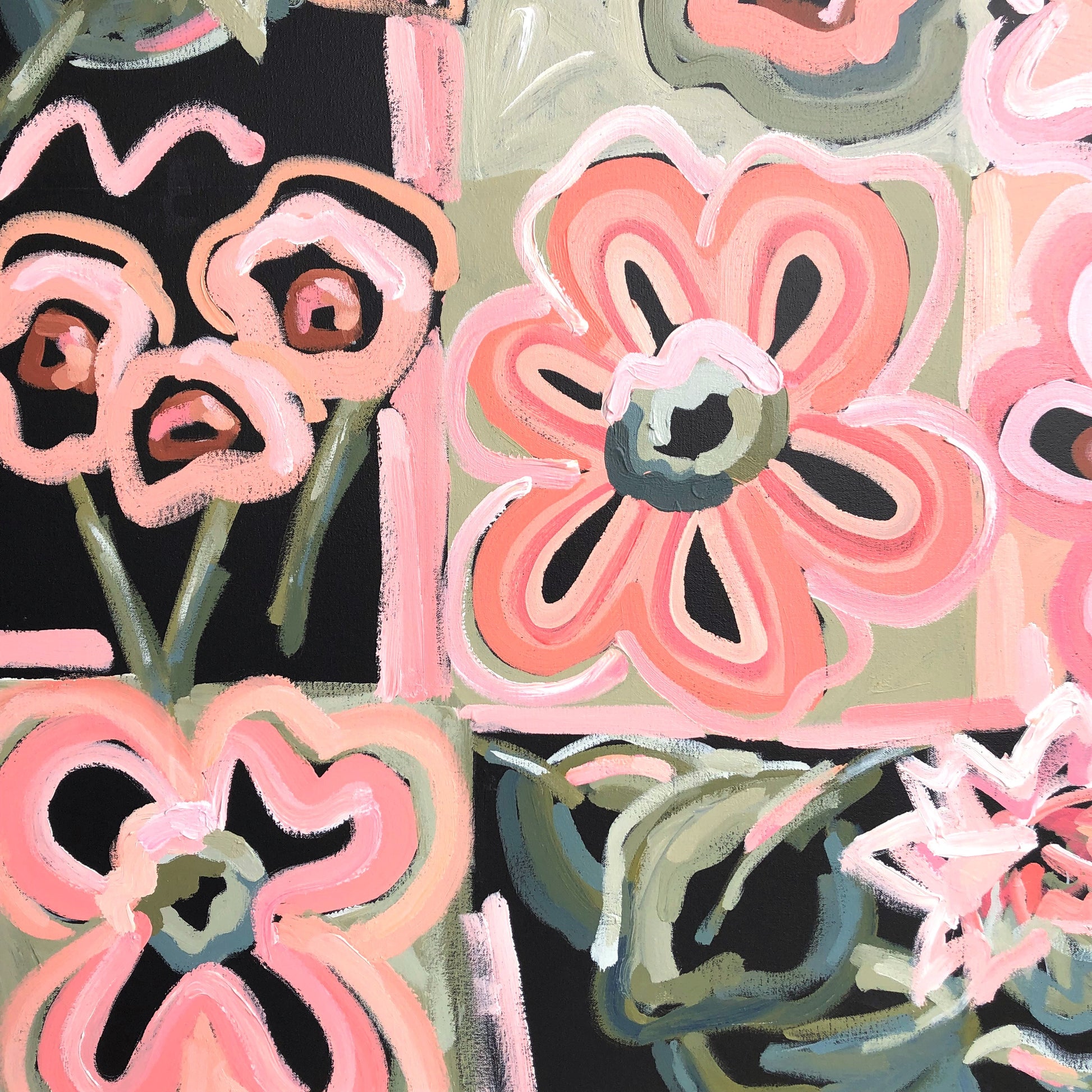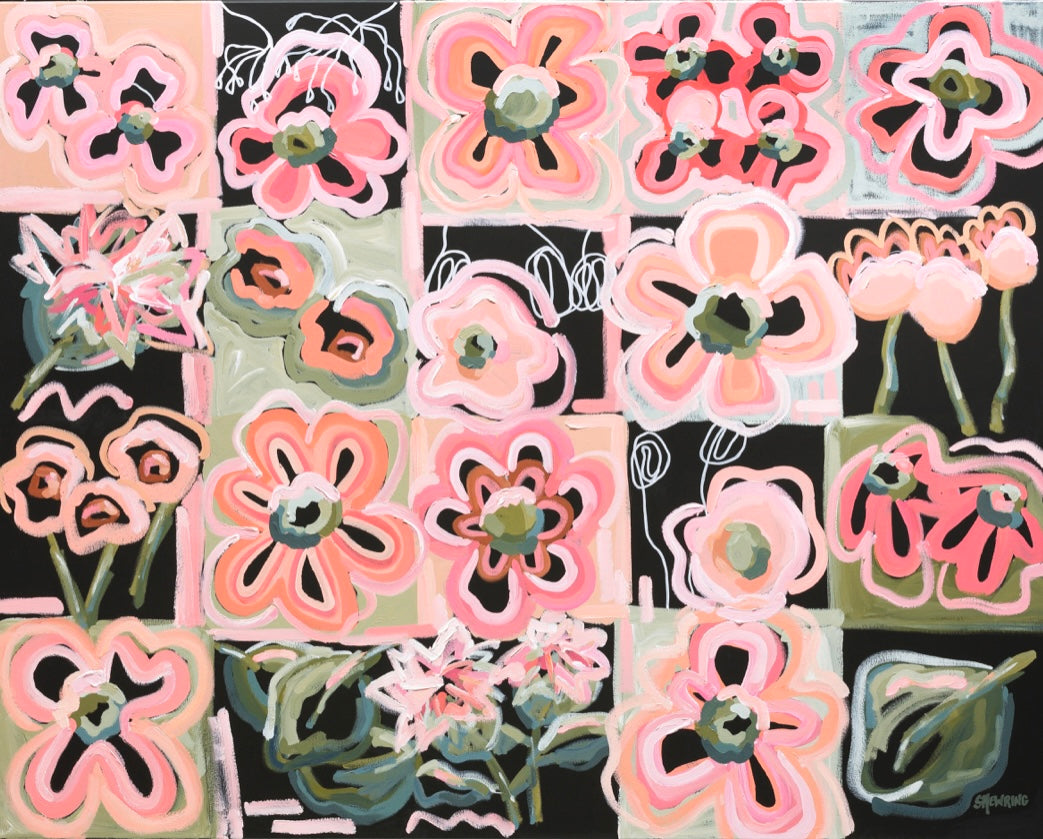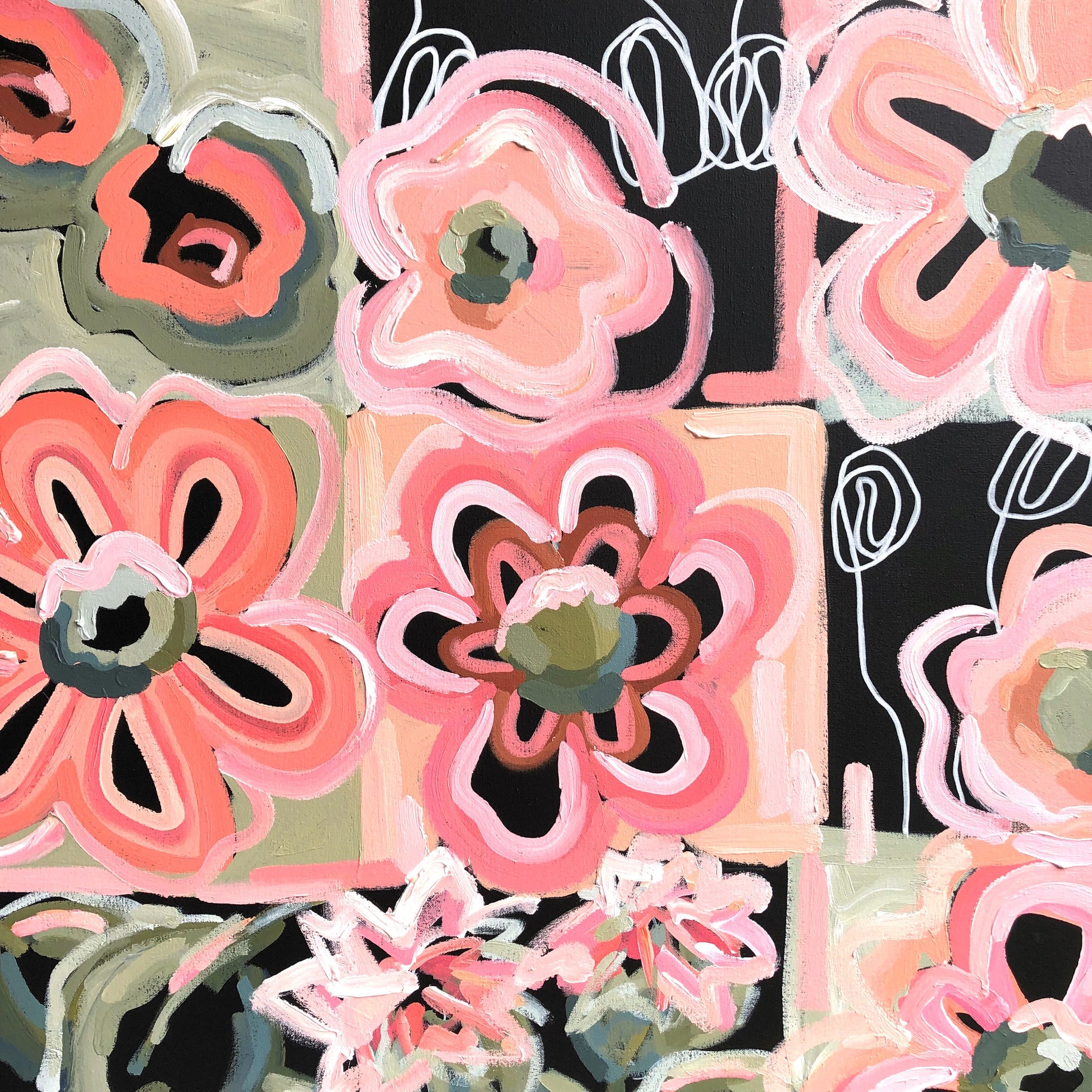 Sun Lovers is a bright and happy flower painting inspired by the delicious summer colours of melons, strawberries and raspberries alongside sage and olive greens. The original artwork was created over a 6 month time line, whenever I produced a beautiful colour mix I added it to the artwork. There are hundreds of colours that all harmonise to make this print sparkle. It has the passionate colours of love!