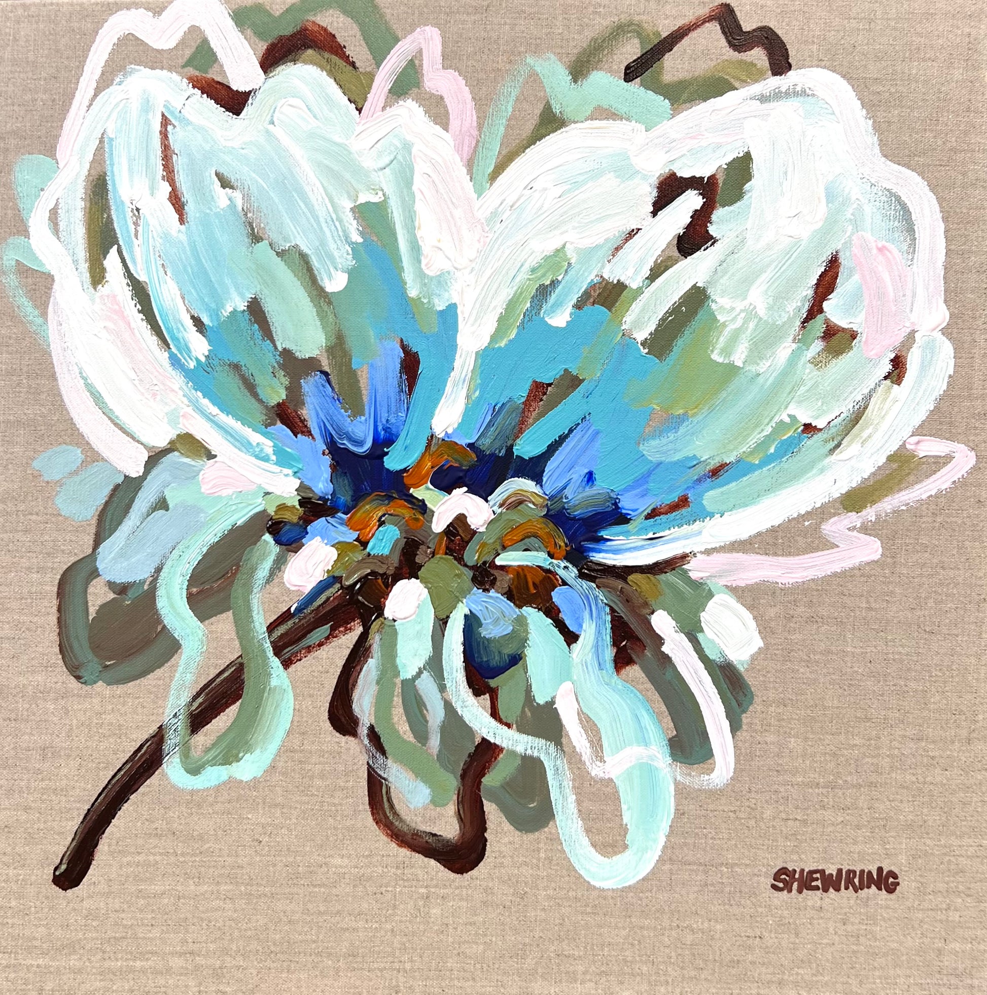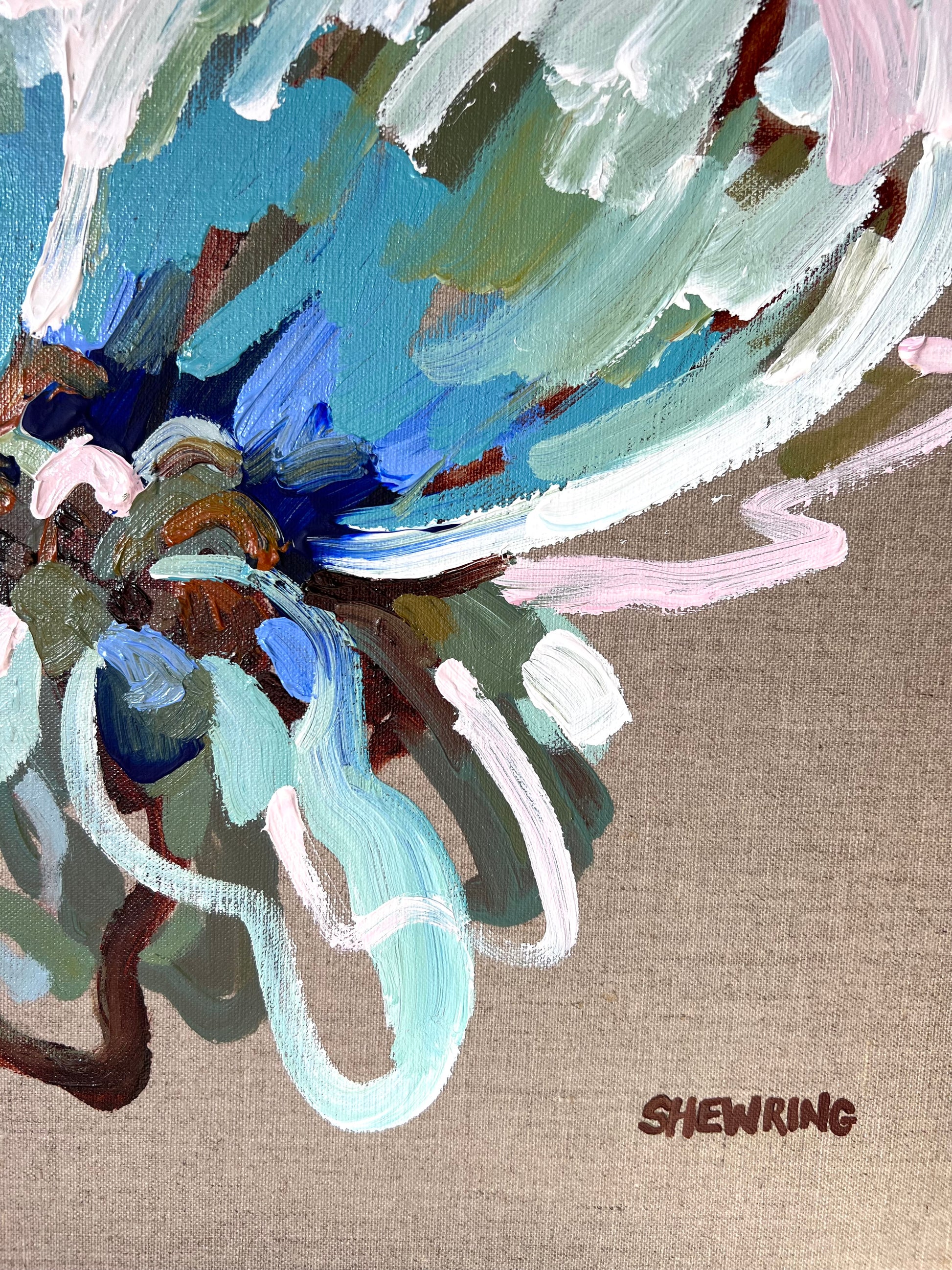 Sun On The Blue Flower is a beautifully textured flower abstract on linen canvas. This painting has expressive individual brushstrokes that bring it to life!