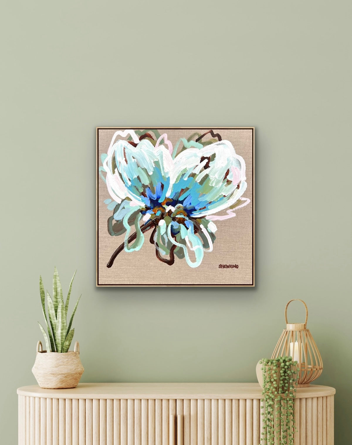- Painted onto artist professional quality stretched linen canvas with a float frame and wire on the back so it is ready to hang.